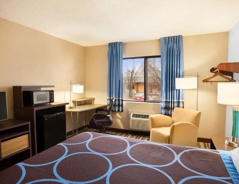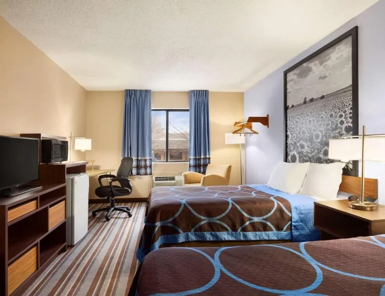 This Pittsburg, Kansa hotel is 1.7 miles from Atkinson Municipal Airport. The hotel offers a 24-hour front desk and guest rooms include free Wi-Fi and cable TV with the HBO channel. Each spacious room at the Super 8 Pittsburg KS is furnished with light wood furniture and a seating area. The rooms are air conditioned and include a work desk. A microwave and a refrigerator are provided in the suites. The hotel offers bus, truck and RV parking with electrical hookups. Guests can make free local telephone calls from the hotel. Pittsburg State University is 5.8 miles from the hotel. Pittsburg KS Super 8 is 2.2 miles from the Four Oaks Golf Course. The double room provides air conditioning, as well as a private bathroom featuring a bath or a shower. The unit offers 1 bed.