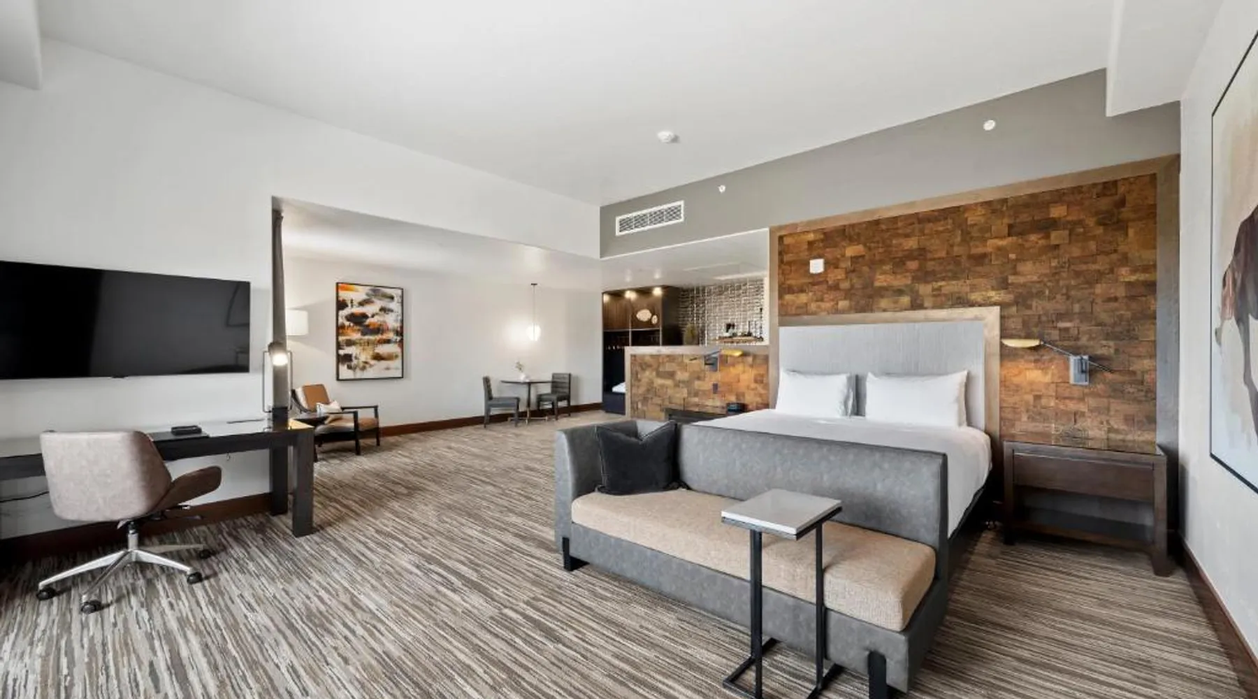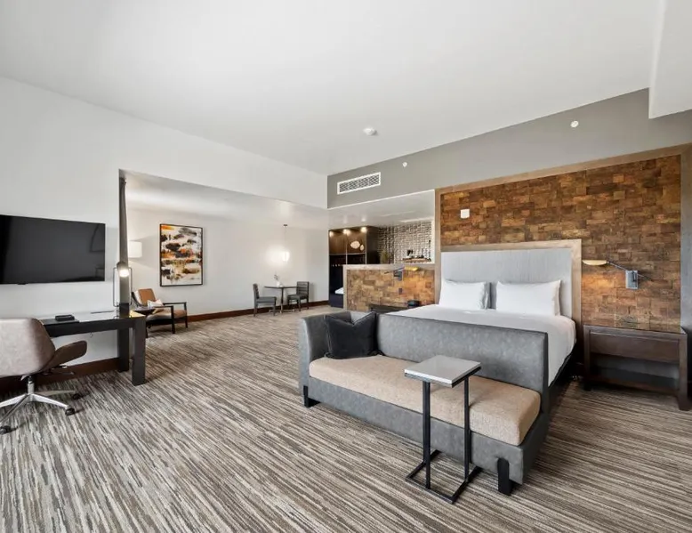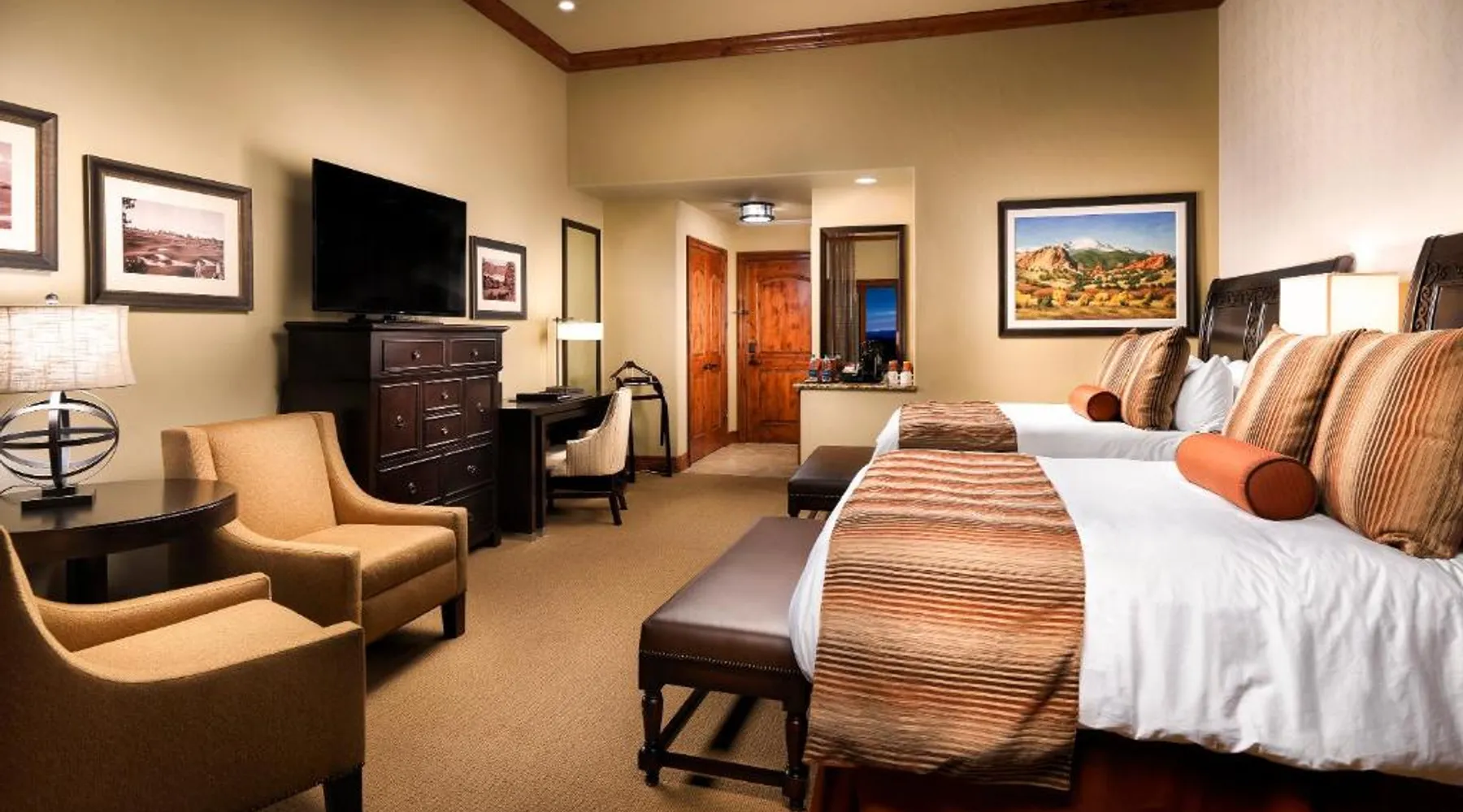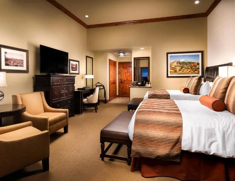 Featuring two private 18-hole golf course designed by Tom Weiskopf, as well as a European resort-style golf clubhouse, Flying Horse Resort & Club is located in Colorado Springs. Guests have access to swimming pools and the Athletic Club and Spa. Garden of the Gods is 25 minutes’ drive from the lodge. Free parking is provided. Each room at Flying Horse Resort & Club offers a seating area with a 55-inch flat-screen satellite TV and an espresso/coffee maker. Guests receive 2 bottles of water per day, per stay. Select rooms feature a patio with outdoor furniture and mountain or golf course views. Guests can enjoy on-site dining and happy hour at The Steakhouse which features views of the golf course, Pikes Peak and the Front Range and serves steaks, seafood and cocktails. The Spa at Flying Horse offers deep tissue and couples massages in addition to facials, pedicures and manicures. Day spa packages are available. Flying Horse Resort & Club also features 9 indoor event spaces, 3 spacious conference rooms and a boardroom. Wedding and reception facilities are also offered. U.S. Air Force Academy is 15 minutes’ drive from the lodge. Pikes Peak Cog Railway is 22 mi from Flying Horse Resort & Club. The spacious suite offers air conditioning, a tea and coffee maker, a balcony with mountain views as well as a private bathroom featuring a hairdryer.