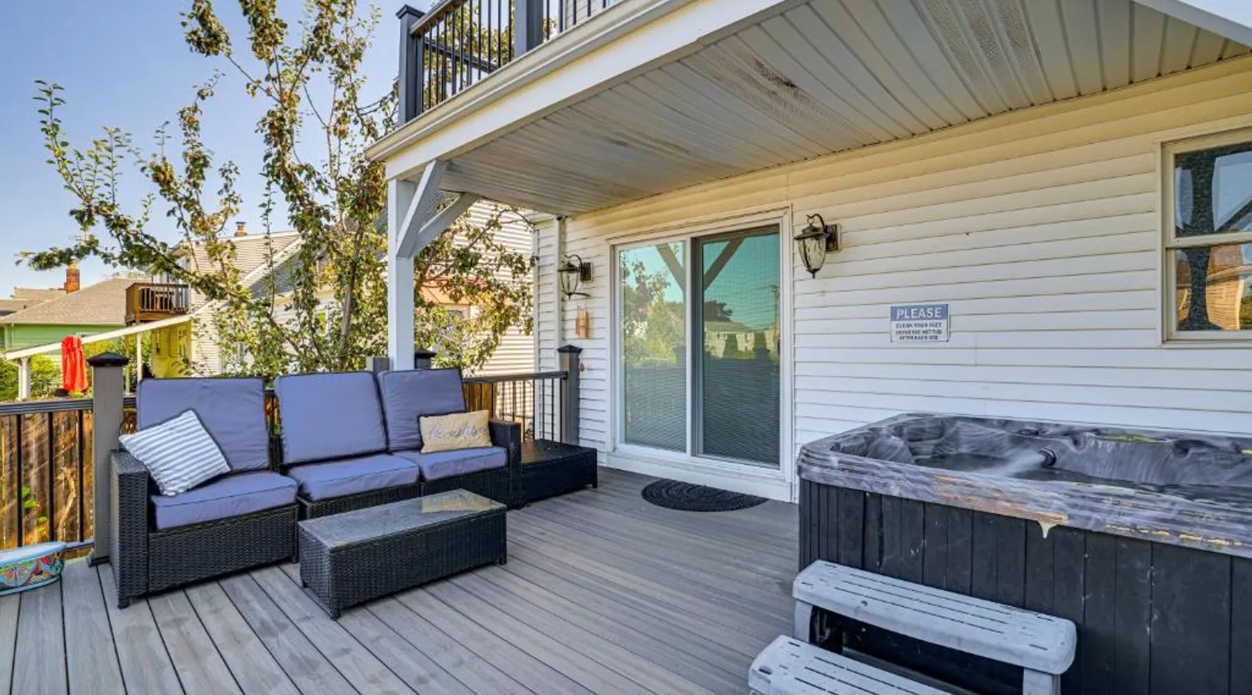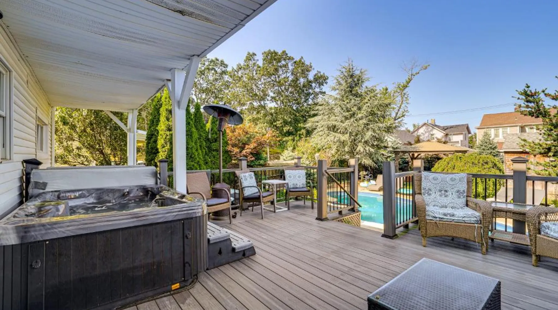 Spacious Holiday Home in New Haven: 25 Mi to Powder Ridge Mtn Park Home with Hot Tub! offers a spacious setting in New Haven. The property features three bedrooms and two bathrooms, ensuring ample space for all guests. Outdoor Amenities: Guests can enjoy an outdoor swimming pool and a hot tub, perfect for relaxation. Free WiFi is available throughout the property, enhancing the stay experience. Comfortable Living: The holiday home includes air-conditioning, a fully equipped kitchen, and a cozy living room with a fireplace. Additional amenities include a dining table, work desk, and free toiletries. Convenient Location: Located a few steps from Tweed-New Haven Airport, the property is close to attractions such as City Hall (5 mi), Yale University (5.6 mi), and The Yale Bowl (6.8 mi). Highly rated by guests. This holiday home's standout feature is the fireplace. Featuring a private entrance, this air-conditioned holiday home is consisted of of 1 living room, 3 separate bedrooms and 2 bathrooms with a bath and a shower. In the kitchen, guests will find a stovetop, a refrigerator, a dishwasher and kitchenware. This holiday home features a coffee machine, heating and a flat-screen TV with cable channels. The unit offers 4 beds.