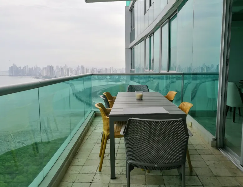 Apartamento de gran categoría frente al mar amoblado y equipado con ropa blanca, electrodomésticos y enseres de cocina en Costa del Este, una de las mejores zonas de Panamá. 287 m2, 3 recámaras, cada una con walking closet y baño, escritorio o cuarta recamara, lavandería y cuarto de empleada, balcón aterrazado y 1 estacionamiento. Zona residencial privilegiada, tranquila, y de muy fácil acceso. Edificio con piscina, gimnasio, sala de juegos, squash y racquet ball. Mínimo 45 días. La electricidad no esta incluida en el precio y se paga aparte según consumo. Se requiere deposito en garantía por el valor de un mes de alquiler.