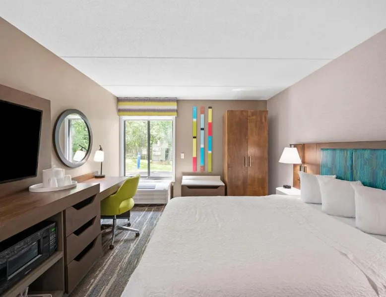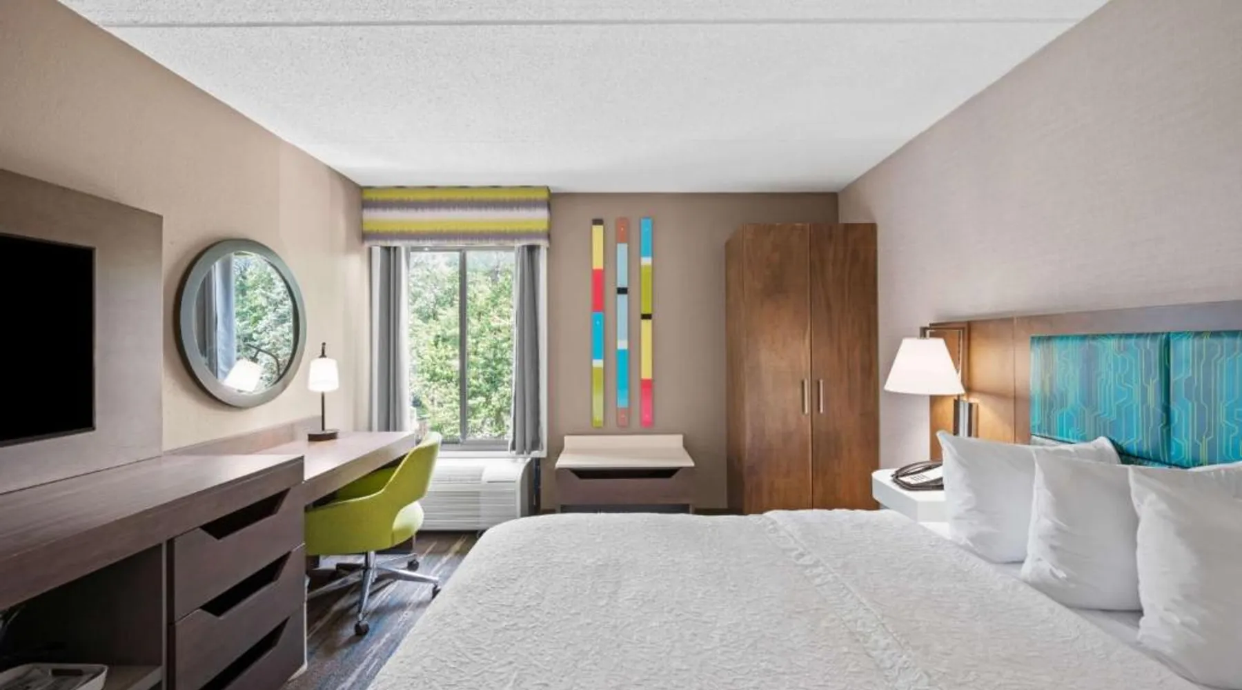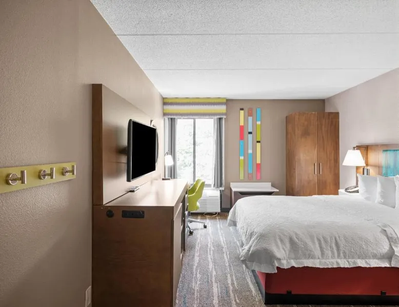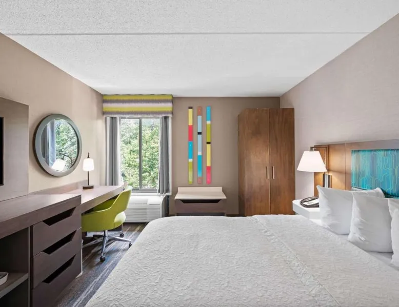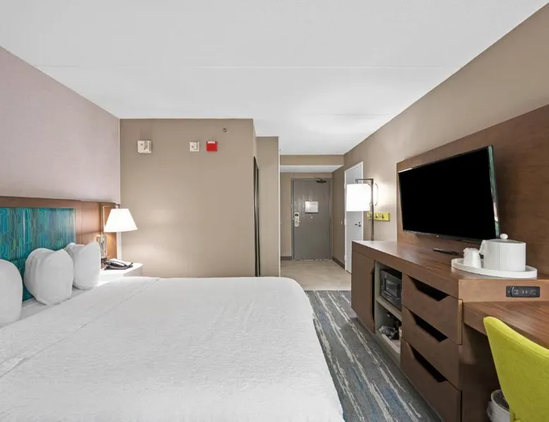 Comfortable Accommodations: Hampton Inn Cleveland-Westlake in Westlake offers air-conditioned rooms with free WiFi, work desks, and flat-screen TVs. Each room includes a tea and coffee maker, hairdryer, and free toiletries. Facilities and Services: Guests can enjoy a fitness center, lounge, and business area. The hotel provides a 24-hour front desk, elevator, and child-friendly buffet. Additional amenities include a picnic area and free toiletries. Dining and Location: A continental buffet breakfast is served daily. Regal Cinemas is an 8-minute walk away, while Cleveland Hopkins International Airport is 8.7 mi from the property. Nearby attractions include Huntington Beach (3 mi) and Westfield Great Northern Shopping Center (5.6 mi). Guests appreciate the convenient location, value for money, and attentive staff. The unit has 2 beds.