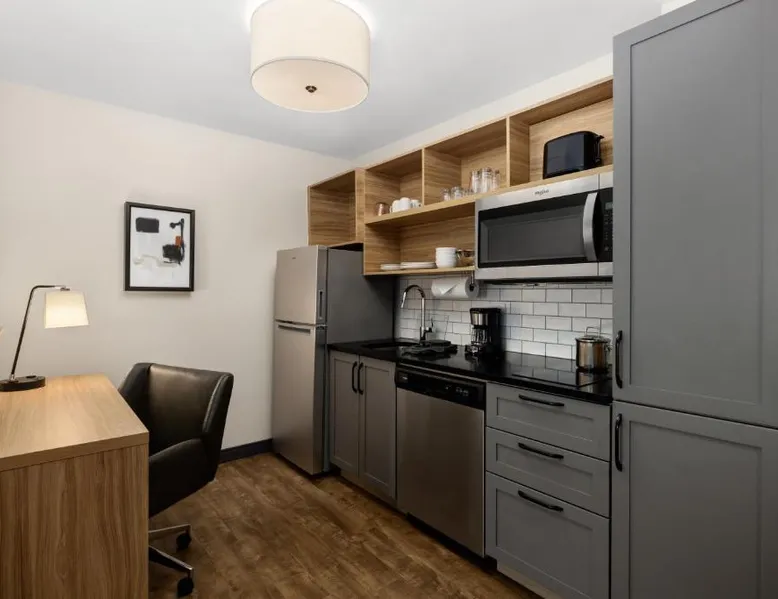 Comfortable Accommodations: Candlewood Suites - Layton - Salt Lake City by IHG in Layton offers family rooms with air-conditioning, private bathrooms, and fully equipped kitchens. Each room includes a work desk, TV, and soundproofing for a pleasant stay. Exceptional Facilities: Guests enjoy a fitness center, sun terrace, and free WiFi. Additional amenities include a lounge, outdoor fireplace, and free on-site private parking. The hotel provides a minimarket, business area, and coffee shop for convenience. Prime Location: Located 8.7 mi from Ogden-Hinckley Airport, the hotel is a 5-minute walk from Davis Conference Center. Nearby attractions include Lagoon Amusement Park (9.3 mi) and Salt Lake Tabernacle (25 mi). Highly rated for room cleanliness and kitchen. Featuring free toiletries, this suite includes a private bathroom with a bath, a shower and a hairdryer. Meals can be prepared in the kitchen, which has a stovetop, a refrigerator, a dishwasher and kitchenware. The spacious suite features air conditioning, soundproof walls, a tea and coffee maker, a seating area, as well as a flat-screen TV with cable channels. The unit has 2 beds.