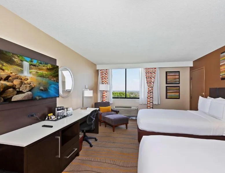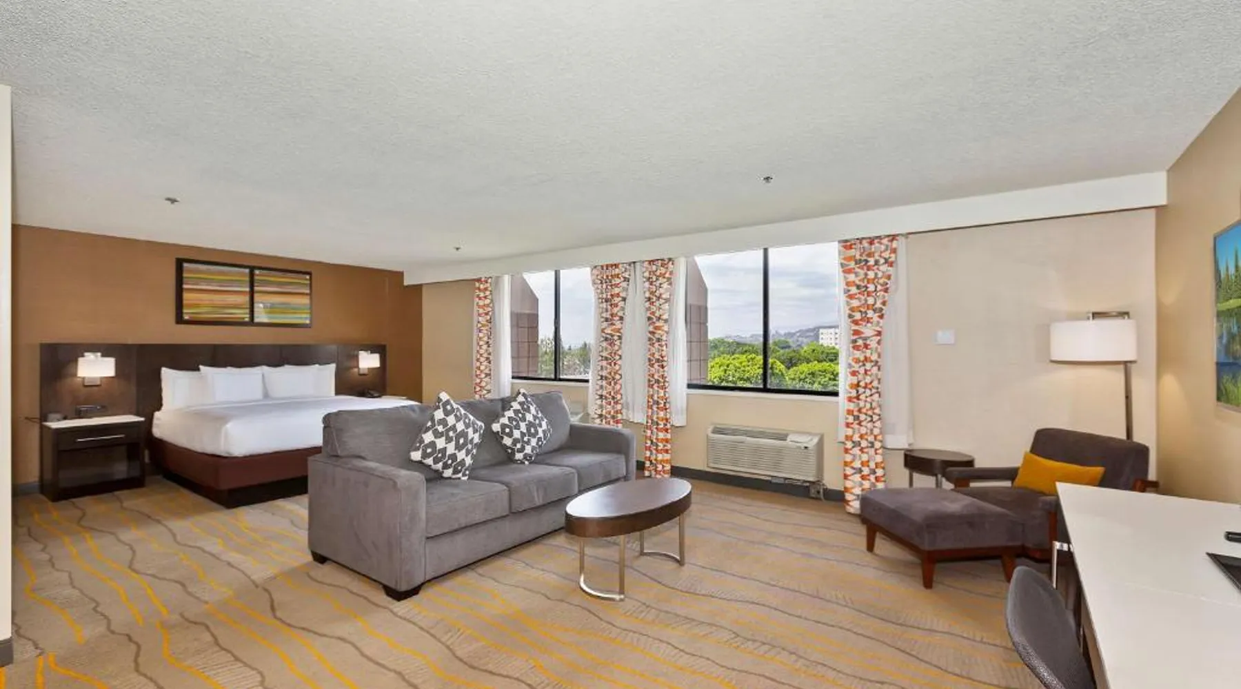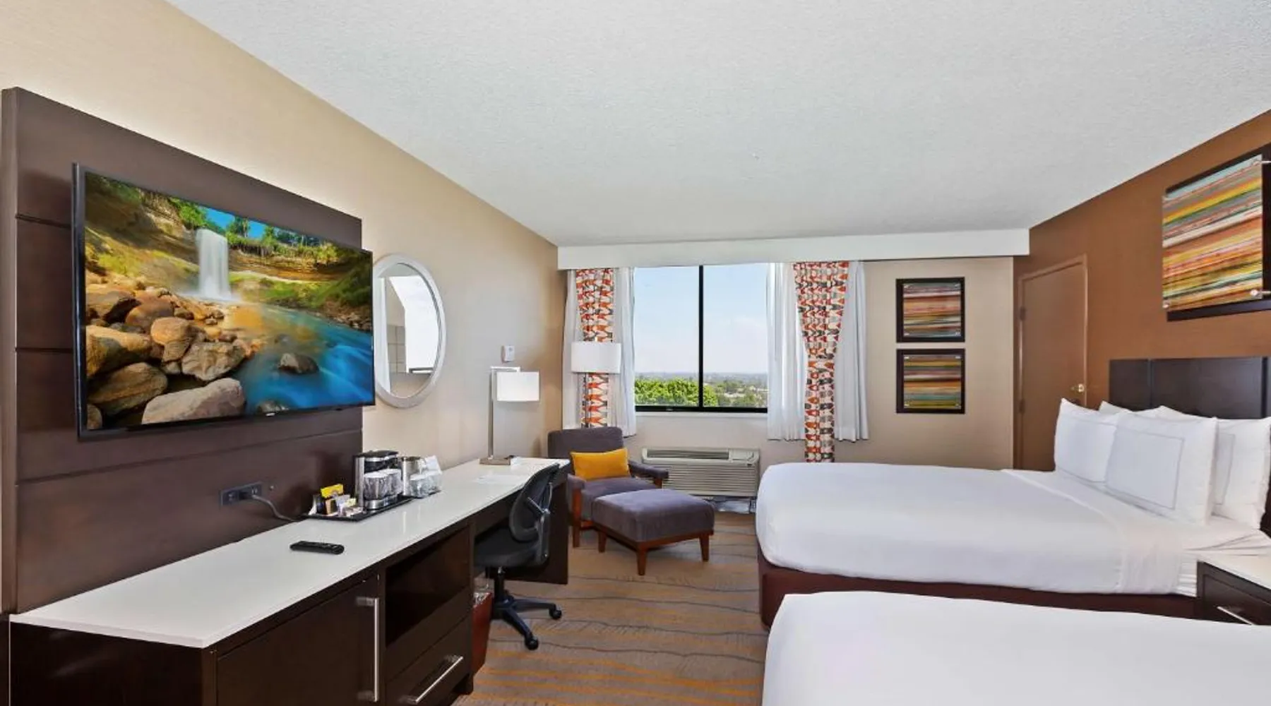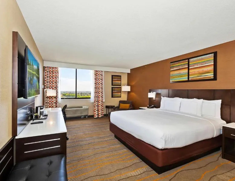 Located in Whittier, California, 15 miles from Disneyland, Doubletree by Hilton Whittier offers on-site dining and a seasonal outdoor pool. A 24-hour gym is located on site. All comfortably furnished guest rooms include free WiFi. Each bright room features cable TV. Tea and coffee making facilities are included in all rooms. A large work desk is provided. Guests at Doubletree by Hilton Whittier can enjoy breakfast at Bistro. Knott's Berry Farm is 12 miles from this hotel. La Habra Children's Museum is 7 miles away. A free transfer service will take guests to all attractions within a 7-mile radius. The spacious double room offers air conditioning, a tea and coffee maker, a safe deposit box, heating and a flat-screen TV. The unit has 1 bed.