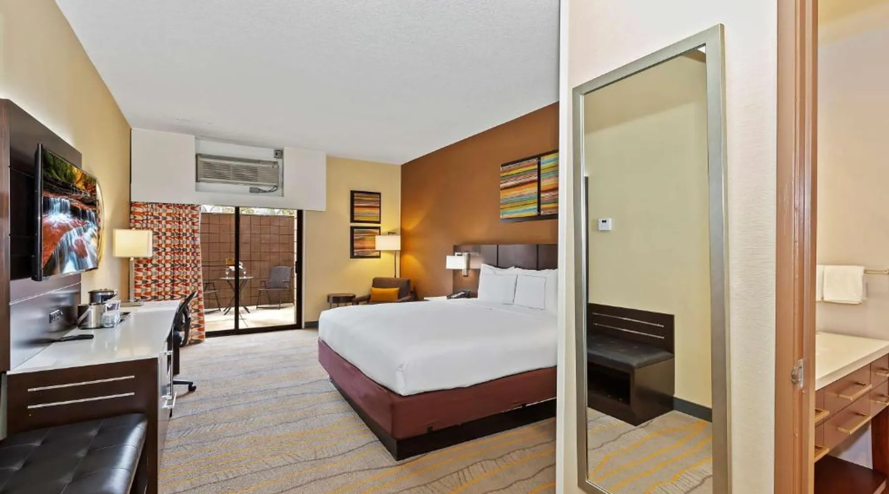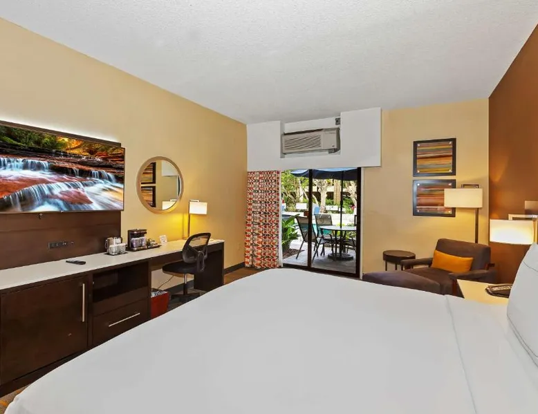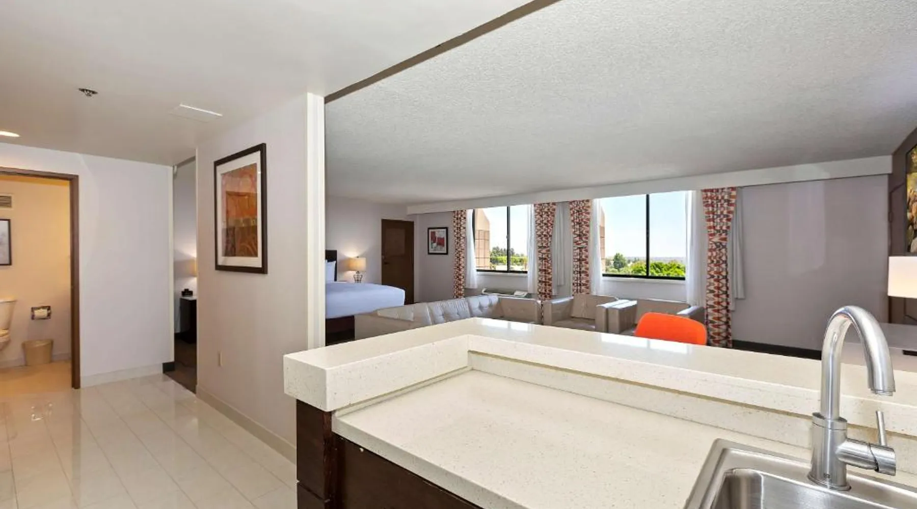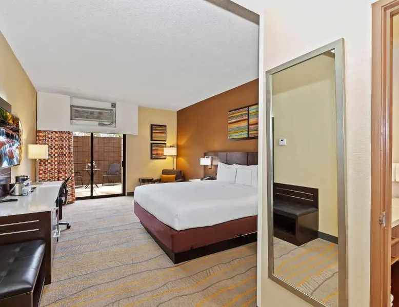 Located in Whittier, California, 15 miles from Disneyland, Doubletree by Hilton Whittier offers on-site dining and a seasonal outdoor pool. A 24-hour gym is located on site. All comfortably furnished guest rooms include free WiFi. Each bright room features cable TV. Tea and coffee making facilities are included in all rooms. A large work desk is provided. Guests at Doubletree by Hilton Whittier can enjoy breakfast at Bistro. Knott's Berry Farm is 12 miles from this hotel. La Habra Children's Museum is 7 miles away. A free transfer service will take guests to all attractions within a 7-mile radius. The spacious double room offers air conditioning, a tea and coffee maker, a safe deposit box, heating and a flat-screen TV. The unit has 1 bed.
