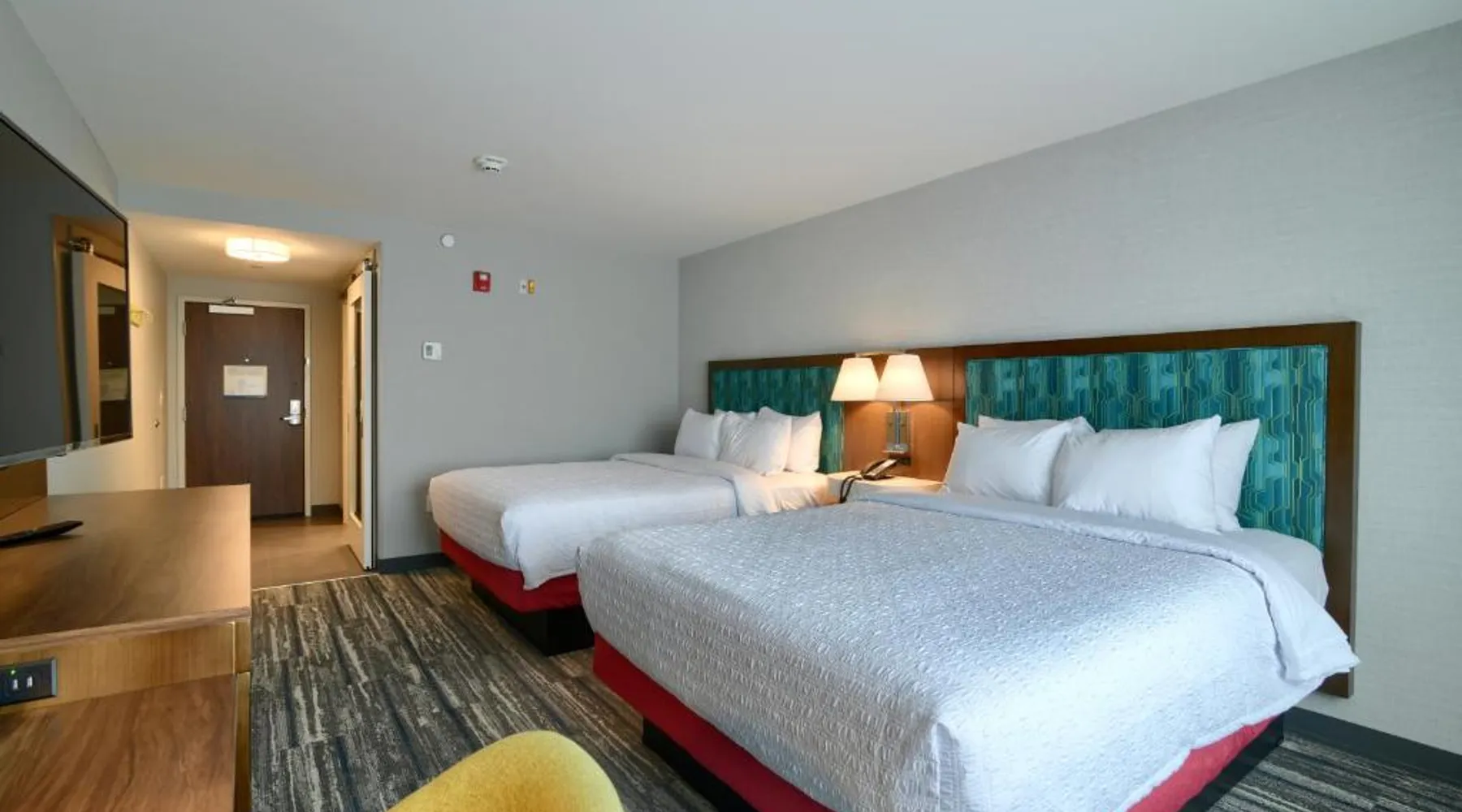 Comfortable Accommodations: Rooms feature air-conditioning, free WiFi, and modern amenities including a work desk, refrigerator, and TV. Additional comforts include a sofa bed and seating area. Leisure Facilities: Guests can enjoy an indoor swimming pool, fitness room, and child-friendly buffet. The hotel offers a 24-hour front desk, electric vehicle charging station, and free toiletries. Dining Options: A variety of breakfast options are available, including American, buffet, vegetarian, and vegan. The on-site restaurant caters to diverse dietary needs. Location and Attractions: Located in Lincoln, the hotel is 3.7 mi from Loon Mountain and 12 mi from Franconia Notch State Park. Lebanon Municipal Airport is 63 mi away. Winter sports are popular in the surrounding area. This quadruple room is air-conditioned and features a flat-screen TV with cable channels, a tea and coffee maker and heating. The unit offers 2 beds.