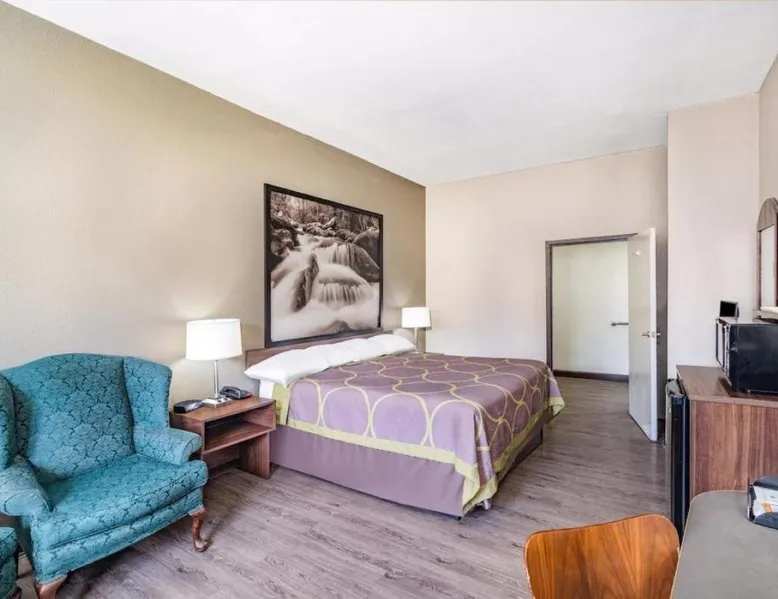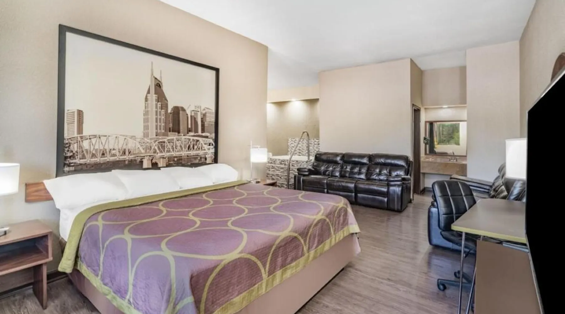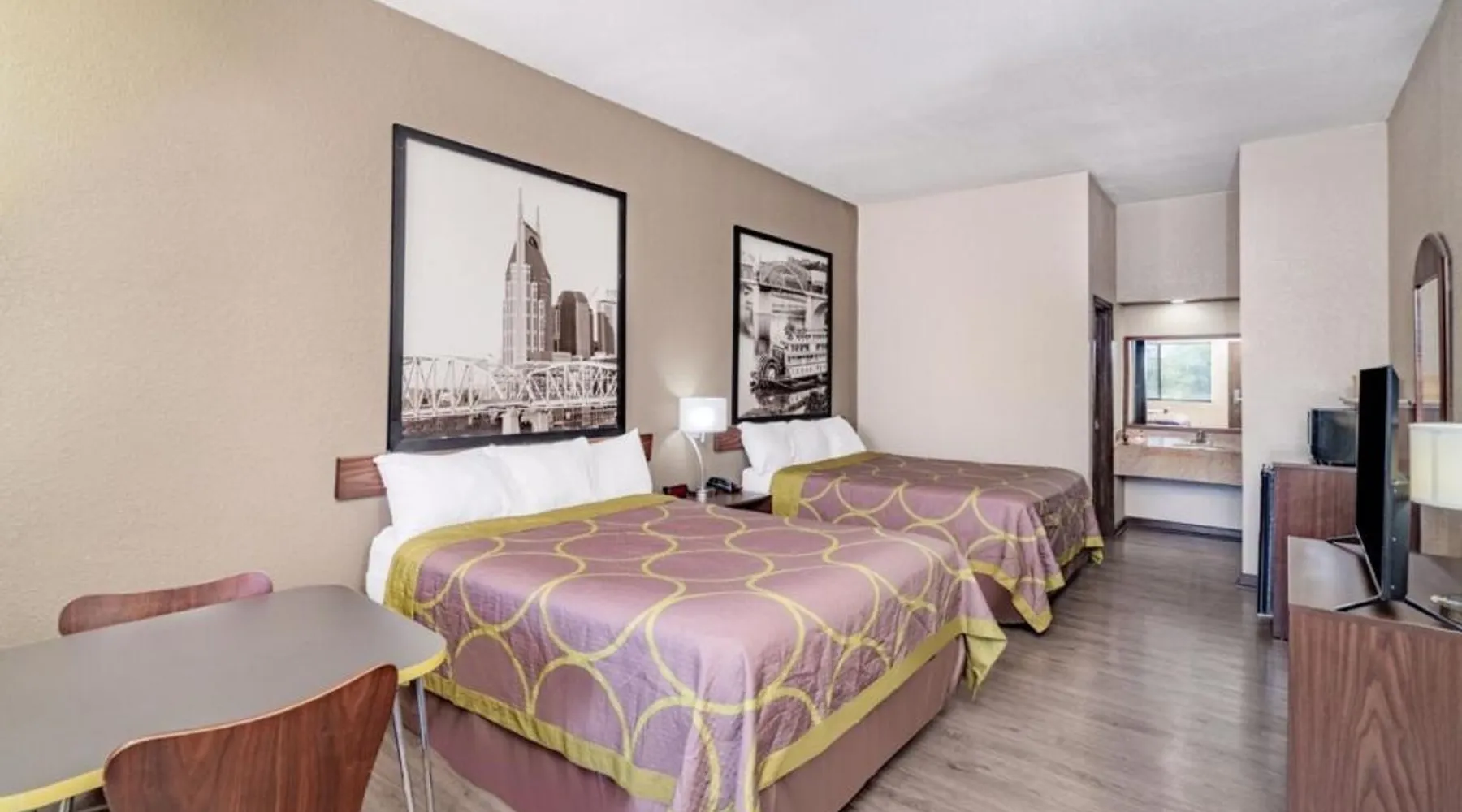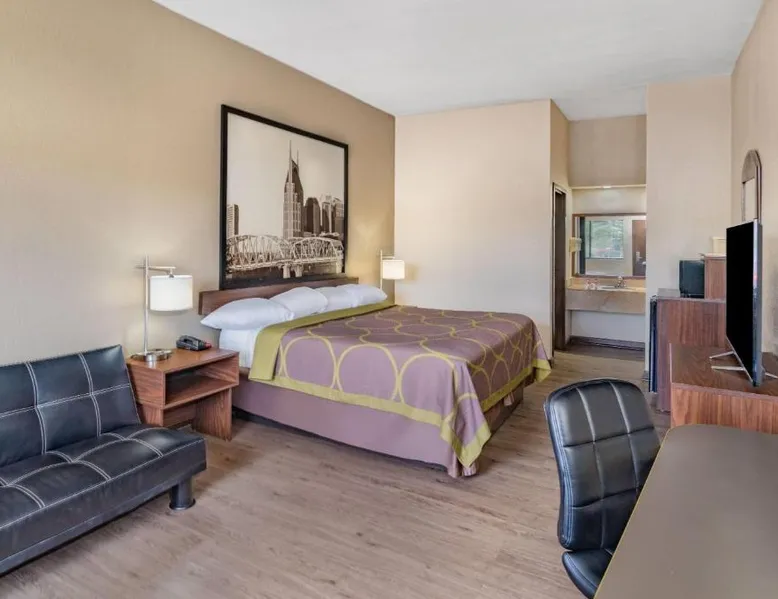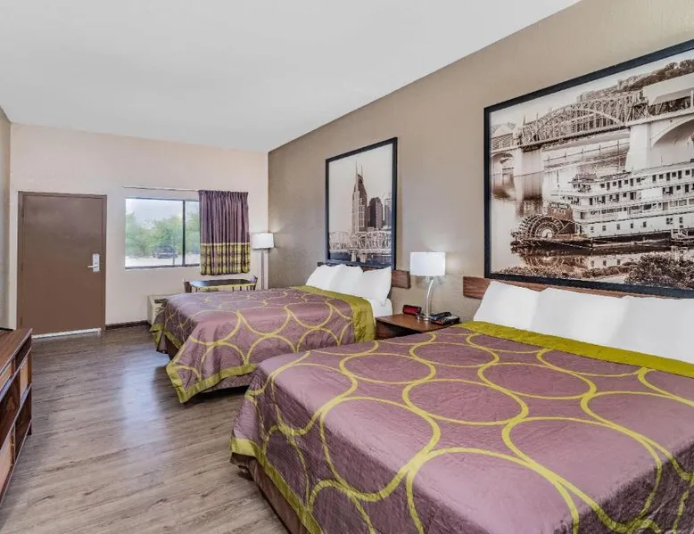 Comfortable Accommodations: Super 8 by Wyndham Columbia in Columbia offers family rooms with air-conditioning, private bathrooms, and free WiFi. Each room includes a tea and coffee maker, hairdryer, work desk, free toiletries, microwave, TV, and a spa bath. Convenient Facilities: Guests can enjoy a seasonal outdoor swimming pool and a 24-hour front desk. Additional amenities include a washing machine, coffee machine, ground-floor unit, walk-in shower, refrigerator, seating area, mini-bar, bath or shower, carpeted floor, interconnected rooms, and a private entrance. Prime Location: Located 37 mi from Nashville International Airport, the hotel is near attractions such as James K Polk House (8.7 mi), Elm Springs and Chickasaw Trace Park (12 mi each), Carnton and Winstead Hill Park (21 mi each), and Lotz House Museum (23 mi). Guests appreciate the room comfort, convenient location, and bed comfort. The suite offers air conditioning, a mini-bar, as well as a private bathroom featuring a hairdryer. This suite features a tea and coffee maker, heating and a TV.
