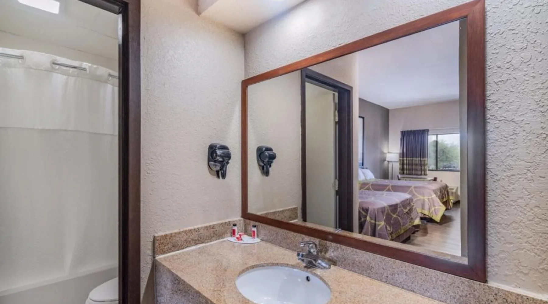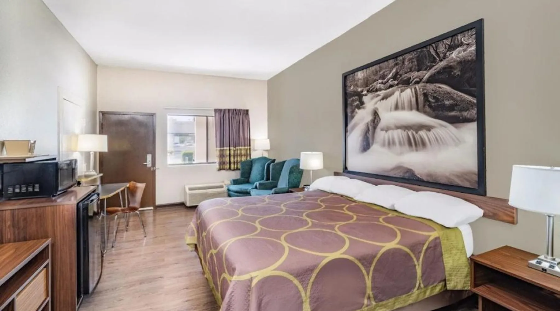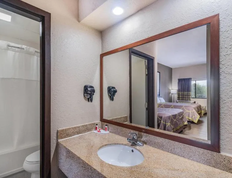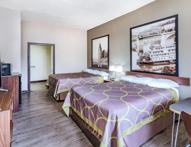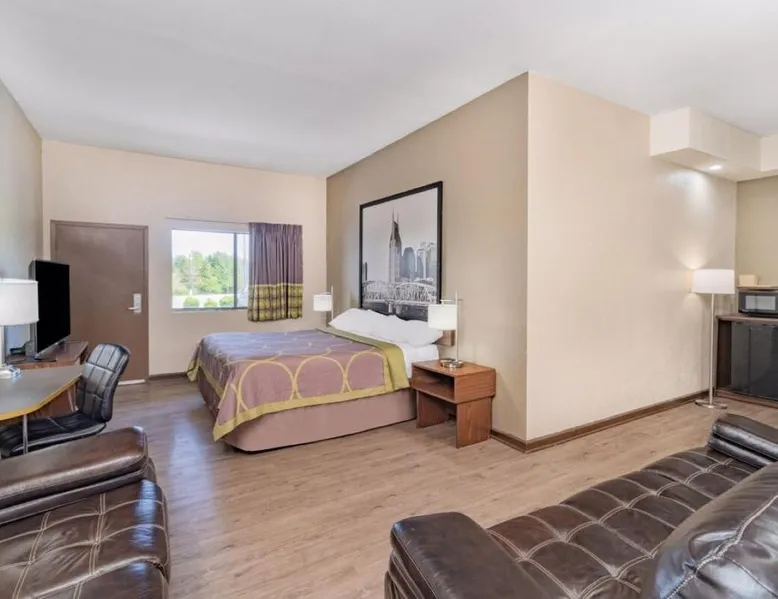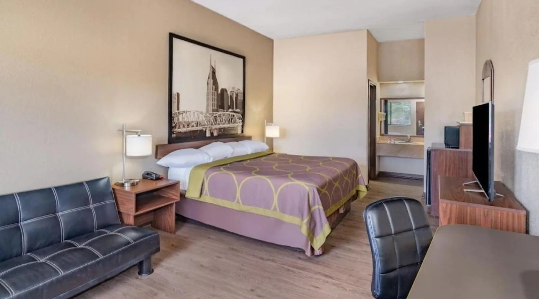 Comfortable Accommodations: Super 8 by Wyndham Columbia in Columbia offers family rooms with air-conditioning, private bathrooms, and free WiFi. Each room includes a tea and coffee maker, hairdryer, work desk, free toiletries, microwave, TV, and a spa bath. Convenient Facilities: Guests can enjoy a seasonal outdoor swimming pool and a 24-hour front desk. Additional amenities include a washing machine, coffee machine, ground-floor unit, walk-in shower, refrigerator, seating area, mini-bar, bath or shower, carpeted floor, interconnected rooms, and a private entrance. Prime Location: Located 37 mi from Nashville International Airport, the hotel is near attractions such as James K Polk House (8.7 mi), Elm Springs and Chickasaw Trace Park (12 mi each), Carnton and Winstead Hill Park (21 mi each), and Lotz House Museum (23 mi). Guests appreciate the room comfort, convenient location, and bed comfort. The suite offers air conditioning, a mini-bar, as well as a private bathroom featuring a hairdryer. This suite features a tea and coffee maker, heating and a TV.