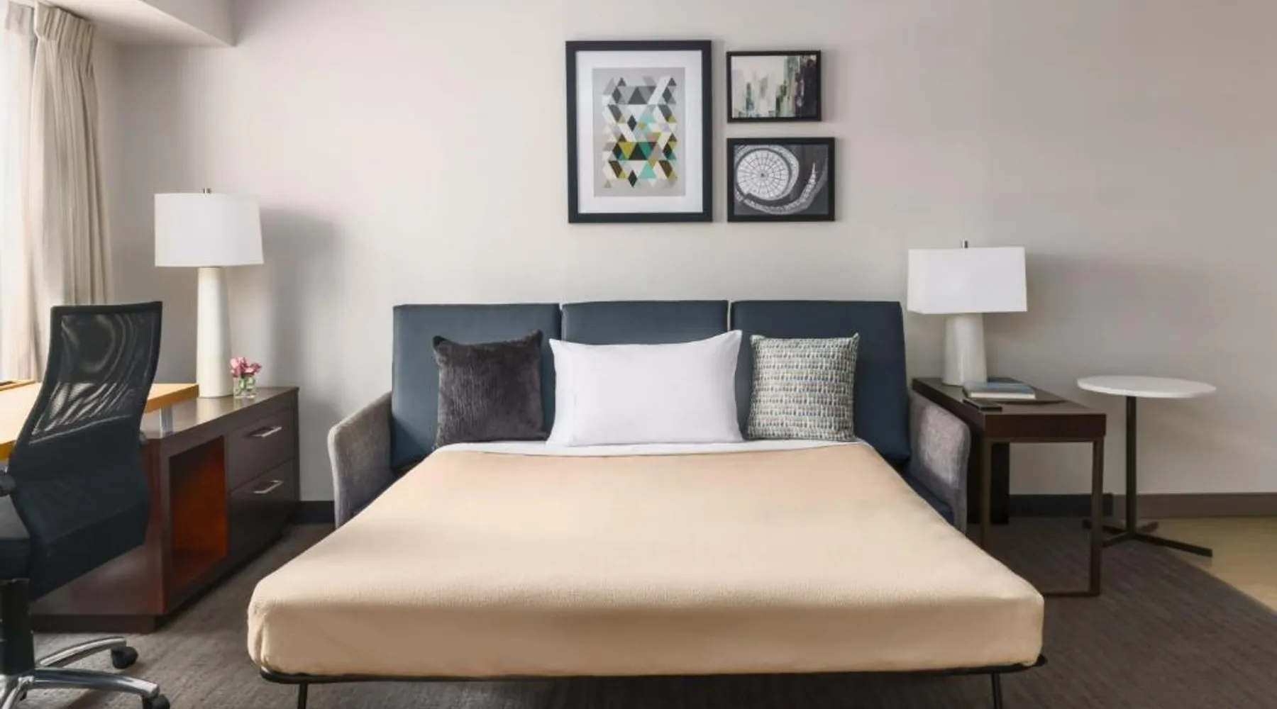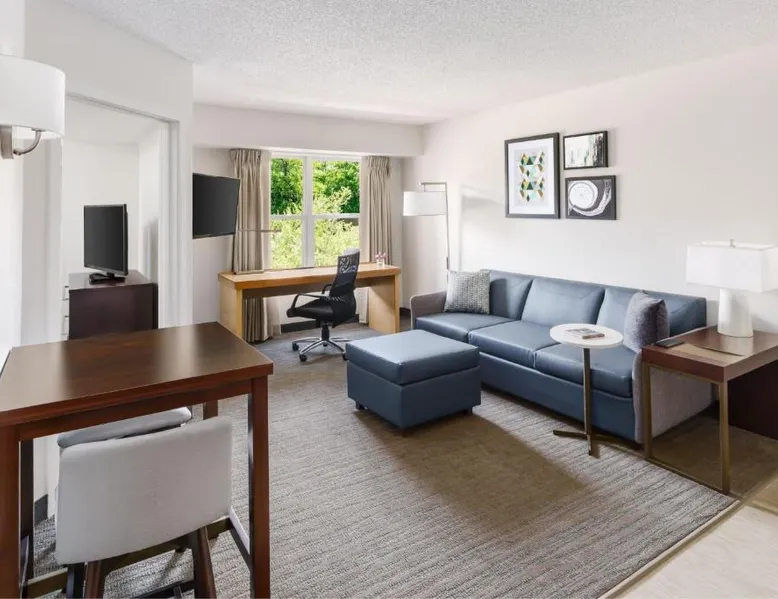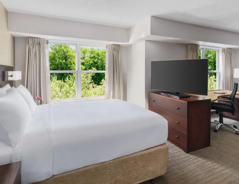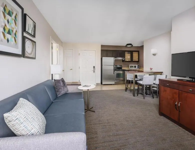 Comfortable Accommodations: Residence Inn Gaithersburg Washingtonian Center in Gaithersburg offers spacious rooms with air-conditioning, private bathrooms, and fully equipped kitchens. Each room includes a sofa bed, work desk, and free WiFi. Facilities and Services: Guests can enjoy a fitness center, terrace, and free bicycles. The hotel provides a 24-hour front desk, housekeeping, business area, family rooms, and full-day security. Additional amenities include a elevator, paid on-site parking, and a continental buffet breakfast with warm dishes, juice, cheese, and fruits. Prime Location: Located 24 mi from Ronald Reagan Washington National Airport, the hotel is near attractions such as the US Marine Corps War Memorial (20 mi) and the White House (20 mi). Guests appreciate the room comfort, breakfast provided by the property, and convenient location.