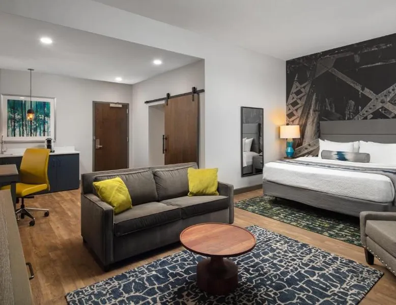 Comfortable Accommodations: Hotel Indigo Tuscaloosa Downtown by IHG in Tuscaloosa offers rooms with air-conditioning, private bathrooms, and river views. Each room includes a tea and coffee maker, work desk, and free WiFi. Exceptional Facilities: Guests can enjoy a fitness center, sun terrace, restaurant, and bar. Additional amenities include a lounge, outdoor fireplace, fitness room, and free on-site private parking. Prime Location: Located 61 mi from Birmingham-Shuttlesworth International Airport, the hotel is a 7-minute walk from Tuscaloosa Amphitheater. Nearby attractions include University of Alabama (1.9 mi) and Bryant Denny Stadium (1.9 mi). Guest Satisfaction: Highly rated for room cleanliness, convenient location, and attentive staff. The unit offers 2 beds.