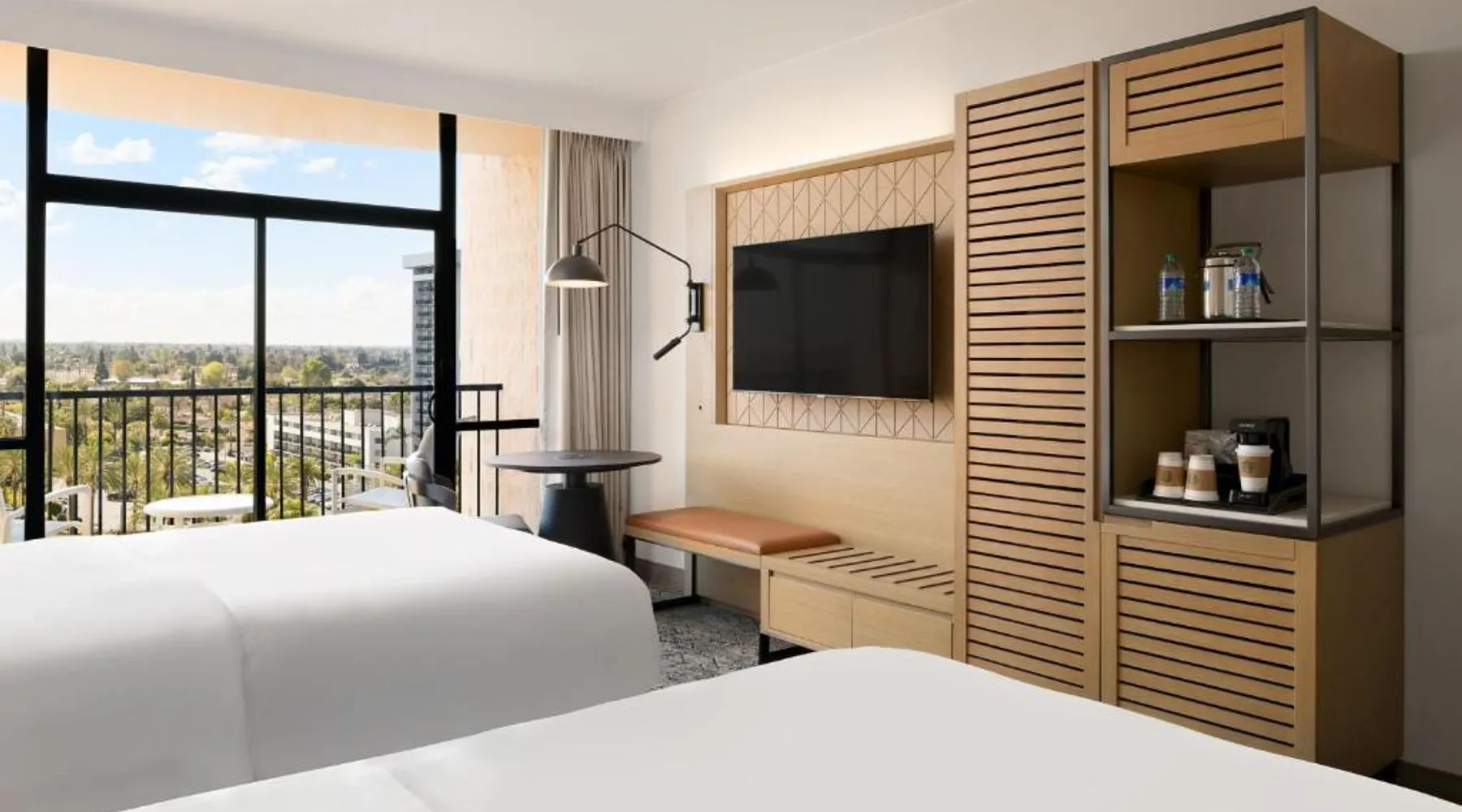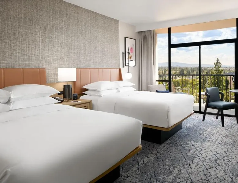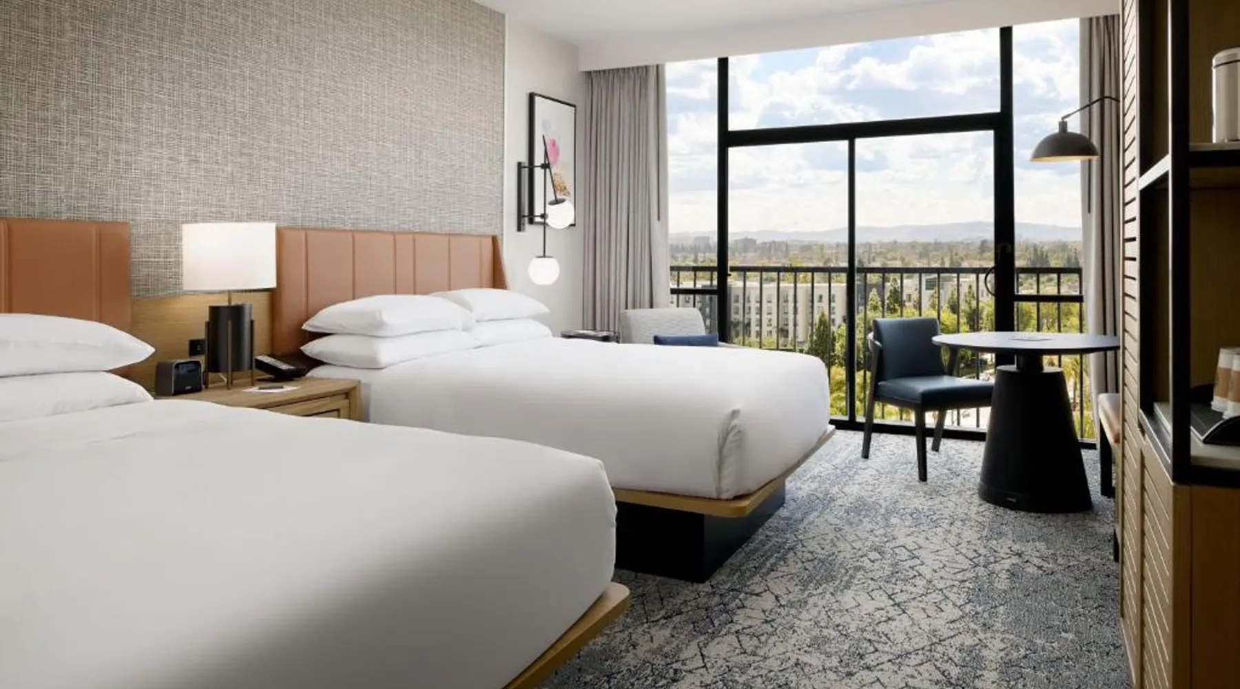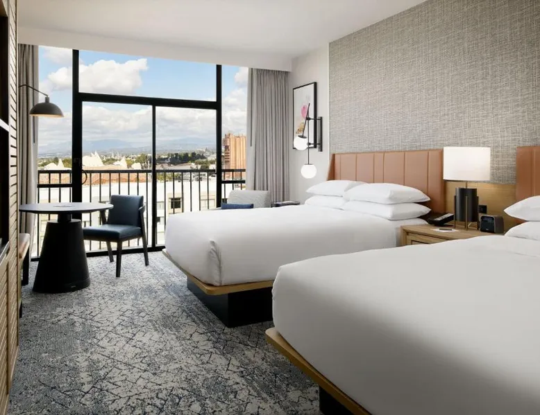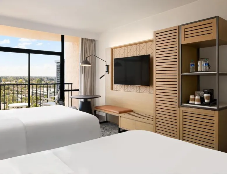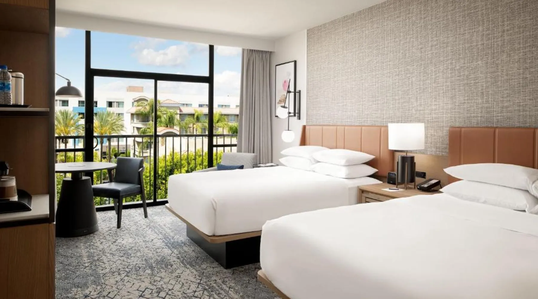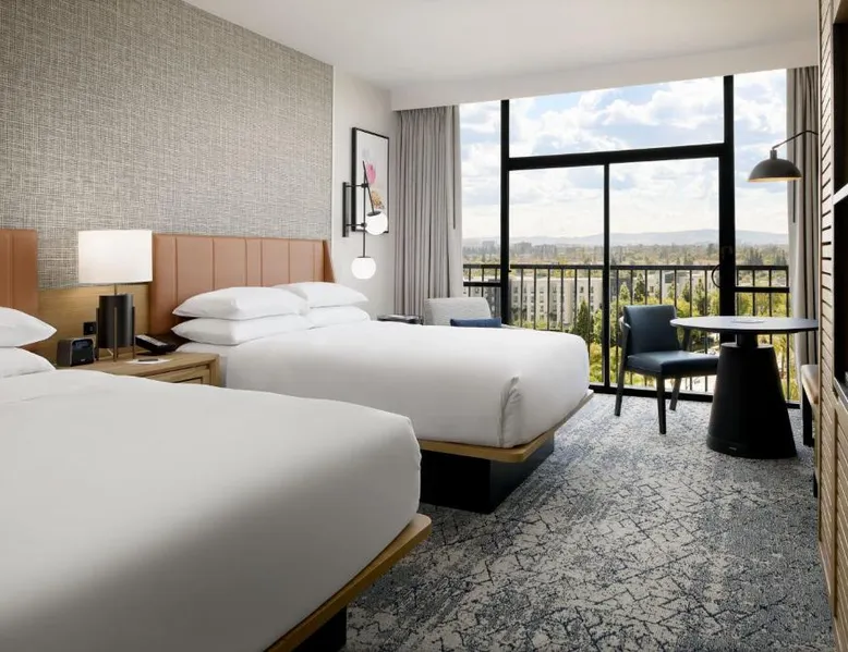 The Sheraton Park Hotel at the Anaheim Resort is ideally located within walking distance to the Disneyland Resort, the new Anaheim GardenWalk and the Anaheim Convention Center. Settle into one of the 490 guest rooms and suites, all featuring private balconies with views of either the lushly landscaped patio and pool area, or the Disneyland Resort and GardenWalk. Savor Stone Hearth Pizza & Wine is our full service restaurant offering Neapolitan-style pizza featuring seasonal prime toppings cooked before your eyes in a stone hearth oven and served as a continuous dining experience. Enjoy additional on-site dining at Savor breakfast, &More a la carte dinner, and SPLASH Pool Bar. The unit has 2 beds.
