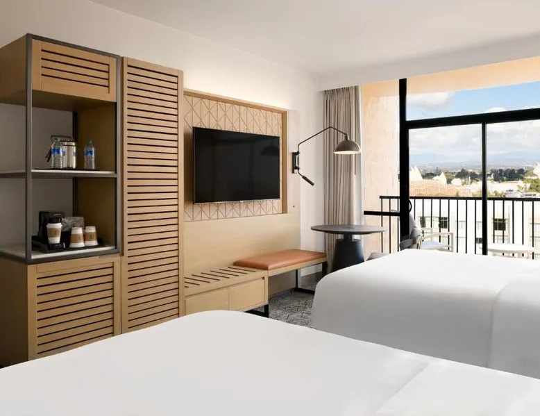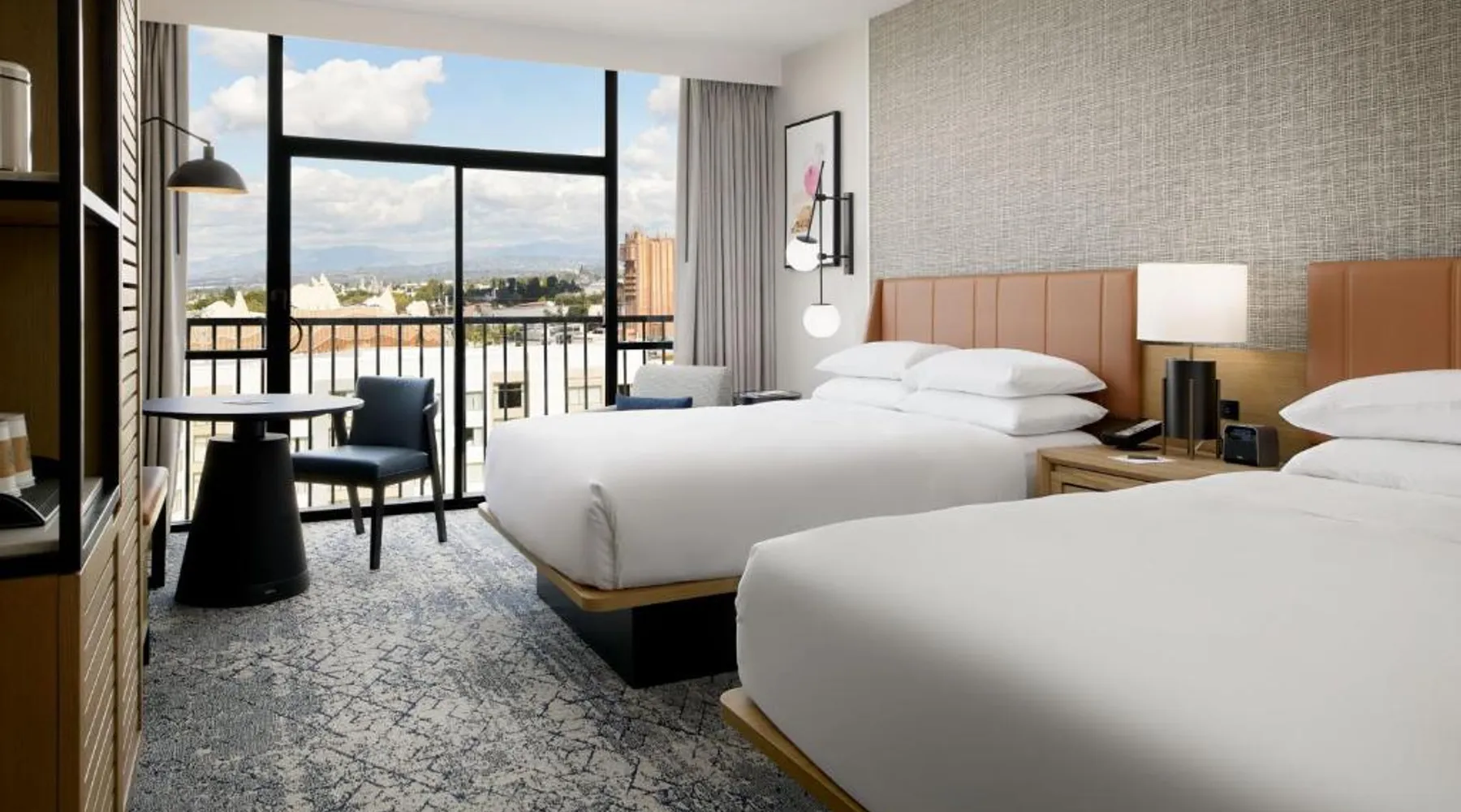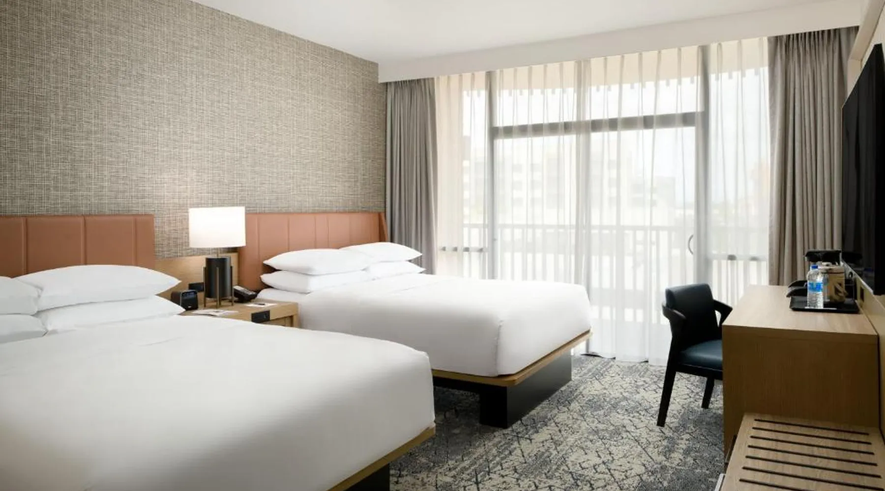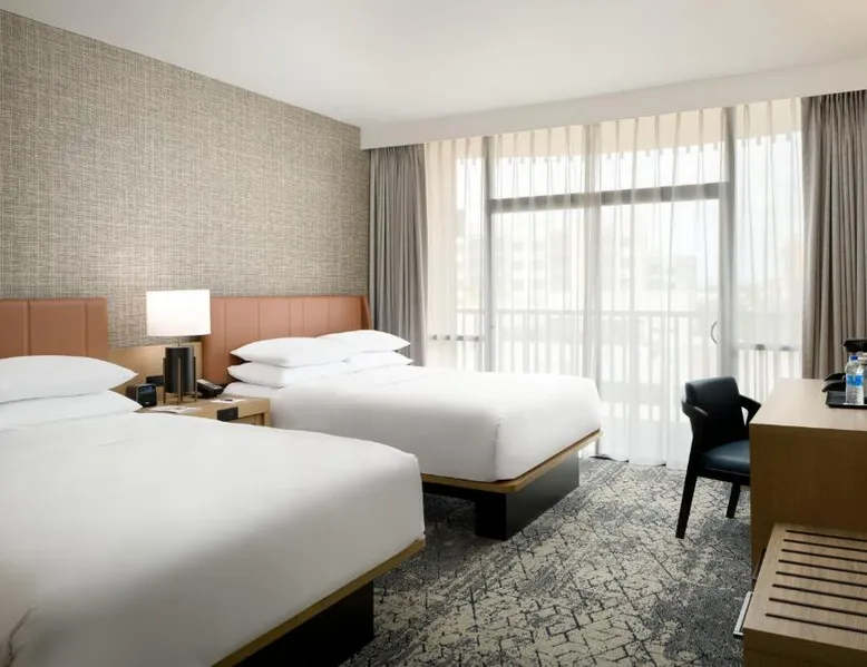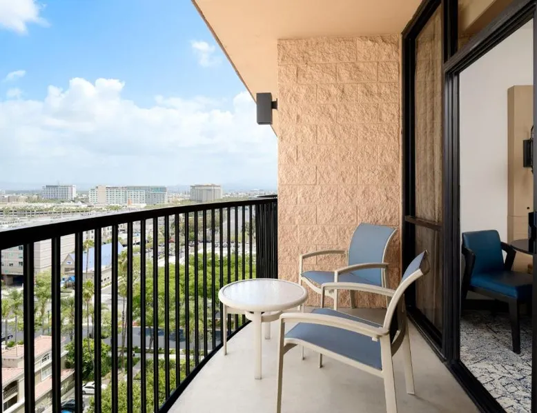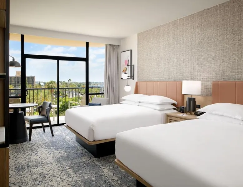 The Sheraton Park Hotel at the Anaheim Resort is ideally located within walking distance to the Disneyland Resort, the new Anaheim GardenWalk and the Anaheim Convention Center. Settle into one of the 490 guest rooms and suites, all featuring private balconies with views of either the lushly landscaped patio and pool area, or the Disneyland Resort and GardenWalk. Savor Stone Hearth Pizza & Wine is our full service restaurant offering Neapolitan-style pizza featuring seasonal prime toppings cooked before your eyes in a stone hearth oven and served as a continuous dining experience. Enjoy additional on-site dining at Savor breakfast, &More a la carte dinner, and SPLASH Pool Bar. The unit has 2 beds.