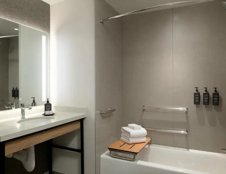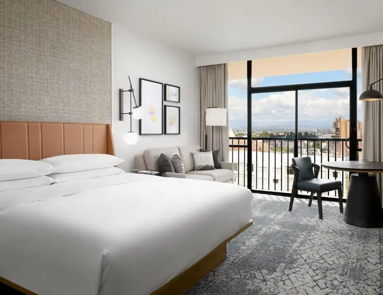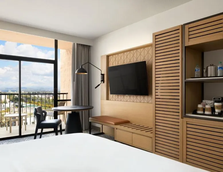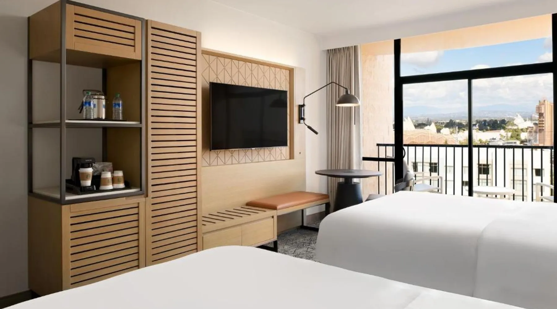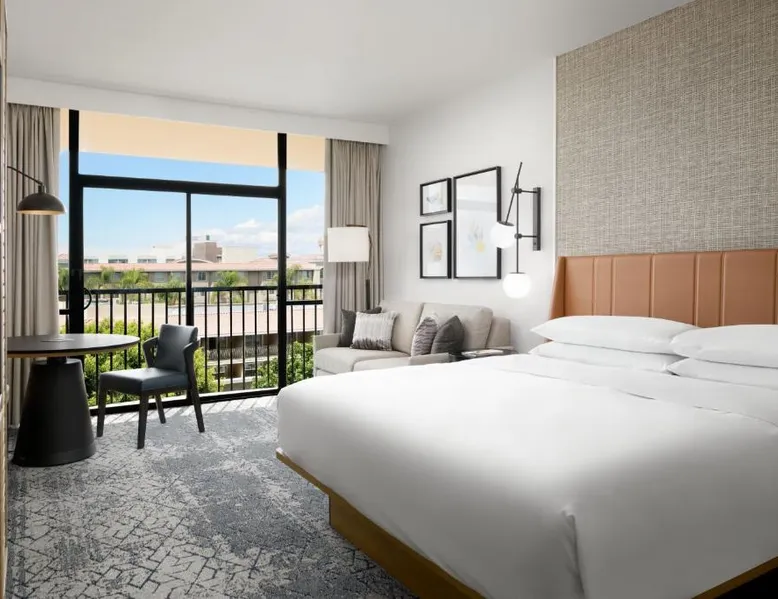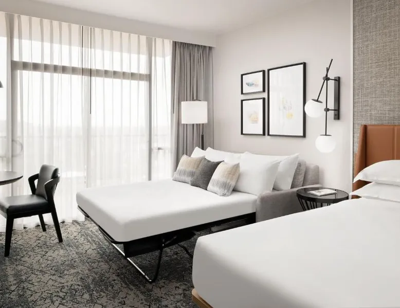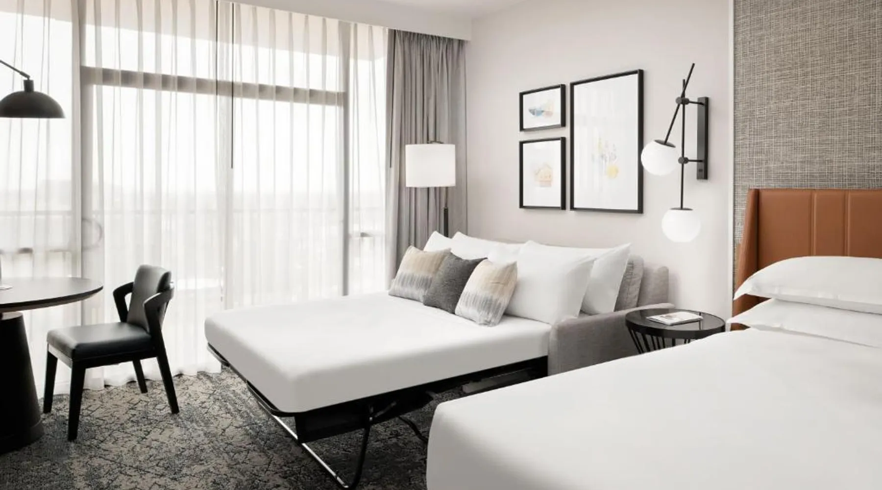 The Sheraton Park Hotel at the Anaheim Resort is ideally located within walking distance to the Disneyland Resort, the new Anaheim GardenWalk and the Anaheim Convention Center. Settle into one of the 490 guest rooms and suites, all featuring private balconies with views of either the lushly landscaped patio and pool area, or the Disneyland Resort and GardenWalk. Savor Stone Hearth Pizza & Wine is our full service restaurant offering Neapolitan-style pizza featuring seasonal prime toppings cooked before your eyes in a stone hearth oven and served as a continuous dining experience. Enjoy additional on-site dining at Savor breakfast, &More a la carte dinner, and SPLASH Pool Bar. The unit has 2 beds.