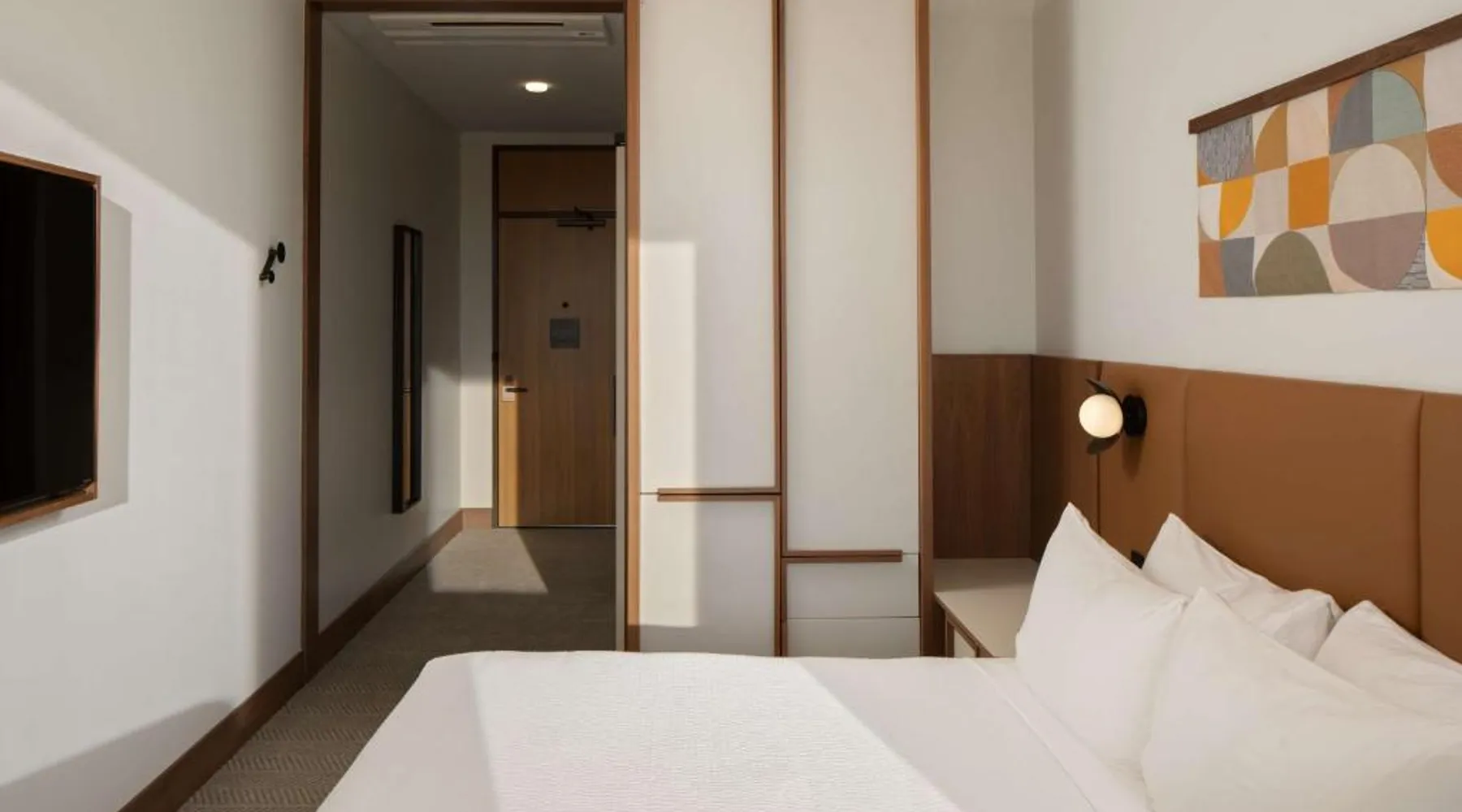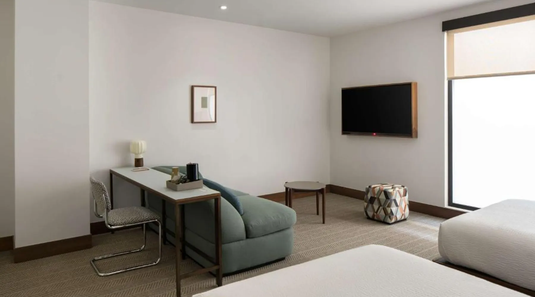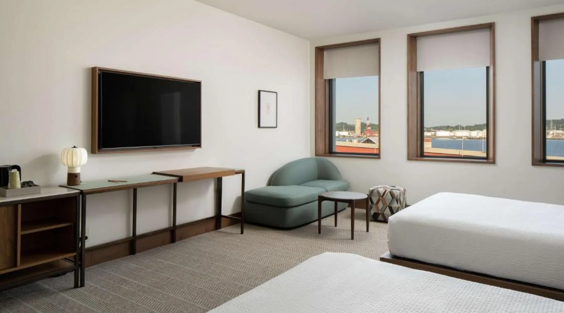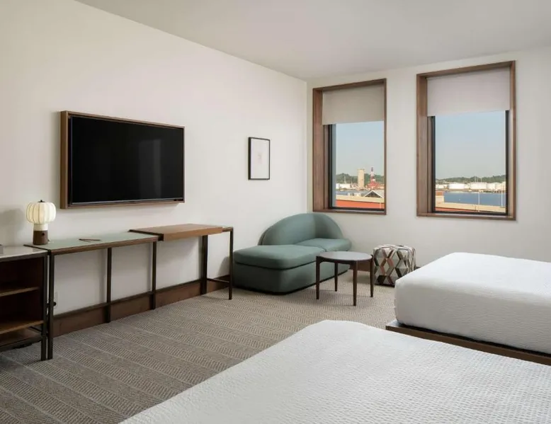 Comfortable Accommodations: Hotel Marcel New Haven in New Haven offers rooms with air-conditioning, private bathrooms, and modern amenities. Guests appreciate the room cleanliness and comfort. Dining and Leisure: The modern restaurant serves American cuisine for dinner. A bar provides a relaxing atmosphere. A terrace offers outdoor dining options. Convenient Facilities: The hotel features a fitness room, lounge, and 24-hour front desk. Additional services include a minimarket, electric vehicle charging, and bicycle parking. Prime Location: Located 3.7 mi from Tweed-New Haven Airport and 1.1 mi from City Hall, the hotel is near Yale University (1.9 mi) and The Yale Bowl (3.1 mi). Free on-site private parking is available. The quadruple room features a flat-screen TV, a tea and coffee maker, a safe deposit box and heating. The unit has 2 beds.