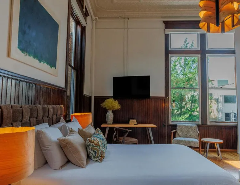 Comfortable Accommodations: Fire Station One Boutique Hotel in Roanoke offers recently renovated rooms with air-conditioning, private bathrooms, and free WiFi. Each room includes a coffee machine, refrigerator, and TV. Dining and Leisure: Guests can enjoy a restaurant and bar on-site. The hotel provides a elevator, private check-in and check-out services, daily housekeeping, and family rooms. Convenient Location: Located 5 mi from Roanoke Airport, the hotel is near attractions such as the Science Museum of Western Virginia (3-minute walk), Virginia Museum of Transportation (less than 0.6 mi), and Mill Mountain Zoo (3 mi). Highly rated by guests. Boasting a private entrance, this air-conditioned suite includes 1 living room, 1 separate bedroom and 1 bathroom with a bath and a shower. The suite has parquet floors, a seating area with a flat-screen TV, a coffee machine, a wardrobe, as well as a sofa. The unit has 1 bed.