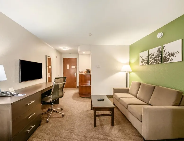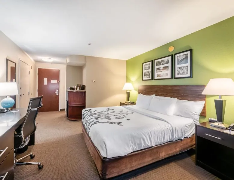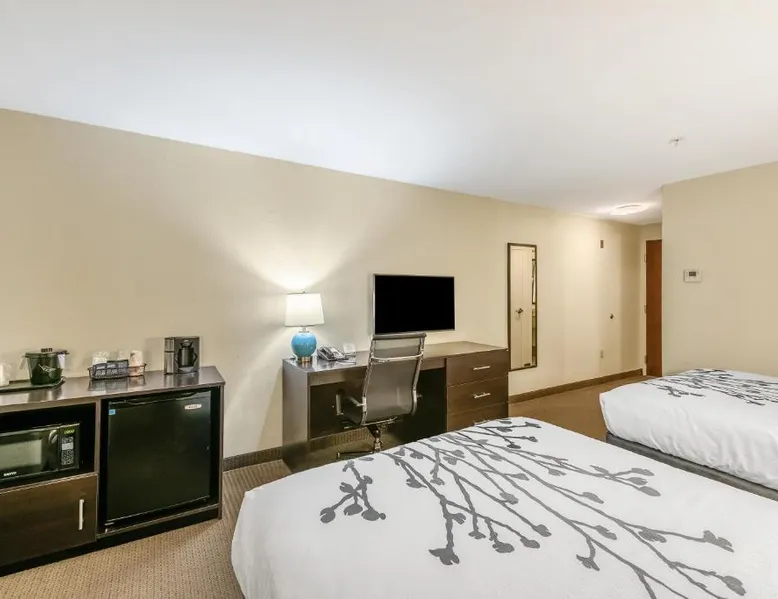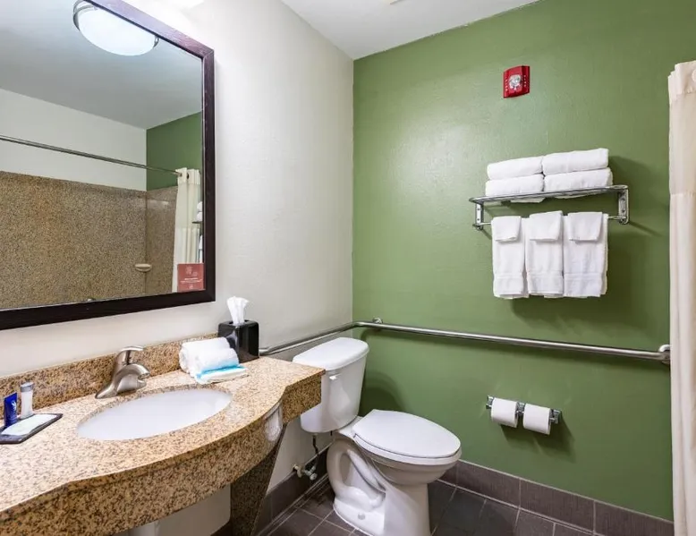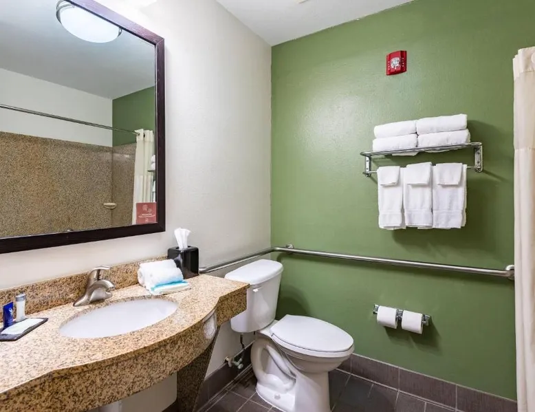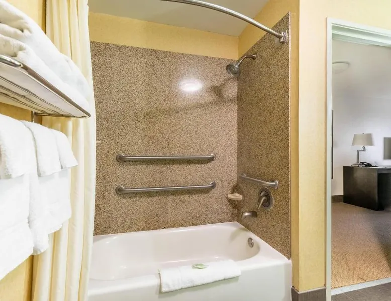 Comfortable Accommodations: Sleep Inn & Suites Ruston Near University in Ruston offers family rooms with air-conditioning, private bathrooms, and free WiFi. Each room includes a tea and coffee maker, hairdryer, refrigerator, work desk, microwave, and TV. Leisure Facilities: Guests can enjoy a spa and wellness center, saltwater and indoor swimming pools, fitness center, sun terrace, and hot tub. Additional amenities include a lounge, fitness room, 24-hour front desk, and free on-site private parking. Convenient Location: Located 36 mi from Monroe Regional Airport, the hotel is near Joe Aillet Stadium and Thomas Assembly Center, both 1.9 mi away. Ike Hamilton Expo Center is 27 mi from the property. Guest Satisfaction: Highly rated for its attentive staff, room cleanliness, and continental breakfast provided by the hotel. Offering free toiletries, this suite includes a private bathroom with a bath, a shower and a hairdryer. The suite offers air conditioning, a tea and coffee maker, a seating area, a sofa and a flat-screen TV with cable channels.