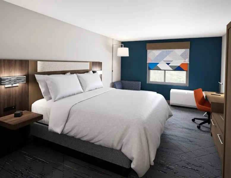 Comfortable Accommodations: Holiday Inn Express - Cabot by IHG in Cabot offers family rooms with private bathrooms, work desks, and free WiFi. Each room includes a TV, soundproofing, and a wardrobe. Leisure Facilities: Guests can enjoy a fitness center, seasonal outdoor swimming pool, and an outdoor fireplace. Additional amenities include a lounge, public bath, and electric vehicle charging station. Dining Options: A complimentary American buffet breakfast is served daily, featuring fresh pastries, pancakes, fruits, and juice. Convenient Location: Located 25 mi from Clinton National Airport, the hotel is near attractions such as Simmons Bank Arena (22 mi) and the Arkansas Arts Center (24 mi). Free on-site private parking is available. The private pool is a top feature of this double room. The spacious double room features soundproof walls, a wardrobe, as well as a private bathroom boasting a bath or a shower and a hairdryer. This double room has a safe deposit box, a carpeted floor and a flat-screen TV. The unit has 1 bed.