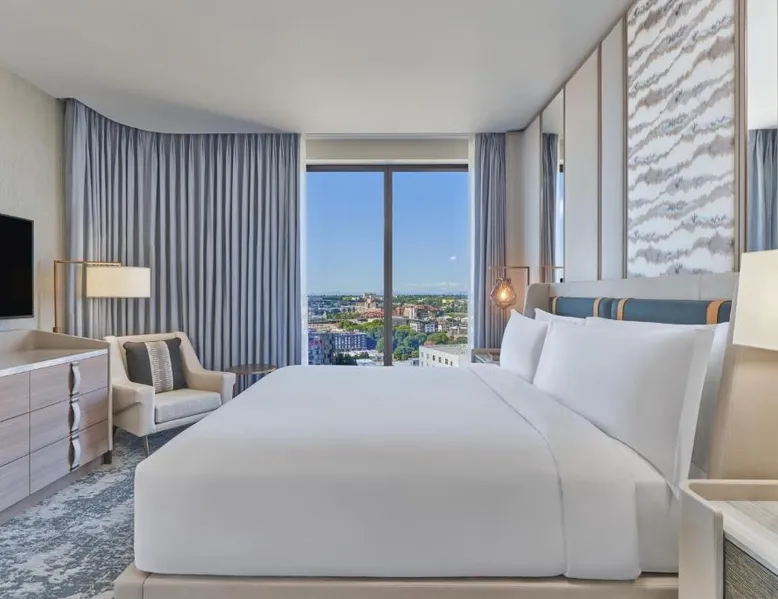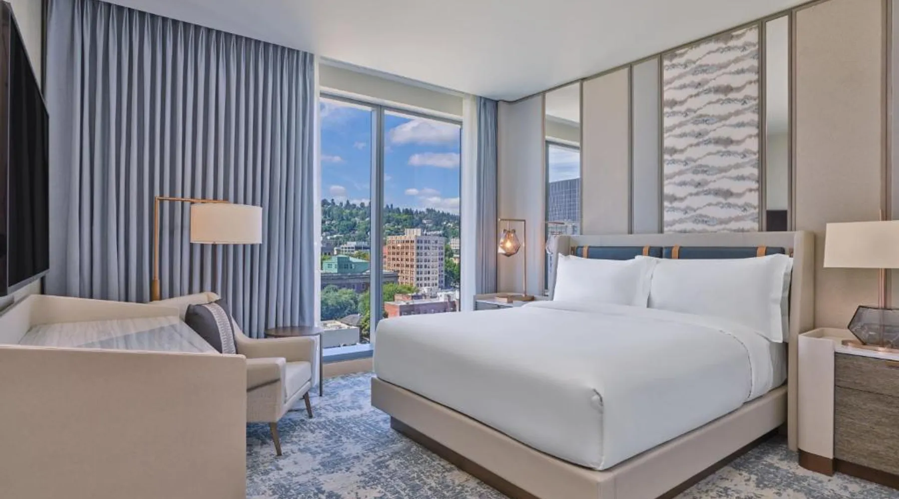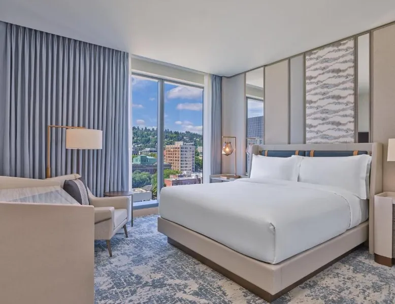 Elegant Accommodations: The Ritz-Carlton, Portland in Portland offers luxurious rooms with air-conditioning, private bathrooms, and modern amenities. Each room includes a bathrobe, tea and coffee maker, and free toiletries. Exceptional Facilities: Guests can enjoy a rooftop swimming pool, indoor pool, spa facilities, sauna, and fitness center. Additional amenities include a steam room, hot tub, and 24-hour front desk. Dining Experience: The romantic restaurant serves American cuisine for lunch and dinner, complemented by cocktails. Breakfast is available as an American buffet. Prime Location: Located 8.1 mi from Portland International Airport, the hotel is near attractions such as Portland Art Museum (7-minute walk) and Lan Su Chinese Garden (less than 0.6 mi). Highly rated for its swimming pool, attentive staff, and excellent restaurant. The spacious double room offers air conditioning, a tea and coffee maker, as well as a private bathroom featuring a bath and a shower. This double room features a carpeted floor, heating and a flat-screen TV with cable channels. The unit offers 1 bed.