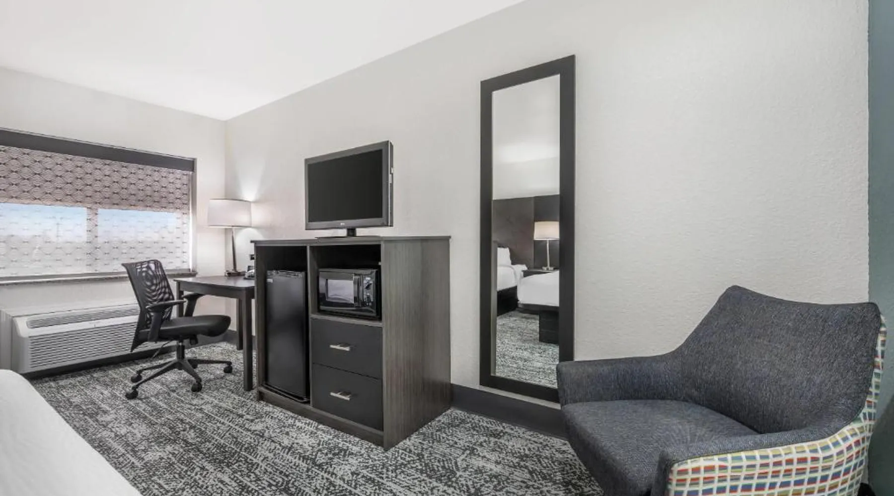 Comfortable Accommodations: Sleep Inn in Champaign offers comfortable rooms with free WiFi, air-conditioning, and modern amenities. Guests enjoy a fitness center, sun terrace, and a tranquil garden. Convenient Facilities: The hotel features a lounge, fitness room, elevator, 24-hour front desk, minimarket, daily housekeeping, business area, picnic area, express check-in and check-out, room service, and barbecue facilities. Free on-site parking is available. Dining Options: A complimentary American buffet breakfast includes warm dishes, juice, pancakes, cheese, and fruits. Additional amenities include tea and coffee makers, hairdryers, refrigerators, and microwaves. Nearby Attractions: Located 8.1 mi from University of Illinois-Willard Airport, the hotel is close to Orpheum Children's Science Museum (1.6 mi), Krannert Center for the Performing Arts (3.1 mi), and an ice-skating rink. Guests appreciate the attent staff and room comfort.