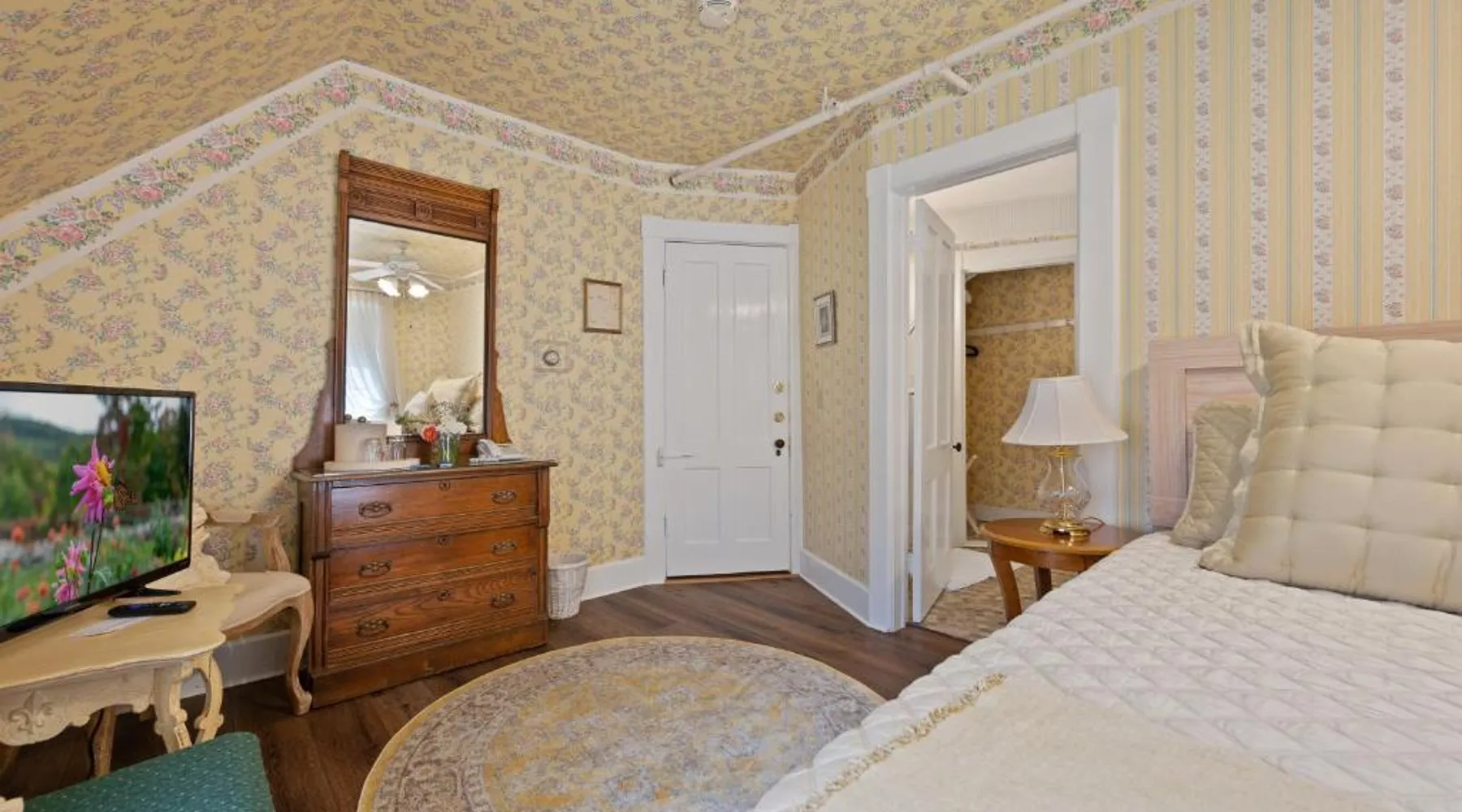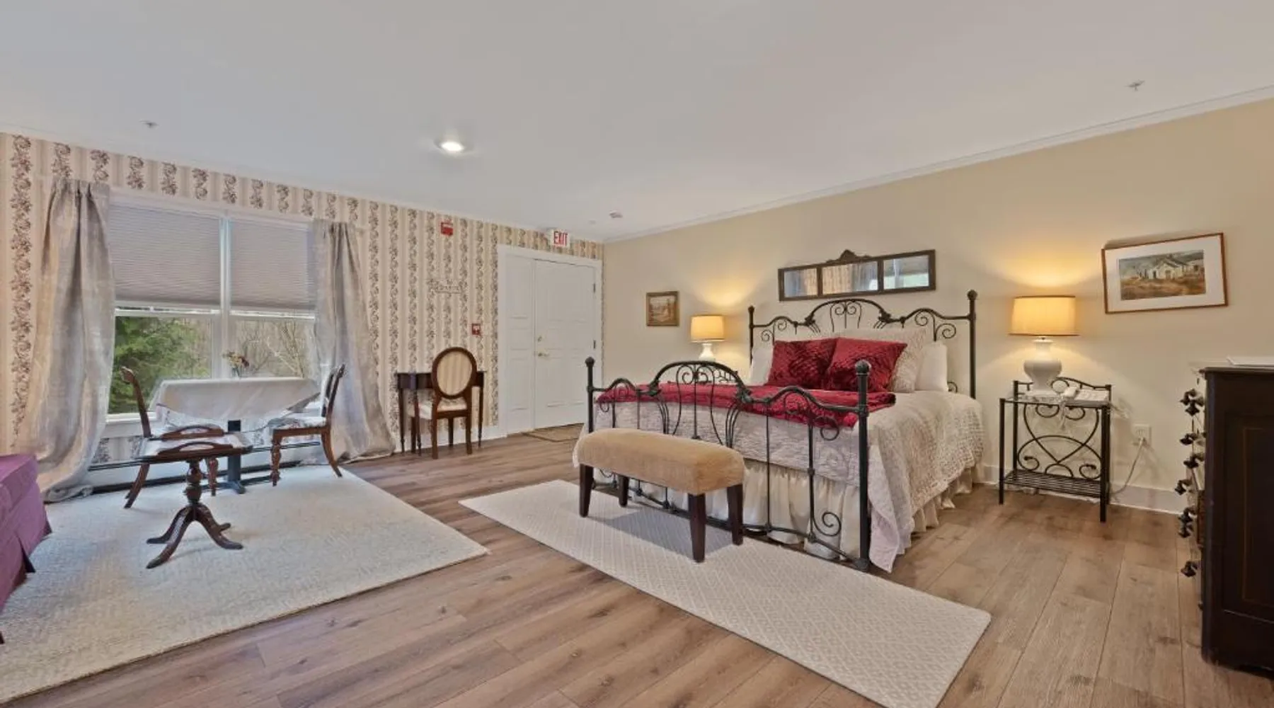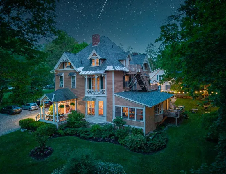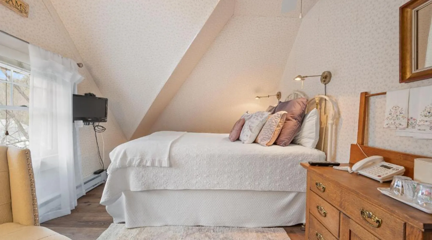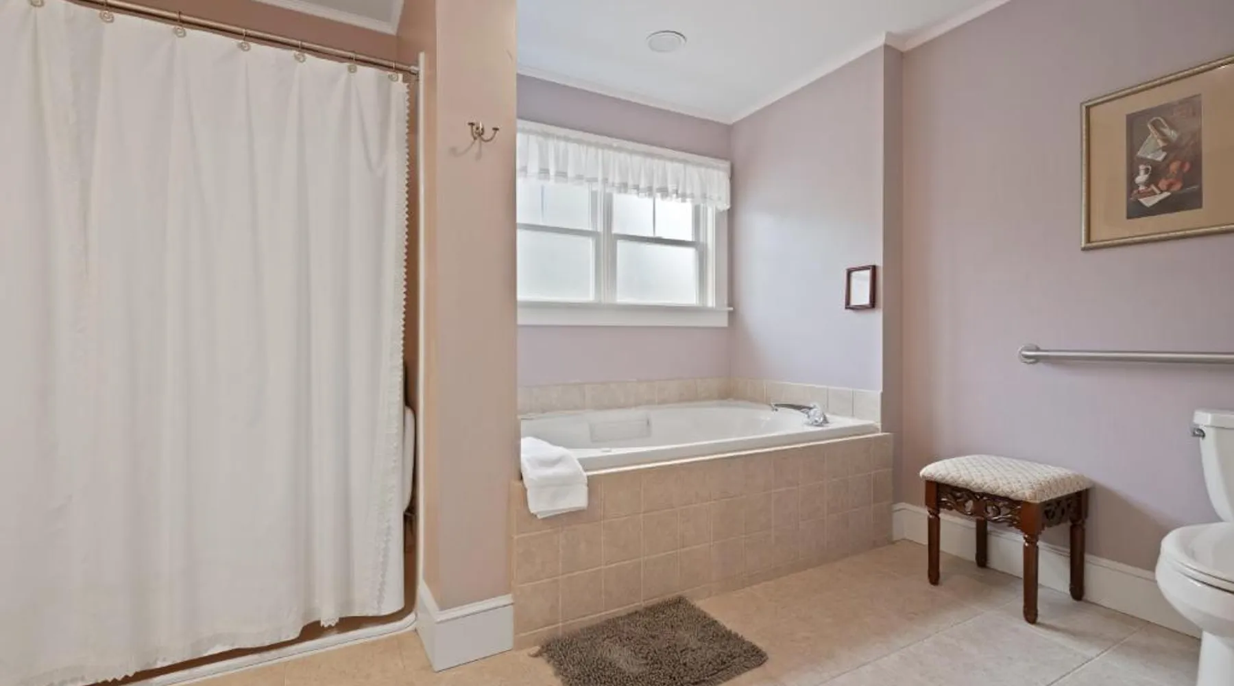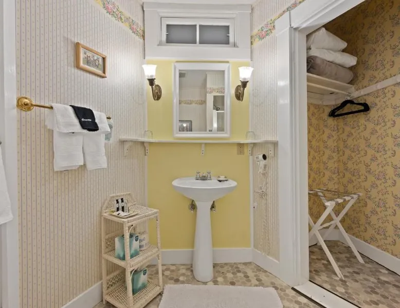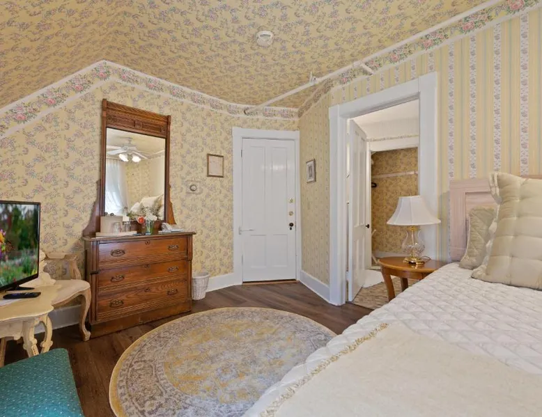 Historic Charm: Brook Farm Inn in Lenox offers a 4-star bed and breakfast experience within a historic building. The property is highly rated for its central location and excellent service. Outdoor Amenities: Guests can enjoy a seasonal outdoor swimming pool, a beautiful garden, and an outdoor fireplace. Free WiFi is available throughout the property, ensuring connectivity. Comfortable Accommodations: Rooms feature air-conditioning, private bathrooms with bidets, and modern amenities such as TVs and work desks. Balconies offer garden or pool views, enhancing the stay. Delicious Breakfast: A variety of breakfast options are available, including American, full English/Irish, vegetarian, vegan, and gluten-free. Fresh fruits, warm dishes, and juices are served daily. Nearby Attractions: Located 1.9 mi from Tanglewood and Cranwell Spa & Golf Club, 6.8 mi from Norman Rockwell Museum, and 28 mi from The Clark Art Institute. Albany International Airport is 49 mi away. Located on the second floor, this room features cool blues and subdued floral plus the refined style of East Lake furniture and marble. It also has a fireplace, a couch, a TV and a bathroom with a bathtub and shower.