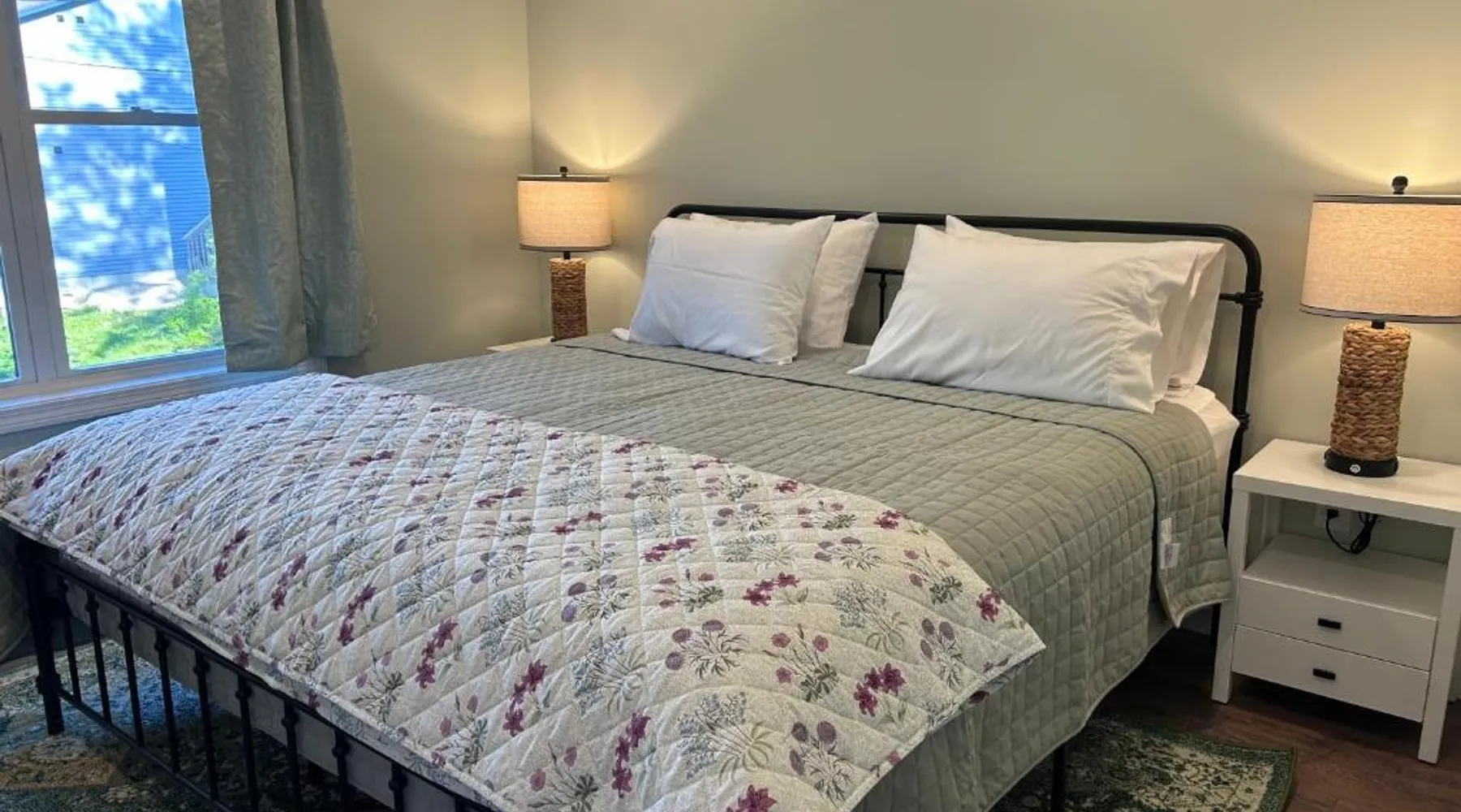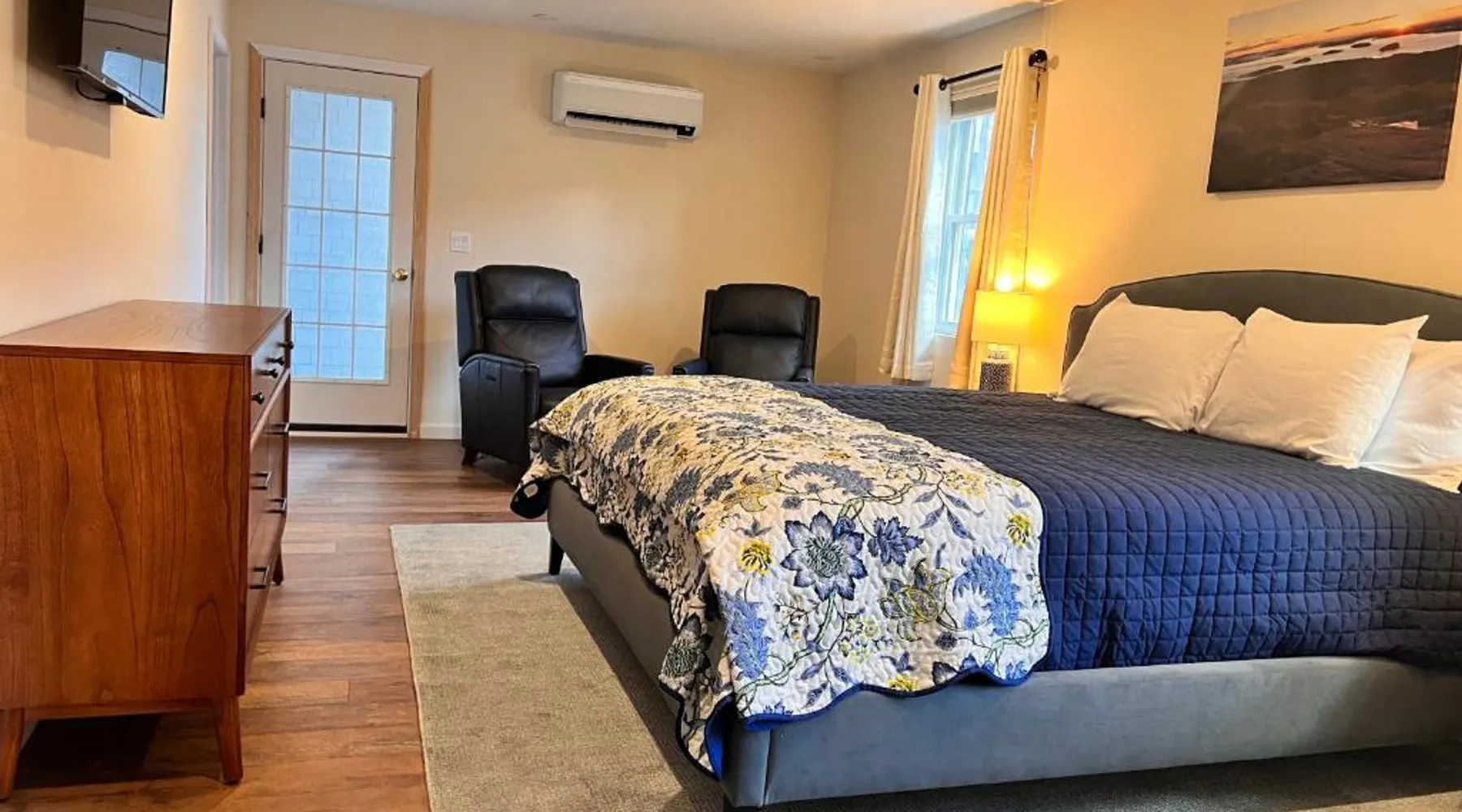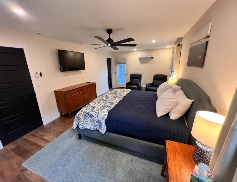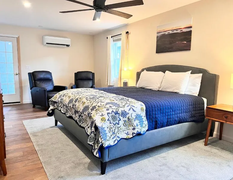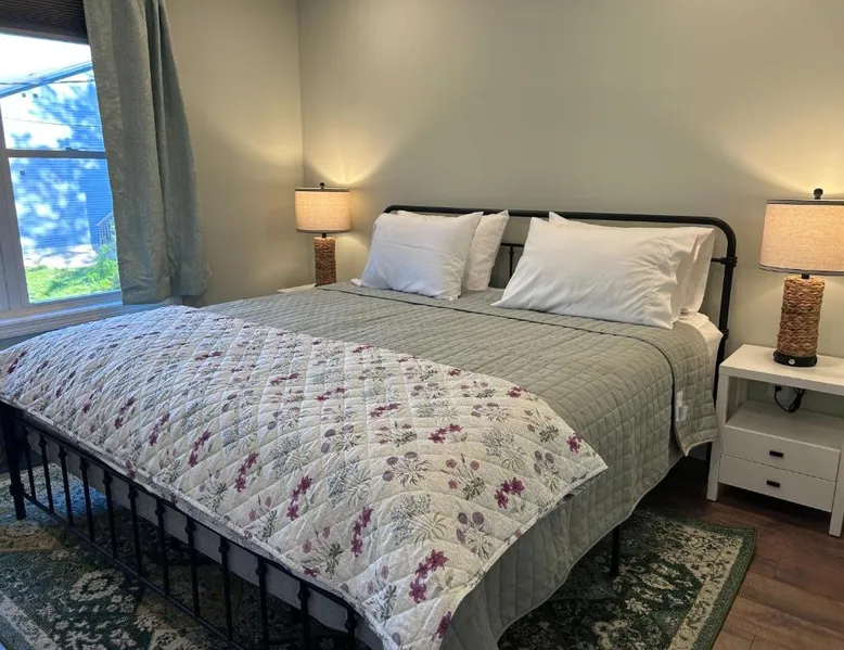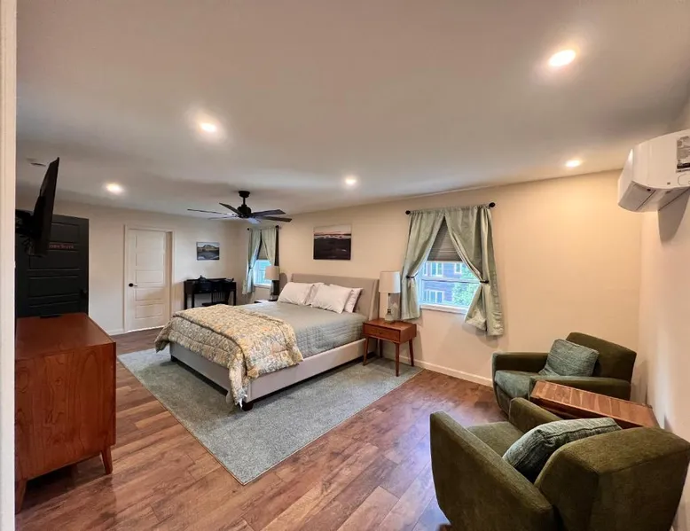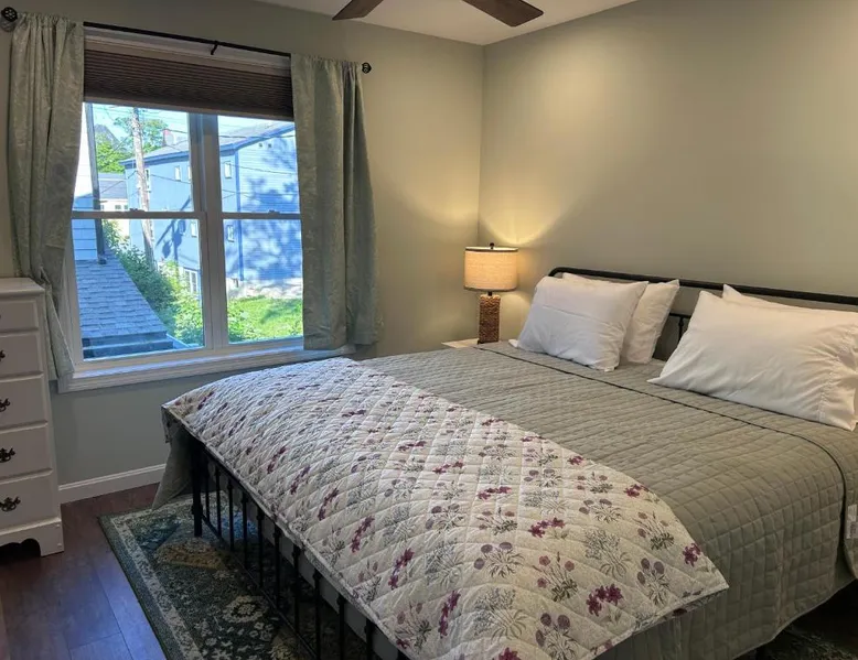 Comfortable Accommodations: Canterbury Suites B&B in Bar Harbor offers air-conditioned rooms with private bathrooms, garden views, and parquet floors. Each room includes a work desk, TV, and free toiletries. Essential Facilities: Guests enjoy a terrace and balcony, perfect for relaxation. Free WiFi is available throughout the property. Additional amenities include a dressing room and bicycle parking. Convenient Location: Located 12 mi from Hancock County-Bar Harbor Airport, the inn is an 8-minute walk from Town Beach and near attractions such as Agamont Park (2297 feet) and The Abbe Museum (4-minute walk). Frenchman Bay is 1.7 mi away. Guest Highlights: Highly rated for its friendly host, balcony, and breakfast provided by the property. This air-conditioned double room is consisted of of a flat-screen TV with cable channels, a private bathroom as well as a terrace with garden views. The unit has 1 bed.