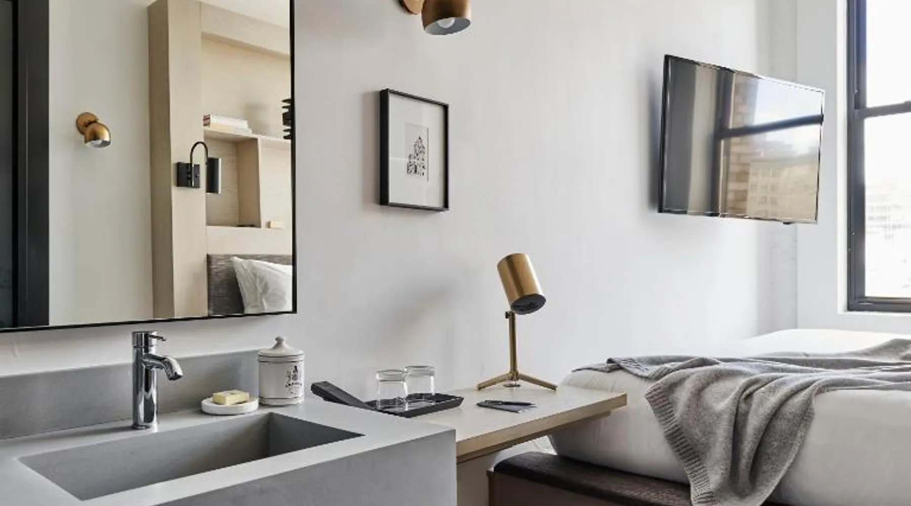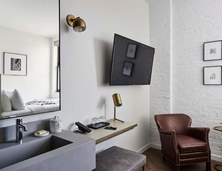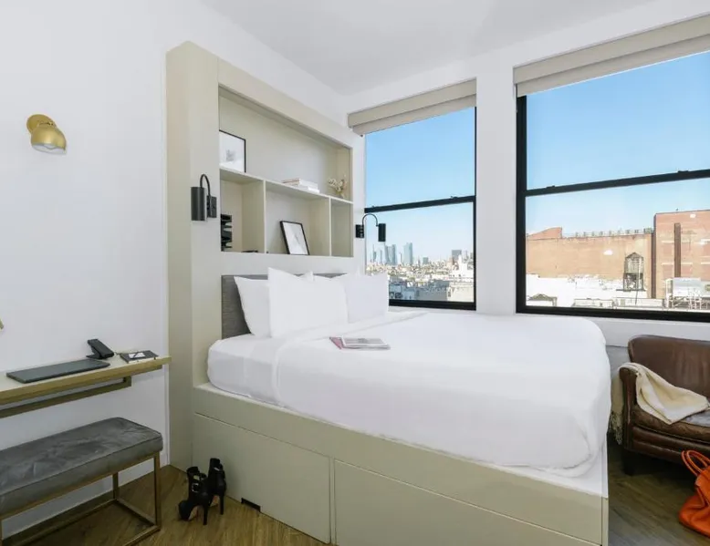 Comfortable Accommodations: Walker Hotel Tribeca in New York offers air-conditioned rooms with private bathrooms, city views, and modern amenities including free WiFi, bathrobes, and flat-screen TVs. Exceptional Facilities: Guests can enjoy a fitness center, free bicycles, a bar, and complimentary WiFi in public areas. Additional services include a 24-hour front desk, daily housekeeping, and luggage storage. Prime Location: Located 9.3 mi from LaGuardia Airport, the hotel is a short walk from Collect Pond Park and Tribeca Park. Nearby attractions include Little Italy and Soho Photo Gallery. Guest Favorites: Guests appreciate the convenient location, attentive staff, and the bar, making it a preferred choice for a comfortable stay in New York. Featuring free toiletries and bathrobes, this double room includes a private bathroom with a shower, a hairdryer and slippers. This double room is air-conditioned and has a flat-screen TV with cable channels, a safe deposit box and a sofa. The unit has 1 bed.
