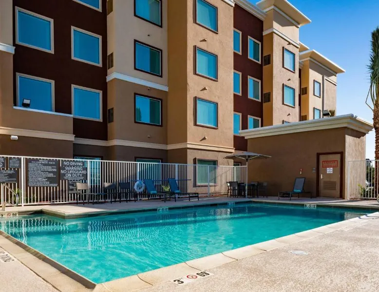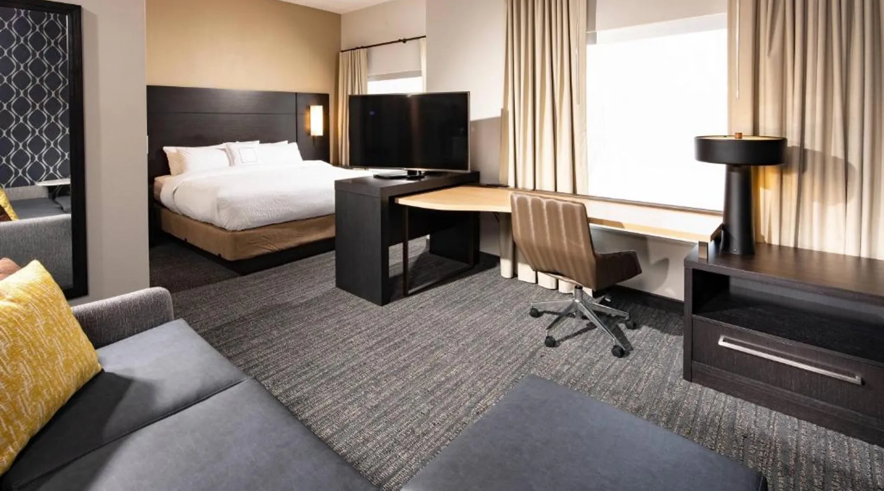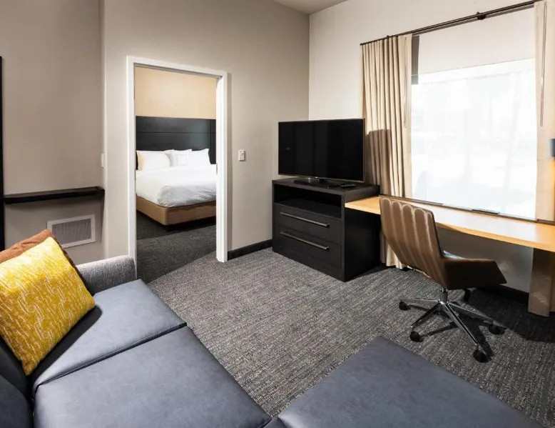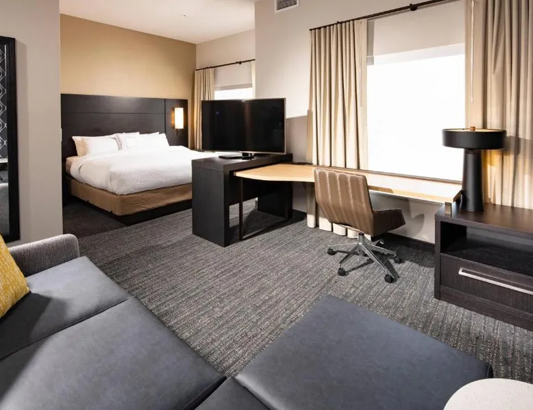 Comfortable Accommodations: Residence Inn Las Vegas South/Henderson in Henderson offers rooms with air-conditioning, private bathrooms, and fully equipped kitchens. Each room includes a work desk, sofa bed, and free WiFi. Exceptional Facilities: Guests can enjoy a fitness center, year-round outdoor swimming pool, and free use of bicycles. Additional amenities include a hot tub, lounge, outdoor fireplace, and barbecue facilities. Delicious Breakfast: A complimentary American buffet breakfast is served daily, featuring warm dishes, fresh pastries, fruits, and juices. Prime Location: Located 9.3 mi from Mandalay Bay Convention Center and Shark Reef Aquarium, the hotel is also close to attractions such as Bellagio Fountains and The Sphere Vegas. This suite is air-conditioned and features a private bathroom and a sofa.