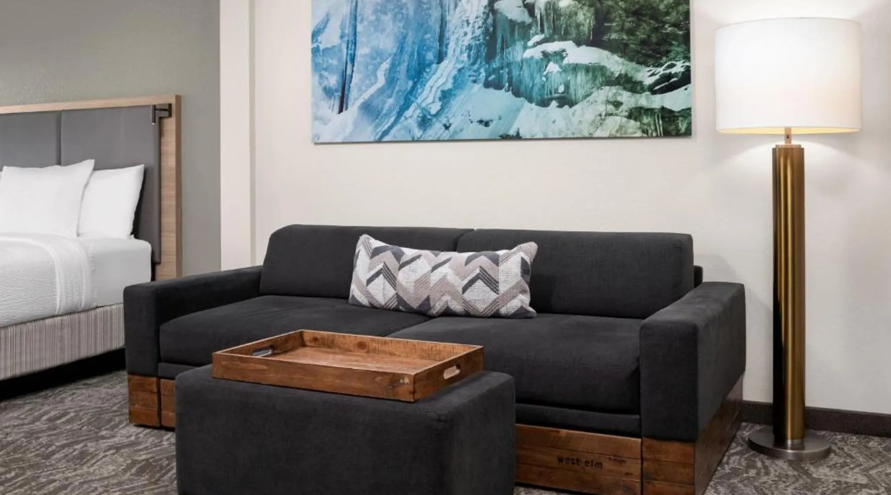 Overlooking the Chena River, the Fairbanks Springhill Suites offers an indoor pool, gym and an on-site restaurant in the heart of the city. Each guest room comes with a kitchenette offering a mini-refrigerator, microwave and wet bar. The rooms are furnished with a work desk, sofa bed and arm-chair. In-room wired Internet is available. SpringHill Suites Fairbanks features an indoor pool with separate children’s area. There is also a gym with cardiovascular equipment and a hot tub for guests’ relaxation. A Suite Seasons Breakfast buffet awaits the guest each morning to start the day. The on-site Lavelle's Bistro restaurant offers a diverse mix of cuisines in the evening. NorthStar Golf Club is 5 miles from this SpringHill hotel and Fairbanks Ice Museum is just one block away. Free on-site parking is available. This air-conditioned suite is consisted of of a flat-screen TV with streaming services and a private bathroom. The unit has 3 beds.
