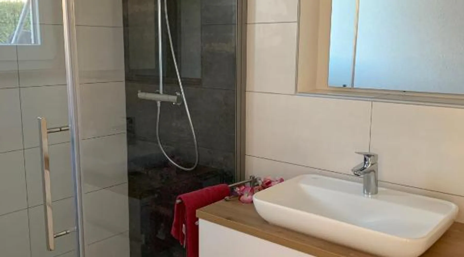 Comfortable Accommodations: Haus Steingrubenweg in Mutlangen offers a spacious apartment with a sun terrace and a garden. Guests enjoy free WiFi, ensuring connectivity during their stay. Modern Amenities: The apartment features a lounge, outdoor fireplace, and a shared kitchen equipped with a dishwasher and microwave. Additional facilities include a minimarket, outdoor seating area, and bicycle parking. Convenient Location: Located 42 mi from Stuttgart Airport, the property provides easy access to hiking trails. Stuttgart Airport is highly rated by guests for its excellent service. This spacious apartment includes 1 living room, 5 separate bedrooms and 2 bathrooms with a bath and free toiletries. Guests will find a stovetop, a refrigerator, a dishwasher and kitchenware in the well-equipped kitchen. The apartment also features a barbecue. Boasting a terrace with garden views, this apartment also offers a washing machine and a flat-screen TV with streaming services. The unit has 8 beds.