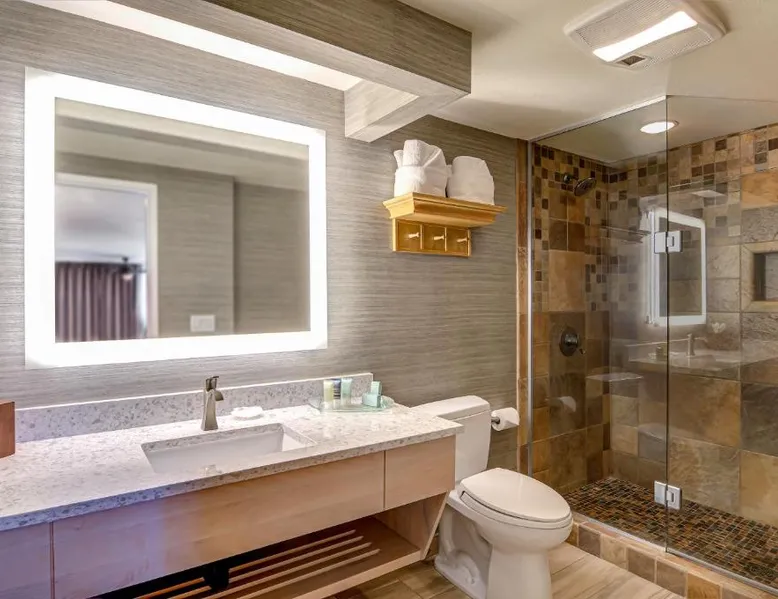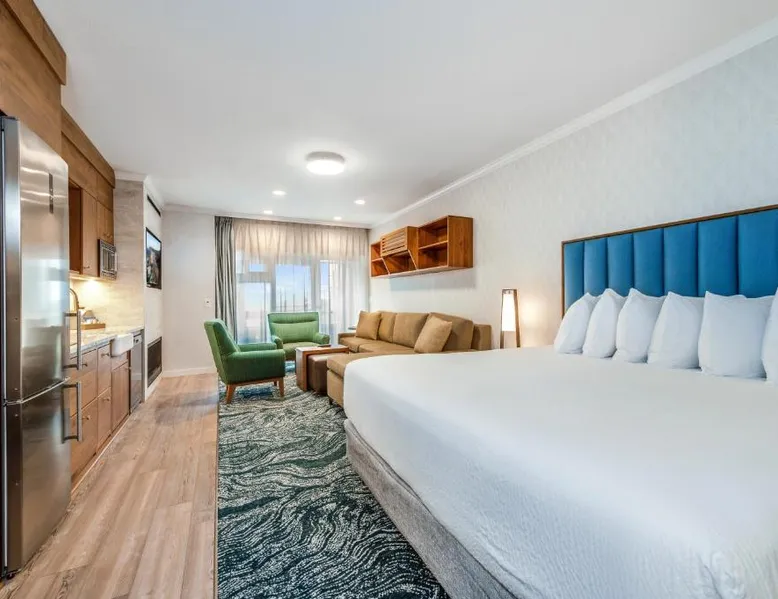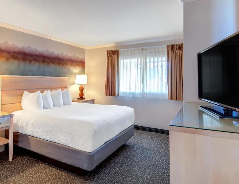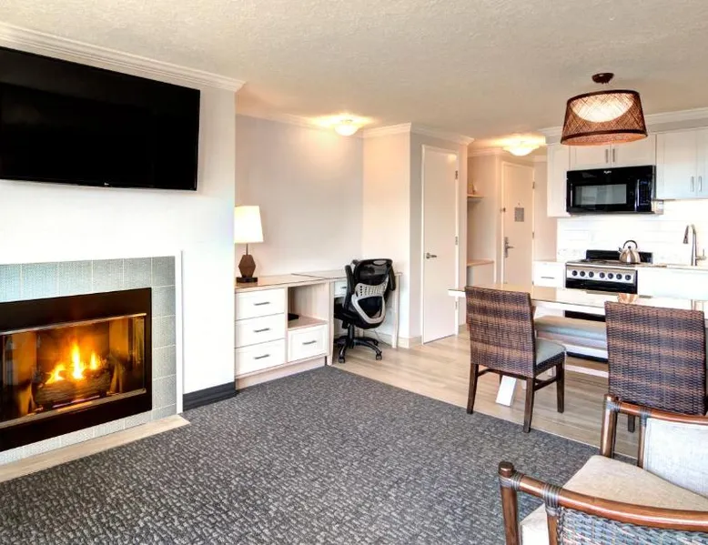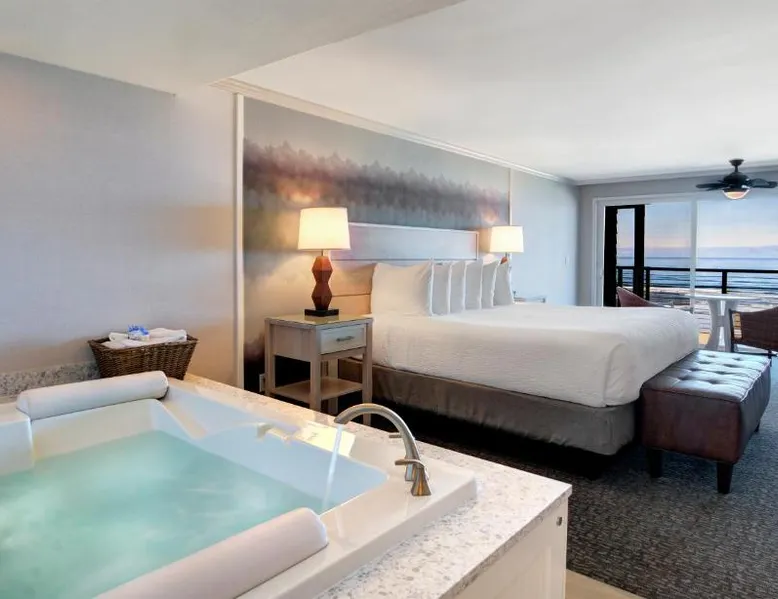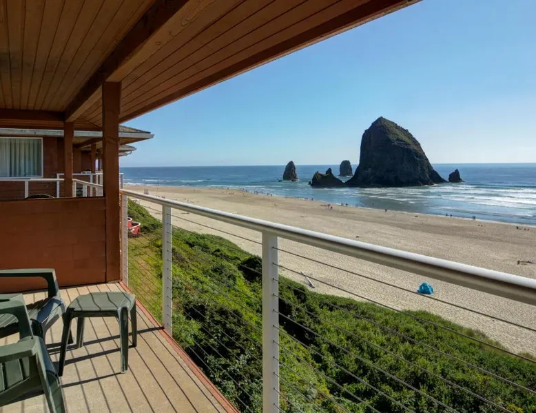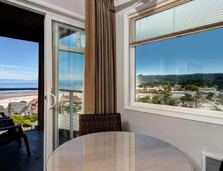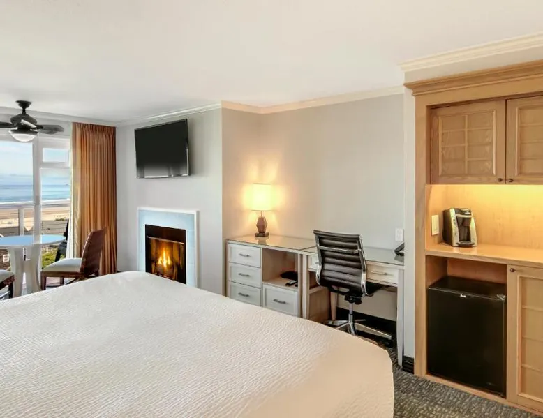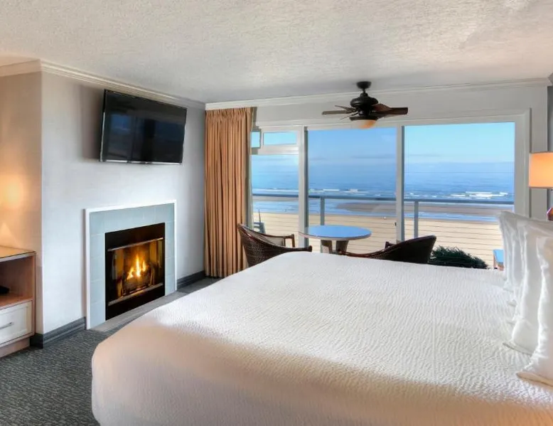 Located directly on the beach with views of Haystack Rock, this Cannon Beach hotel features a spa and wellness center. Many guest rooms include a gas fireplace and free Wi-Fi, and complimentary bicycle rentals are available. All rooms at the Hallmark Resort in Cannon Beach feature a flat-screen cable TV. A microwave, small fridge, and coffee-making facilities are included. Certain rooms include ocean views and a balcony. There are 2 indoor heated saltwater pools, 3 hot tubs and a dry sauna available for guest relaxation at the Cannon Beach Hallmark Resort. A business center and a fitness center are located on site. Guests can enjoy complimentary DVD rentals and free popcorn. Fresh baked cookies are available in the lobby. Therapeutic massage services are available at the on-site day spa Elements by the Sea. Downtown Cannon Beach is less than 10 minutes’ walk from the hotel. Seaside is 15 minutes’ drive away. Tillamook Cheese Factory is 1 hours’ drive from the property. This large pet friendly, luxurious unit is located off-site at the Pacific Suites property with easy beach access. Located two blocks from the main resort, you’ll find it offers the right mix of space and comfort for the entire family. Enjoy the sounds of the ocean while hanging out in the warm living area complete with three TVs, two DVD players, cozy gas fireplace, or step out onto your enclosed private balcony. Cook meals on the two-burner cook top in the Captain's Galley kitchenette after a calming day of beach combing, then retire to the private on-site pool or one of the two king beds for R&R. This 620-square-foot non-view suite has all the amenities you need for a relaxing family getaway, including a soothing jetted tub in the bathroom. (4STJP)