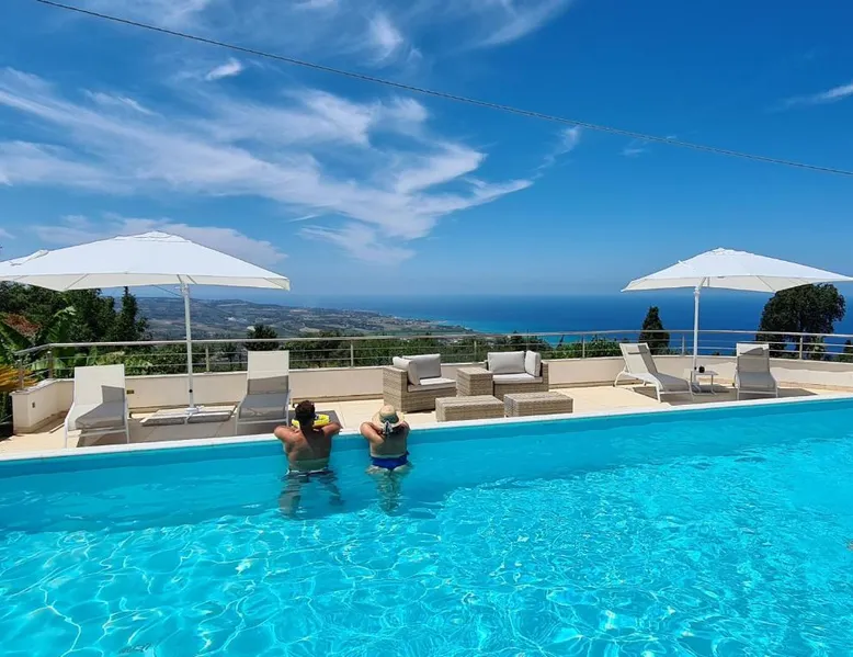 Elegant Accommodations: Villa Zufrò in Vibo Valentia offers a bed and breakfast experience with a swimming pool, sun terrace, and lush garden. Guests enjoy free WiFi, a bar, and an outdoor seating area. Comfortable Amenities: The property features private check-in and check-out, a lounge, and housekeeping services. Additional amenities include a pool bar, barbecue facilities, and free on-site parking. Prime Location: Located 23 mi from Lamezia Terme International Airport, Villa Zufrò is near attractions such as Murat Castle (4.3 mi) and Tropea Marina (16 mi). Guests appreciate the scenic views and excellent breakfast. The pool with a view is a top feature of this twin/double room. The spacious twin/double room provides air conditioning, a washing machine, a terrace with sea views as well as a private bathroom featuring a shower. The unit offers 3 beds.