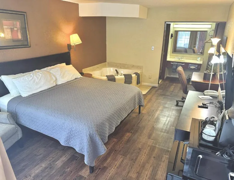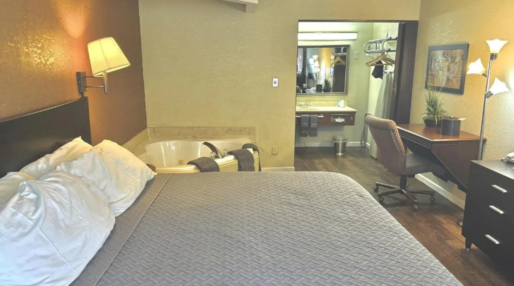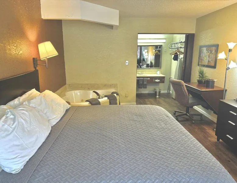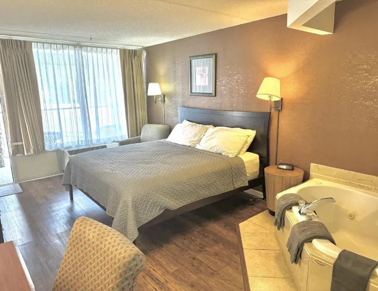Comfortable Accommodations: Eureka Springs Heritage Motel in Eureka Springs offers air-conditioned rooms with private bathrooms, city views, and modern amenities including free WiFi, tea and coffee makers, and work desks. Relaxing Facilities: Guests can enjoy a swimming pool with a view, outdoor fireplace, and outdoor seating areas. Additional features include a lounge, picnic area, and free on-site private parking. Convenient Location: Located 1.6 mi from Eureka Springs Historic District and 2.5 mi from The Great Passion Play, the hotel is 39 mi from Boone County Airport. Nearby attractions include Onyx Cave Park at 6.2 mi. Exceptional Service: Highly rated for its attentive staff and excellent service support, the property ensures a pleasant and comfortable stay for all guests. Featuring free toiletries, this double room includes a private bathroom with a bath, a shower and a hairdryer. The air-conditioned double room features a flat-screen TV, a private entrance, a tea and coffee maker, parquet floors as well as city views. The unit has 1 bed.