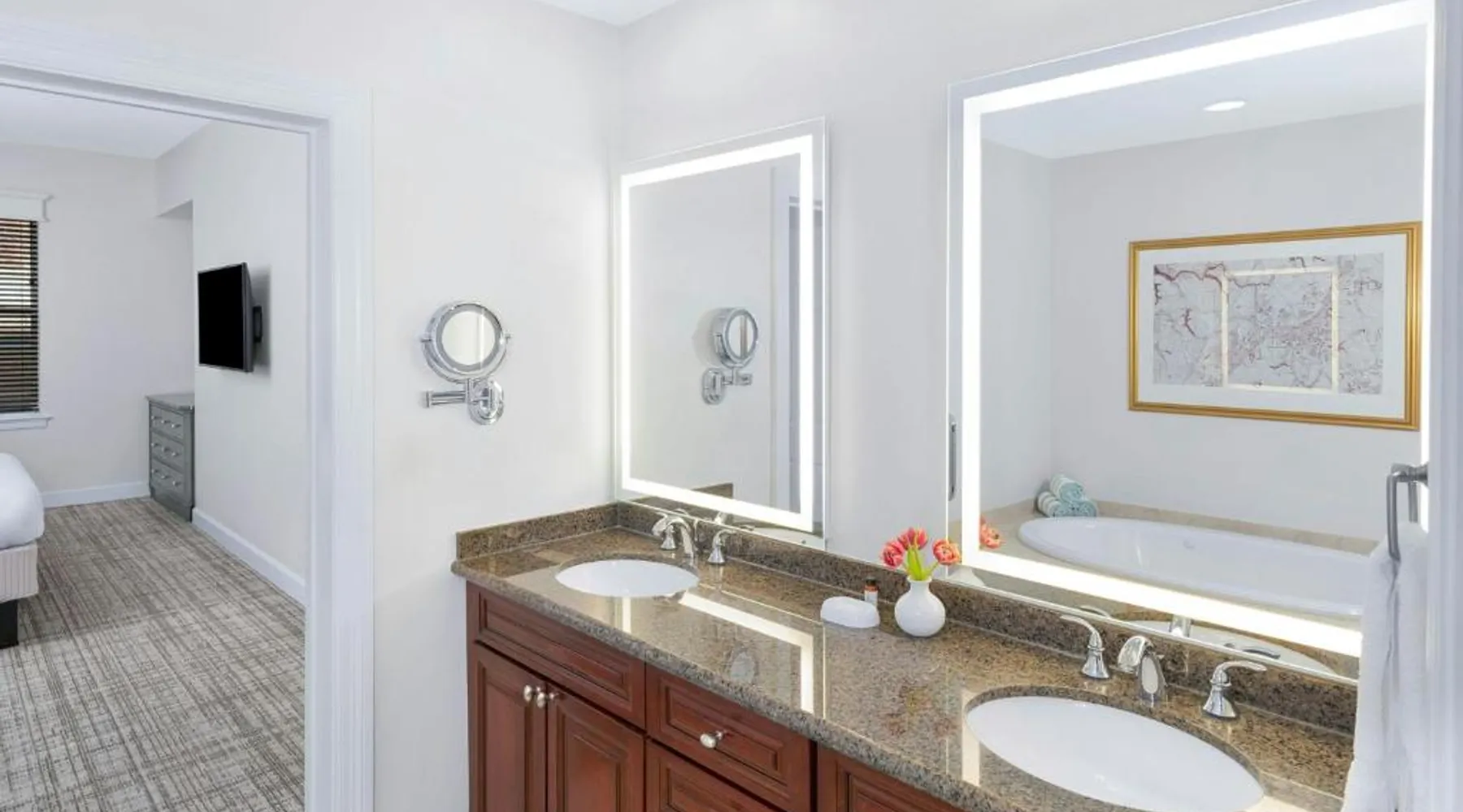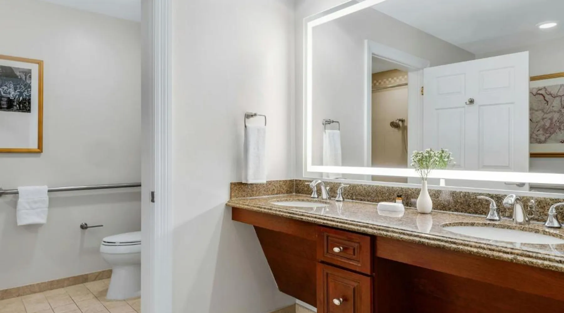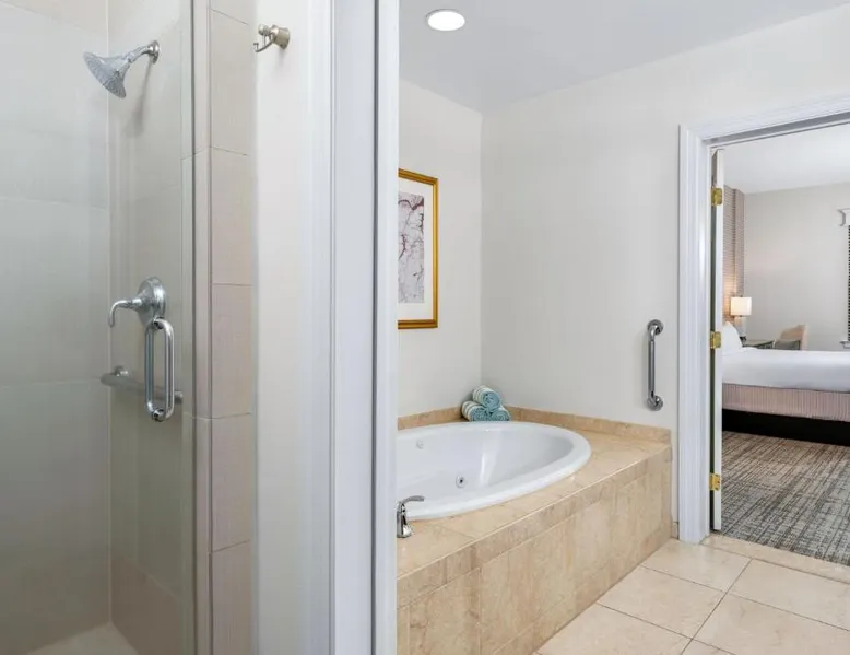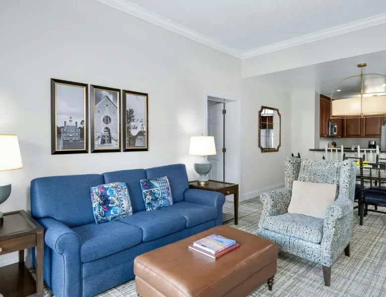 Located 7 miles from Colonial Williamsburg, this hotel offers 3 swimming pools, a hot tub and a 54-hole golf course. Villas have a fully-equipped kitchen. The Marriott's Manor Club at Ford's Colony offers spacious villas with a separate living and dining area and a fireplace. The villas also include a sofa bed. Guests can enjoy to-go meals, snacks and Starbucks coffee at The Marketplace Express or lunch and dinner at the on site Bistro 1699. The Marriott's Manor Club at Ford's Colony is 10 miles from the historic Jamestown Settlement. Guests can make meals in the kitchen that has a stovetop, a dishwasher, kitchenware and an oven. The air-conditioned villa features a flat-screen TV, a washing machine, a tea and coffee maker and a safe deposit box. The unit has 2 beds.