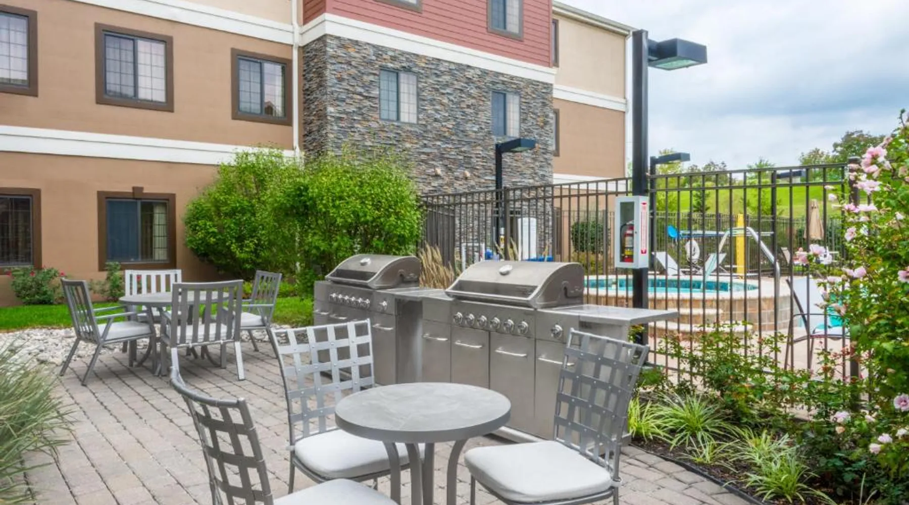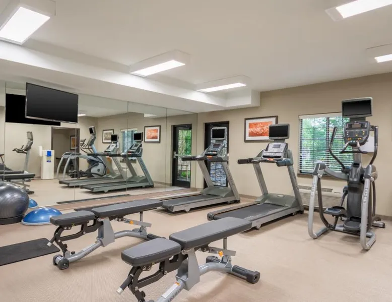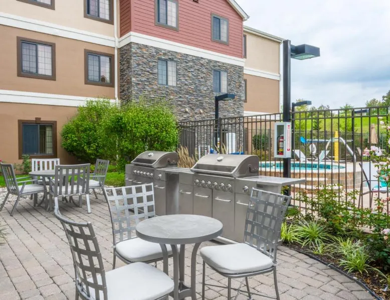 Comfortable Accommodations: Staybridge Suites - Kansas City-Independence by IHG in Independence offers comfortable rooms with air-conditioning, private bathrooms, and fully equipped kitchens. Each room includes a sofa bed, work desk, and free WiFi. Leisure Facilities: Guests can enjoy a seasonal outdoor swimming pool and a beautiful garden. The property features an outdoor fireplace, lounge, and picnic area, providing relaxing spaces. Convenient Amenities: The hotel offers a minimarket, electric vehicle charging station, and free on-site private parking. Additional amenities include a 24-hour front desk, concierge service, and a lounge. Nearby Attractions: Located 34 mi from Kansas City International Airport, the hotel is close to attractions such as Kauffman Stadium (8.7 mi) and the National World War I Museum (14 mi).