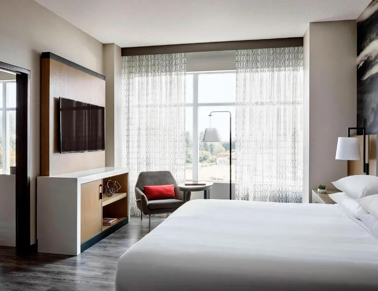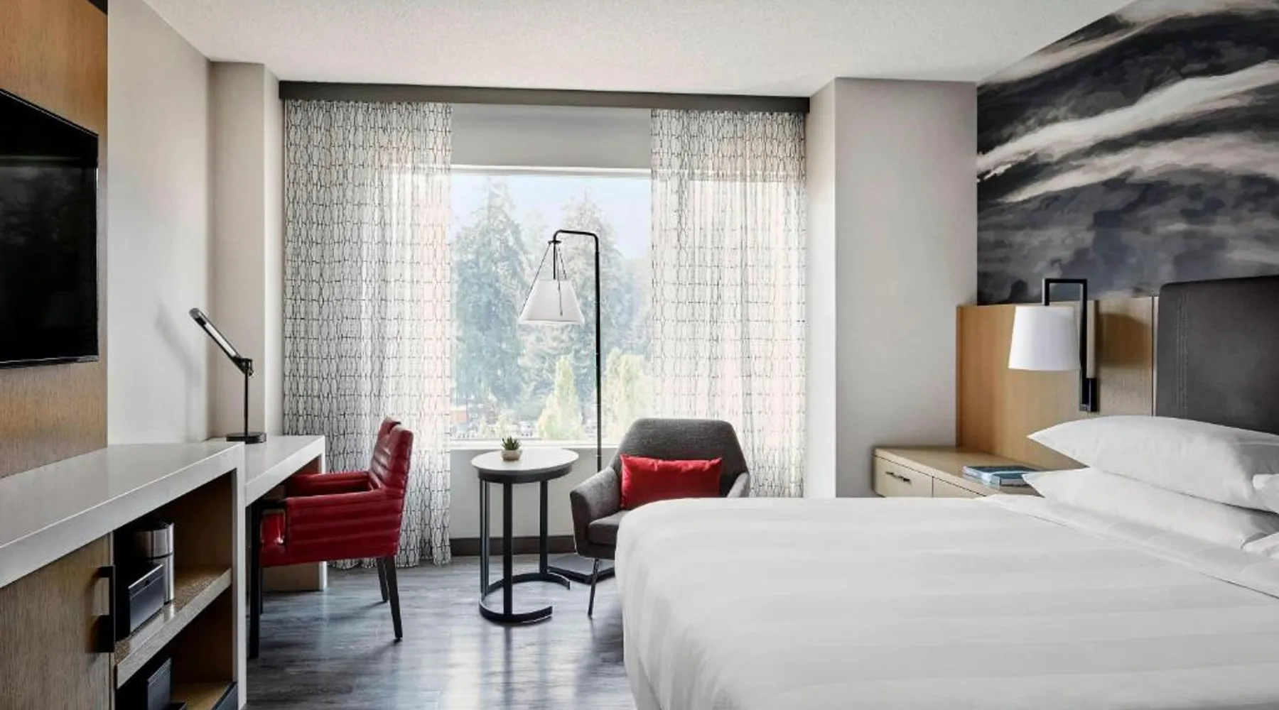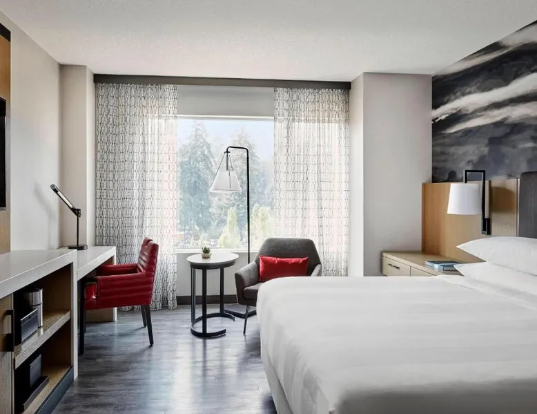 This hotel is located in the Redmond Town Center open air mall. It offers an outdoor pool and free Wi-Fi in the public areas. Guest rooms at Seattle Marriott Redmond include a 55" flat-screen TV with HBO film channels. A coffee maker, modular furniture, and a work desk are also available. Walk-in showers are featured in the private bathrooms. Seattle Marriott Redmond provides a gym. Guests have access to hotel business center and a cash machine is located on the property. Marymoor Park is 1 mile away from this hotel. The University of Washington is 12 miles away. Providing free toiletries, this double room includes a private bathroom with a shower and a hairdryer. The spacious air-conditioned double room provides a flat-screen TV with streaming services, a tea and coffee maker, a seating area, a wardrobe as well as city views. The unit offers 2 beds.