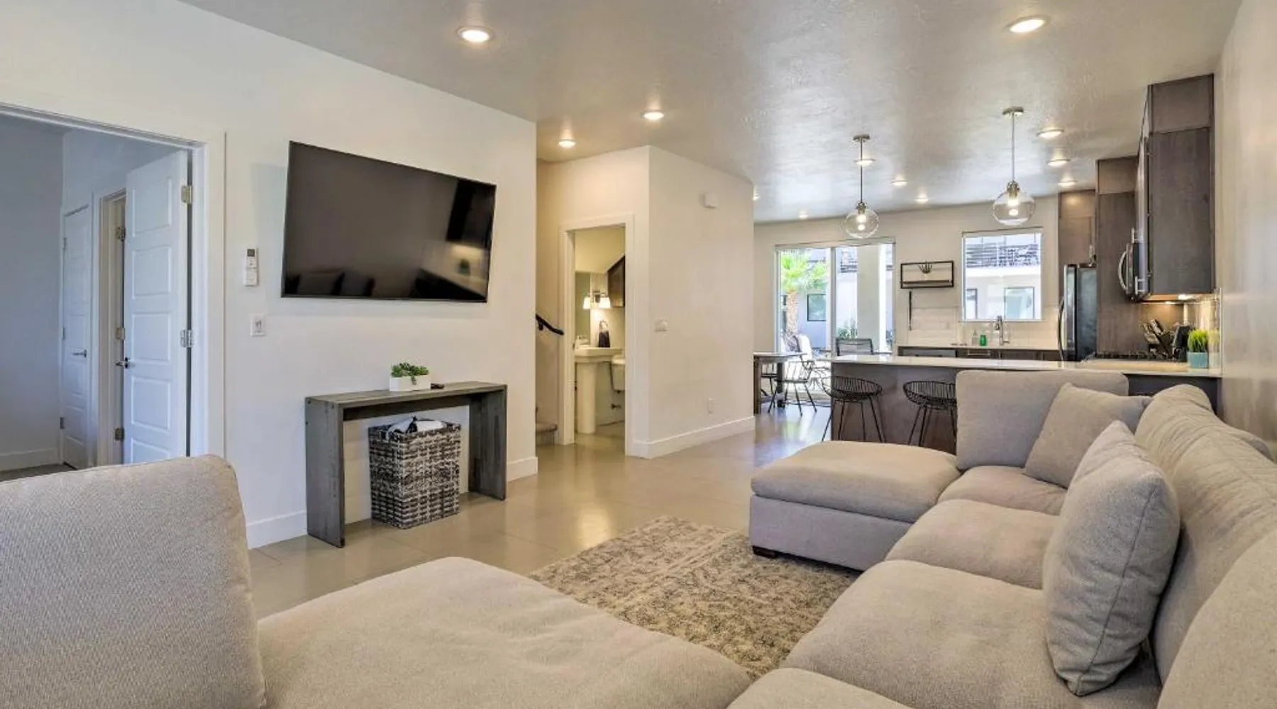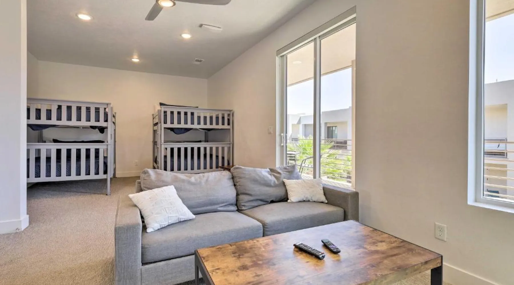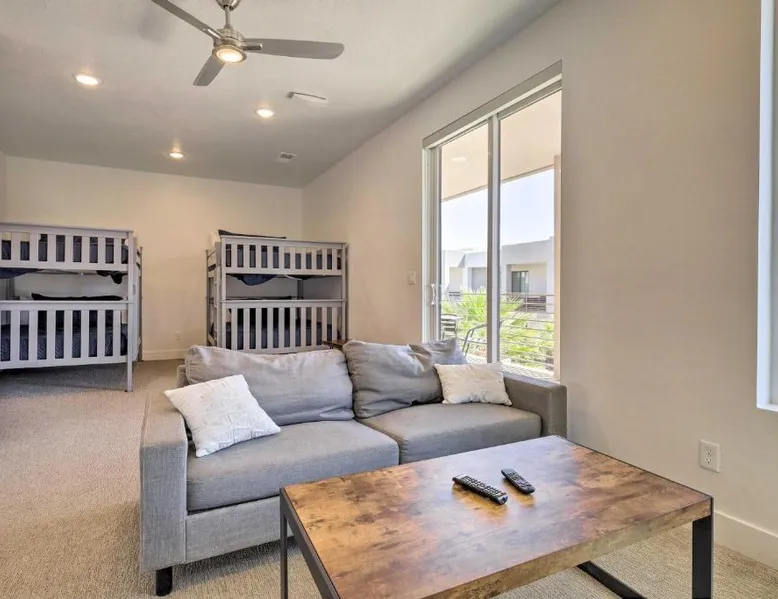 Spacious Accommodations: Sunny Resort Townhome and Balcony and Pool Access in St. George offers a spacious holiday home with four bedrooms and four bathrooms. The ground-floor unit features a private entrance and a fully equipped kitchen with modern appliances. Modern Amenities: Guests enjoy free WiFi, air-conditioning, and a hot tub. The property includes a washing machine, dishwasher, microwave, and TV. Additional amenities include a hairdryer, coffee machine, and free toiletries. Convenient Location: Located 17 mi from St. George Regional Airport, the holiday home is a short walk from Coral Canyon Golf Club. Nearby attractions include St George Temple and Brigham Young Winter Home Historical Site, each 5.6 mi away. Guest Favorites: Highly rated for its family-friendly environment, the property is praised for its spaciousness and excellent facilities. The spacious holiday home features 4 bedrooms and 4 bathrooms with a shower and free toiletries. Meals can be prepared in the well-fitted kitchen, which comes with a stovetop, a refrigerator, a dishwasher and kitchenware. The holiday home offers air conditioning, a private entrance, a coffee machine, a wardrobe and a TV. The unit offers 8 beds.