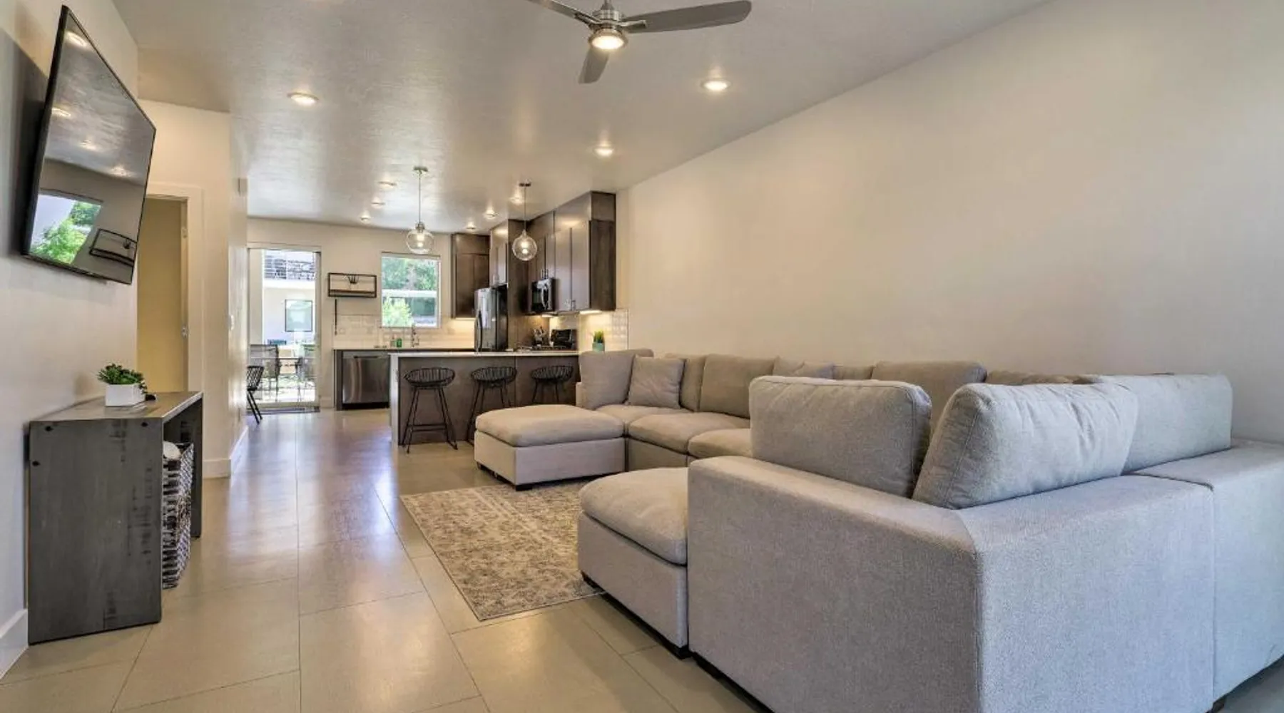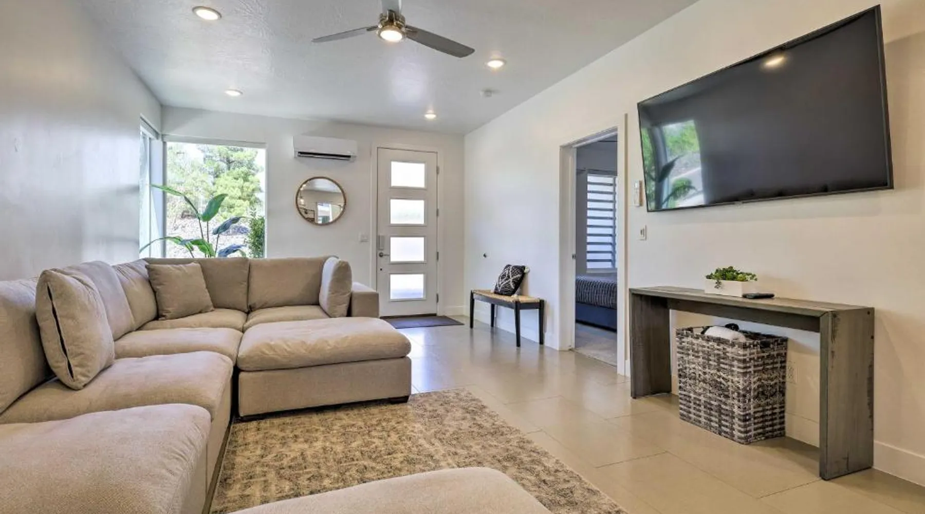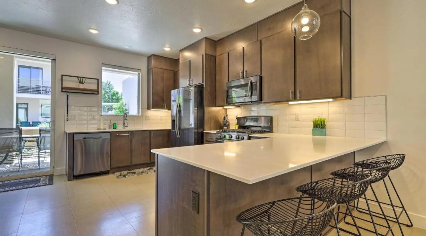 Spacious Accommodations: Sunny Resort Townhome and Balcony and Pool Access in St. George offers a spacious holiday home with four bedrooms and four bathrooms. The ground-floor unit features a private entrance and a fully equipped kitchen with modern appliances. Modern Amenities: Guests enjoy free WiFi, air-conditioning, and a hot tub. The property includes a washing machine, dishwasher, microwave, and TV. Additional amenities include a hairdryer, coffee machine, and free toiletries. Convenient Location: Located 17 mi from St. George Regional Airport, the holiday home is a short walk from Coral Canyon Golf Club. Nearby attractions include St George Temple and Brigham Young Winter Home Historical Site, each 5.6 mi away. Guest Favorites: Highly rated for its family-friendly environment, the property is praised for its spaciousness and excellent facilities. The spacious holiday home features 4 bedrooms and 4 bathrooms with a shower and free toiletries. Meals can be prepared in the well-fitted kitchen, which comes with a stovetop, a refrigerator, a dishwasher and kitchenware. The holiday home offers air conditioning, a private entrance, a coffee machine, a wardrobe and a TV. The unit offers 8 beds.
