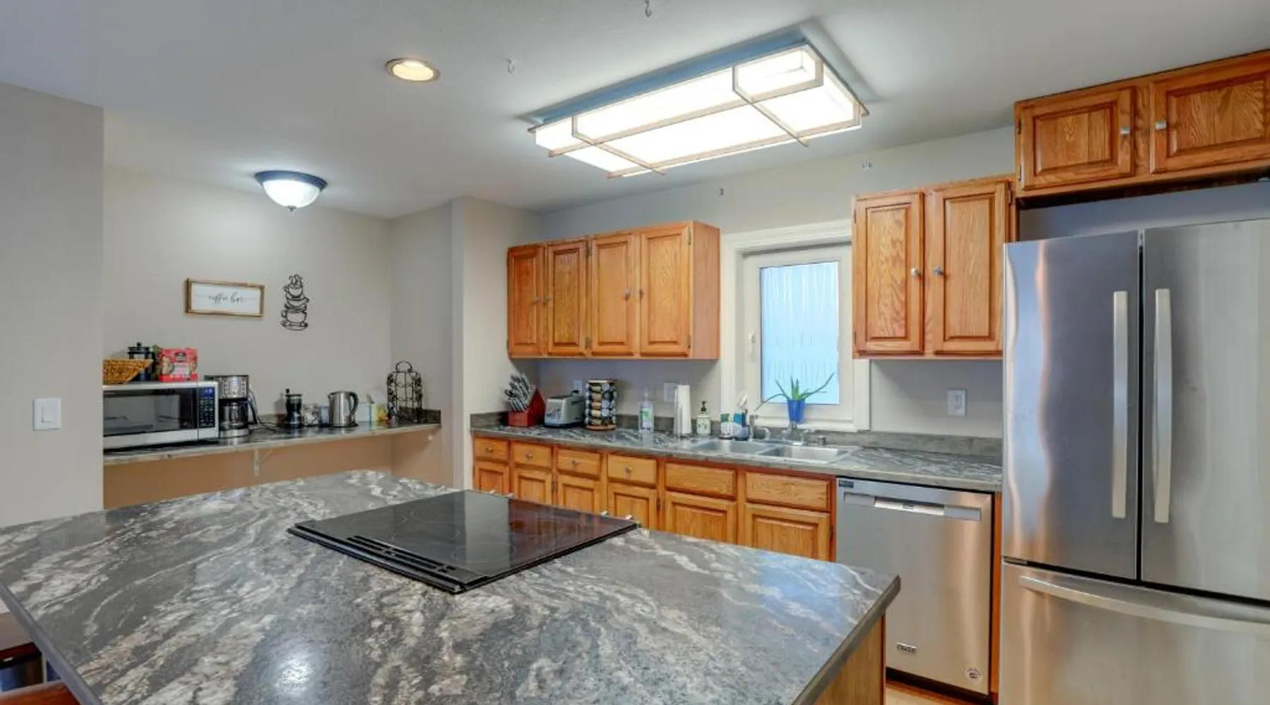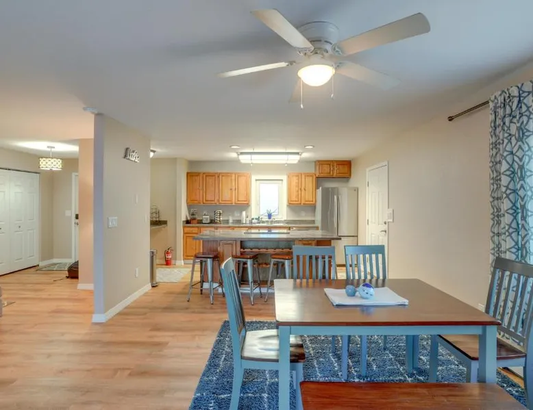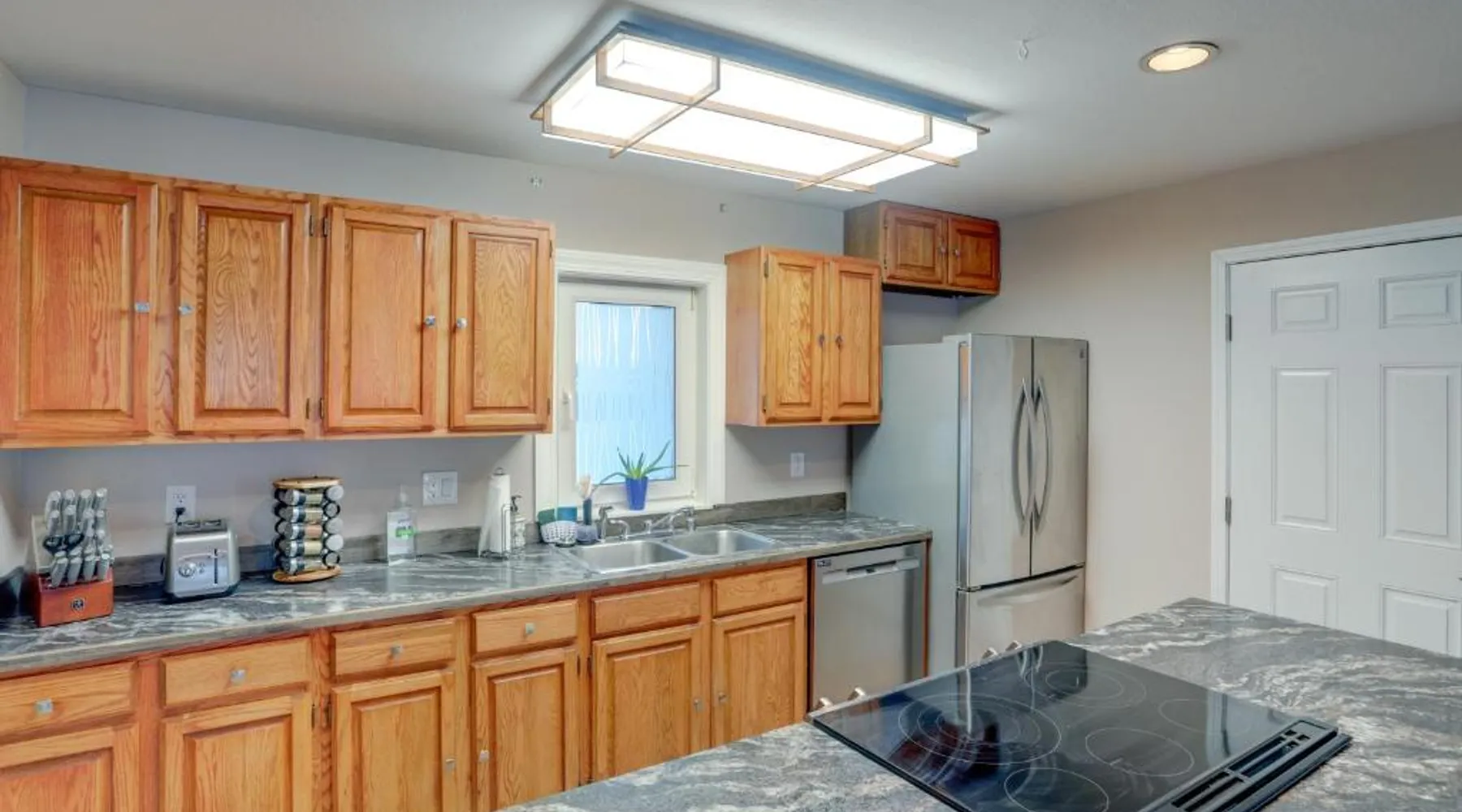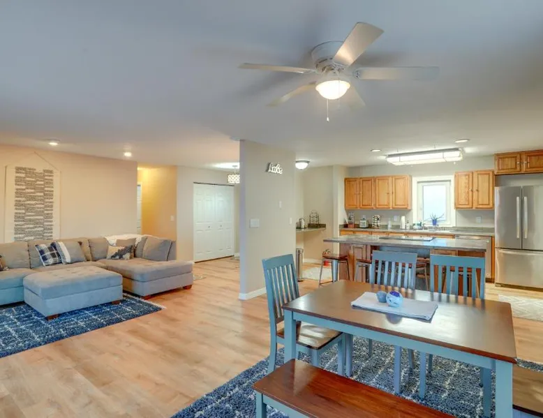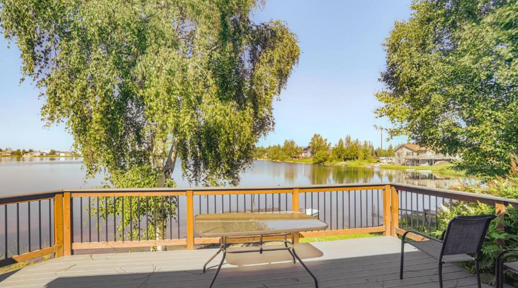 Beachfront Location: Lakefront Fairbanks Home with Private Beach! in Fairbanks offers direct beachfront access and stunning lake views. Guests can relax on the private beach or enjoy the outdoor dining area. Comfortable Accommodations: The holiday home features two bedrooms and two bathrooms, ensuring ample space for all visitors. A fully equipped kitchen includes a coffee machine, dishwasher, and microwave. Modern Amenities: Free WiFi is available throughout the property. Additional amenities include a barbecue, hairdryer, TV, and paid on-site parking. Local Attractions: Fairbanks International Airport is 4.3 mi away, and the University of Alaska Fairbanks lies 5.6 mi from the property. Boating opportunities enhance the surrounding area. Featuring a private entrance, this holiday home consists of a kitchen, 2 bedrooms and 2 bathrooms with a bath or a shower and a hairdryer. Guests will find a stovetop, a refrigerator, a dishwasher and kitchenware in the well-fitted kitchen. The holiday home also provides guests with a barbecue. This holiday home features a coffee machine, a wardrobe, a TV and lake views. The unit offers 3 beds.