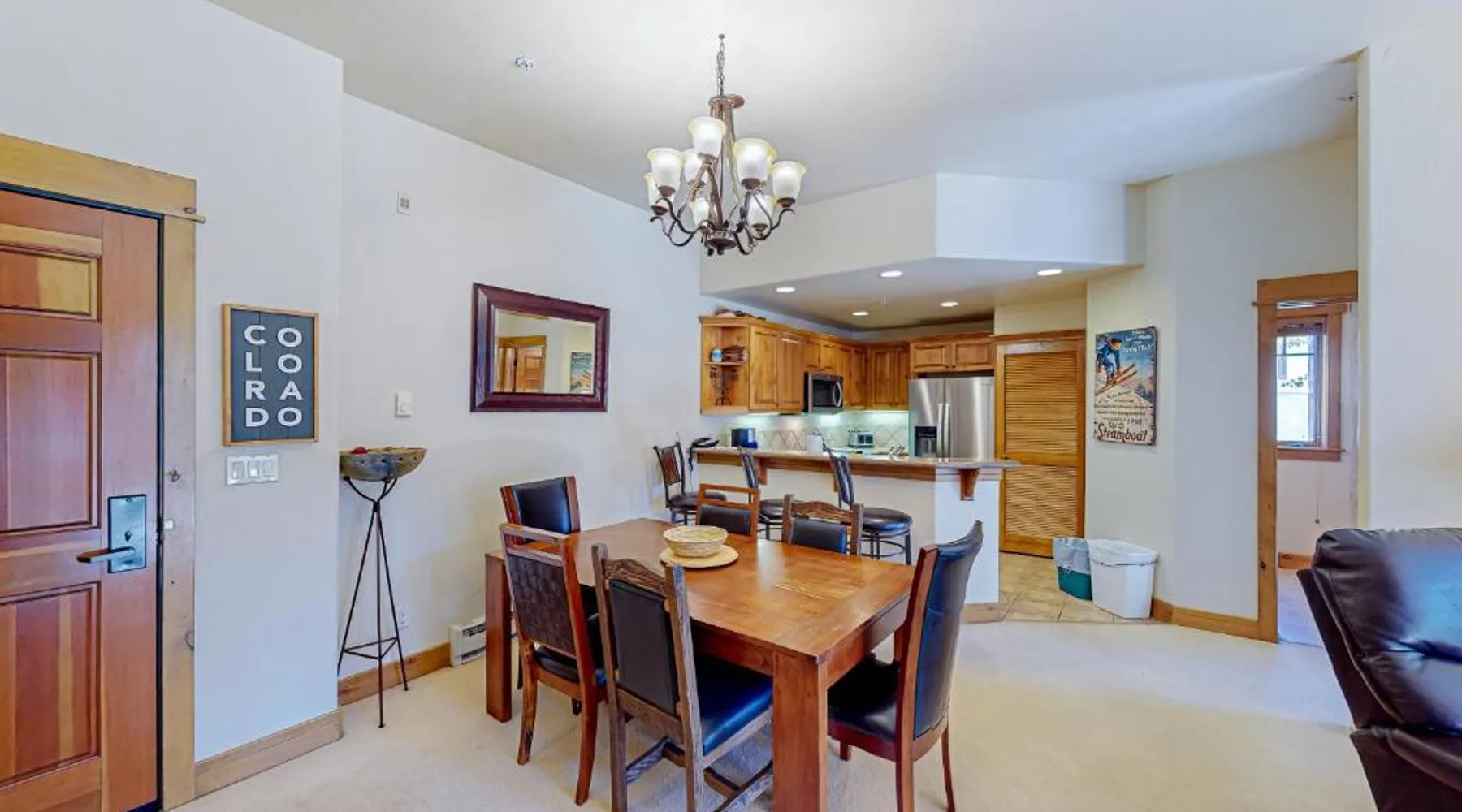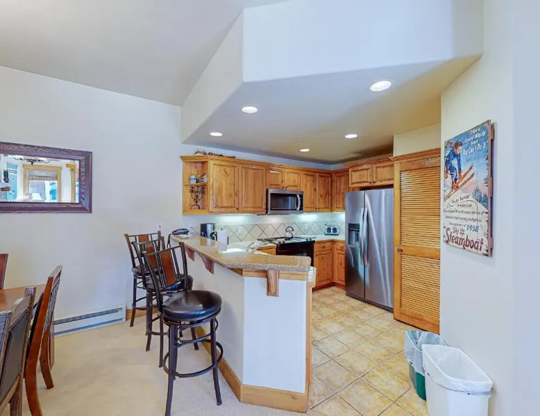 Comfortable Accommodations: EagleRidge Lodge and Townhomes in Steamboat Springs offers holiday homes with private bathrooms, fully equipped kitchens, and modern amenities. Each unit features a terrace or balcony with scenic views. Leisure Facilities: Guests can enjoy spa facilities, an outdoor swimming pool, and a hot tub. Additional amenities include an outdoor fireplace, steam room, fitness room, and children’s playground. Dining and Services: The on-site restaurant serves a variety of cuisines, complemented by a bar. Private dining areas and outdoor seating provide comfortable spaces for relaxation. Activities and Attractions: Skiing and cycling are popular activities nearby. Yampa Valley Regional Airport is 25 mi away, while Yampa River Botanic Park lies 1.9 mi from the property. Located in the lodge, this studio includes free Wi-Fi, a fully-equipped kitchenette, cable TV with DVD player and an private bathroom with hairdryer.