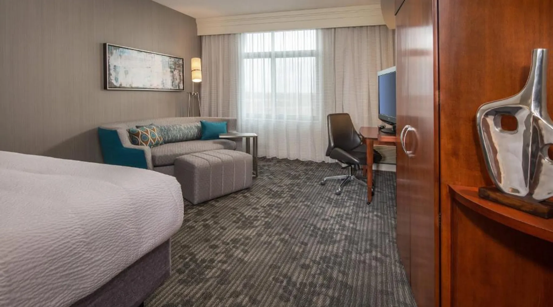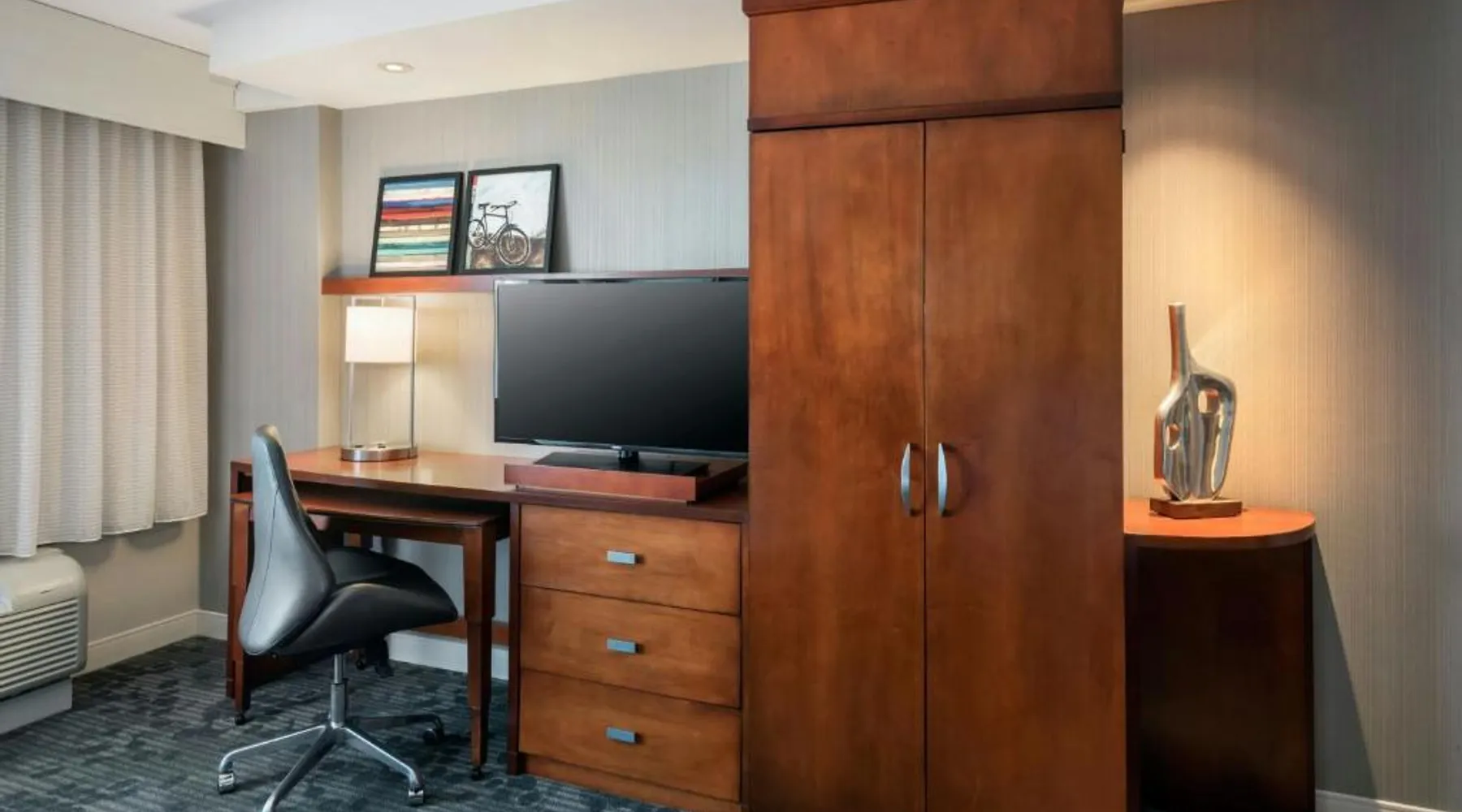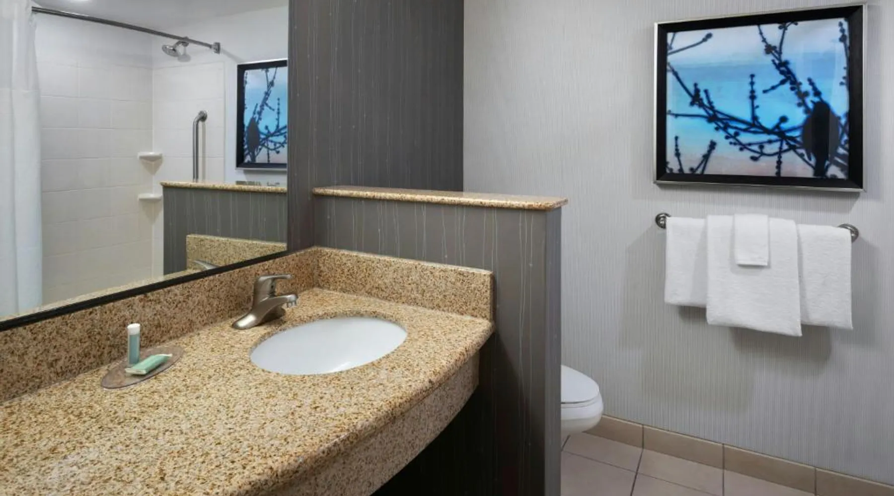 This hotel is 3 miles from the Gaithersburg town center. Rooms are fitted with modern furnishings and include cable TV. Courtyard by Marriott Gaithersburg Washingtonian Center offers room service for in-room dining. Guests can relax in the seating area provided in some rooms. Guests can enjoy a workout in the hotel’s well-equipped gym. Free Wi-Fi access is available throughout the hotel. Gaithersburg Washingtonian Center’s onsite restaurant, The Bistro, is open for breakfast and dinner serving a variety of American dishes daily. Free public parking is provided by the hotel. Courtyard by Marriott Gaithersburg Washingtonian Center is a 30-minute drive from Washington Dulles Airport. Providing free toiletries, this double room includes a private bathroom with a bath and a hairdryer. The spacious double room provides air conditioning, a tea and coffee maker, a seating area, a wardrobe, as well as a flat-screen TV with cable channels. The unit offers 2 beds.
