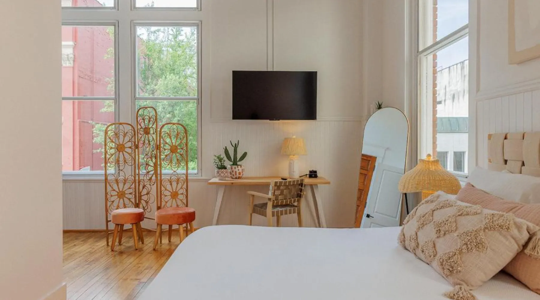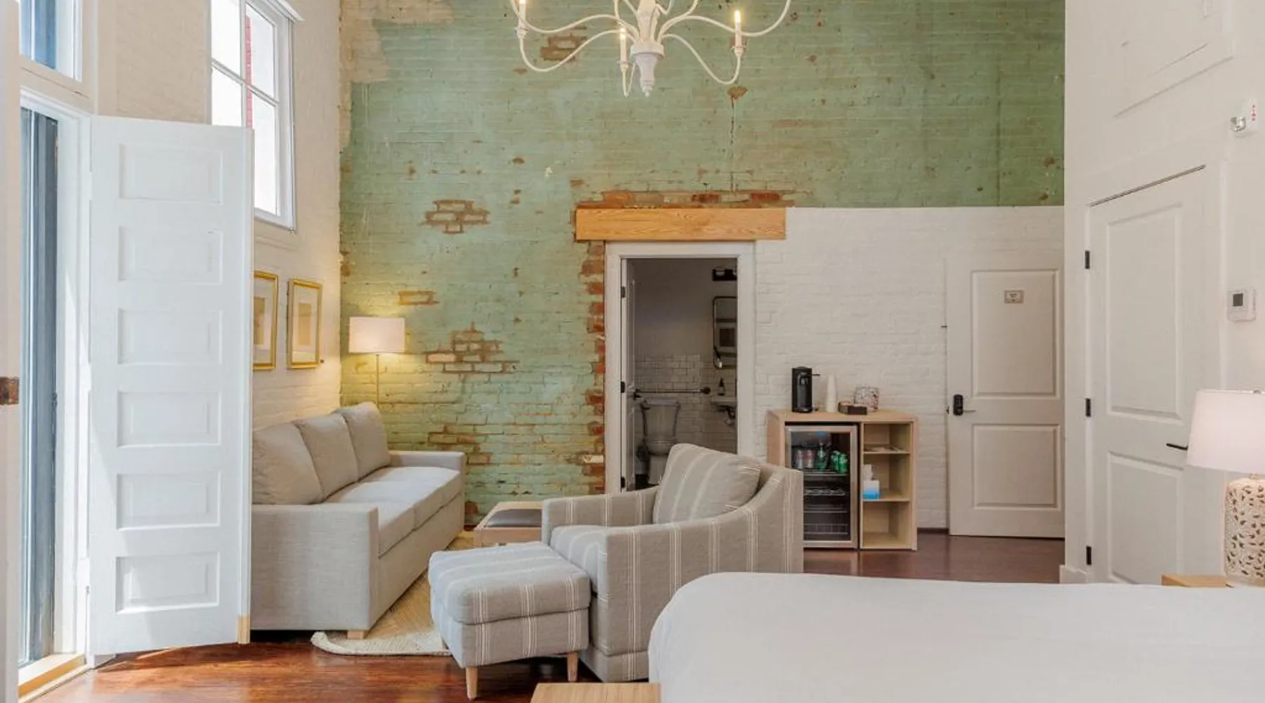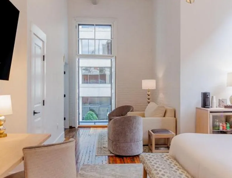 Comfortable Accommodations: Fire Station One Boutique Hotel in Roanoke offers recently renovated rooms with air-conditioning, private bathrooms, and parquet floors. Each room includes a private entrance, free toiletries, and a work desk. Exceptional Facilities: Guests enjoy a restaurant, bar, and free WiFi. Additional amenities include a dining table, sofa bed, and wardrobe. Private check-in and check-out, a elevator, and housekeeping service ensure a comfortable stay. Prime Location: Located 5 mi from Roanoke Airport, the hotel is a short walk from the Science Museum of Western Virginia and 0.8 mi from the Civic Center. Nearby attractions include Mill Mountain Zoo (3.7 mi) and the National D Day Memorial (29 mi). Highly rated by guests. Boasting a private entrance, this air-conditioned suite includes 1 living room, 1 separate bedroom and 1 bathroom with a bath and a shower. The suite has parquet floors, a seating area with a flat-screen TV, a coffee machine, a wardrobe, as well as a sofa. The unit has 2 beds.