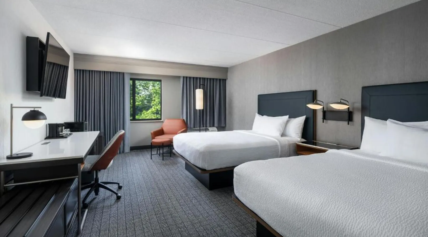 Comfortable Accommodations: Courtyard Cleveland Beachwood in Beachwood offers comfortable rooms with air-conditioning, private bathrooms, and free WiFi. Each room includes a work desk, sofa bed, and TV, ensuring a pleasant stay. Dining and Leisure: The family-friendly restaurant serves American cuisine for dinner and cocktails. Guests can also enjoy free use of bicycles and a fitness center. Additional amenities include an outdoor fireplace, fitness room, and free on-site parking. Convenient Location: Located 2.4 mi from Canterbury Golf Club and 4.3 mi from Beachwood Place Mall, the hotel is near attractions such as Malcolm Brown Gallery and Cleveland Cinemas. Free WiFi is available throughout the property. This double room provides a TV with cable channels. The unit offers 2 beds.
