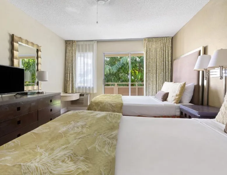 Located on the scenic Royal Coconut Coast, just steps from Waipouli Beach, this hotel offers 3 outdoor pools with hot tubs. Guest suites provide fully-equipped kitchens. A cable TV with DVD/Blu-Ray player is featured in each suite at Plantation Hale Suites. A terrace or balcony is included. Shuffleboard is available at Hale Suites Plantation. BBQ facilities are located on site. Reservations for water sports and activities can be arranged at the front desk. The property is a short walk to the Coconut Plantation Market Place which offers a variety of shops and family-style restaurants. Wailua Golf Course is 6 minutes' drive away. The kitchen has a refrigerator, a microwave and a tea and coffee maker. The unit has 2 beds.