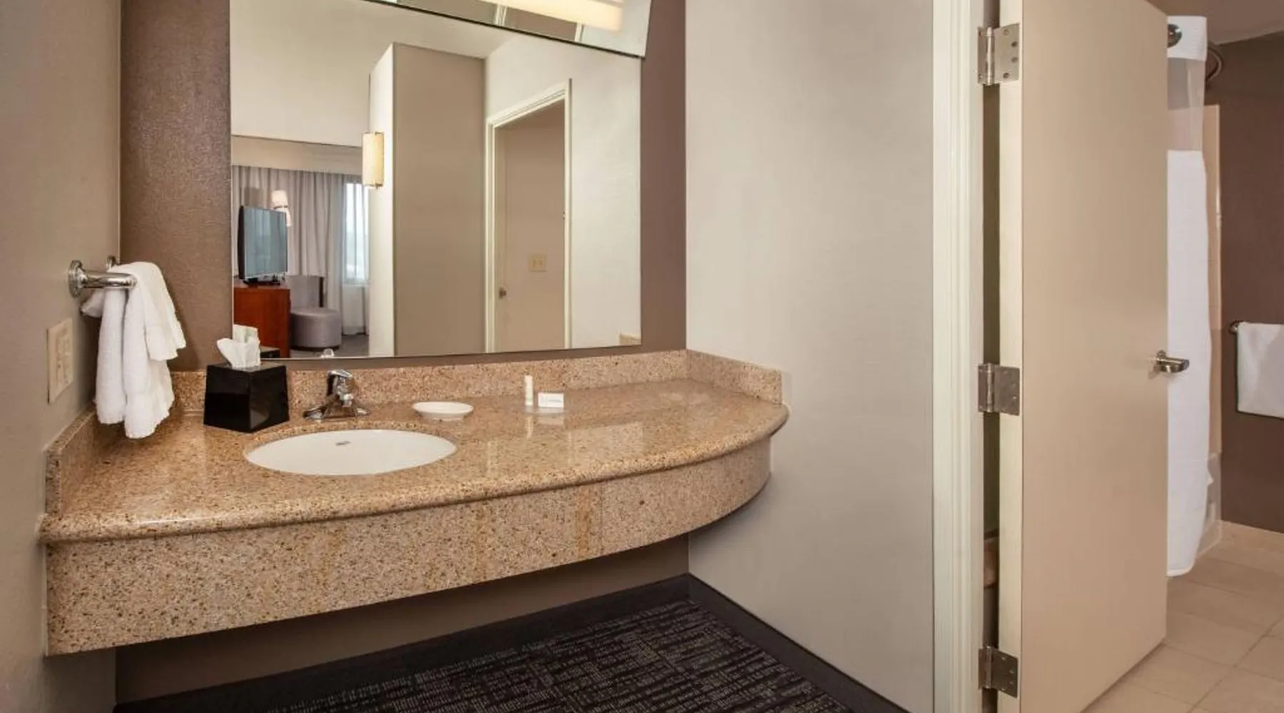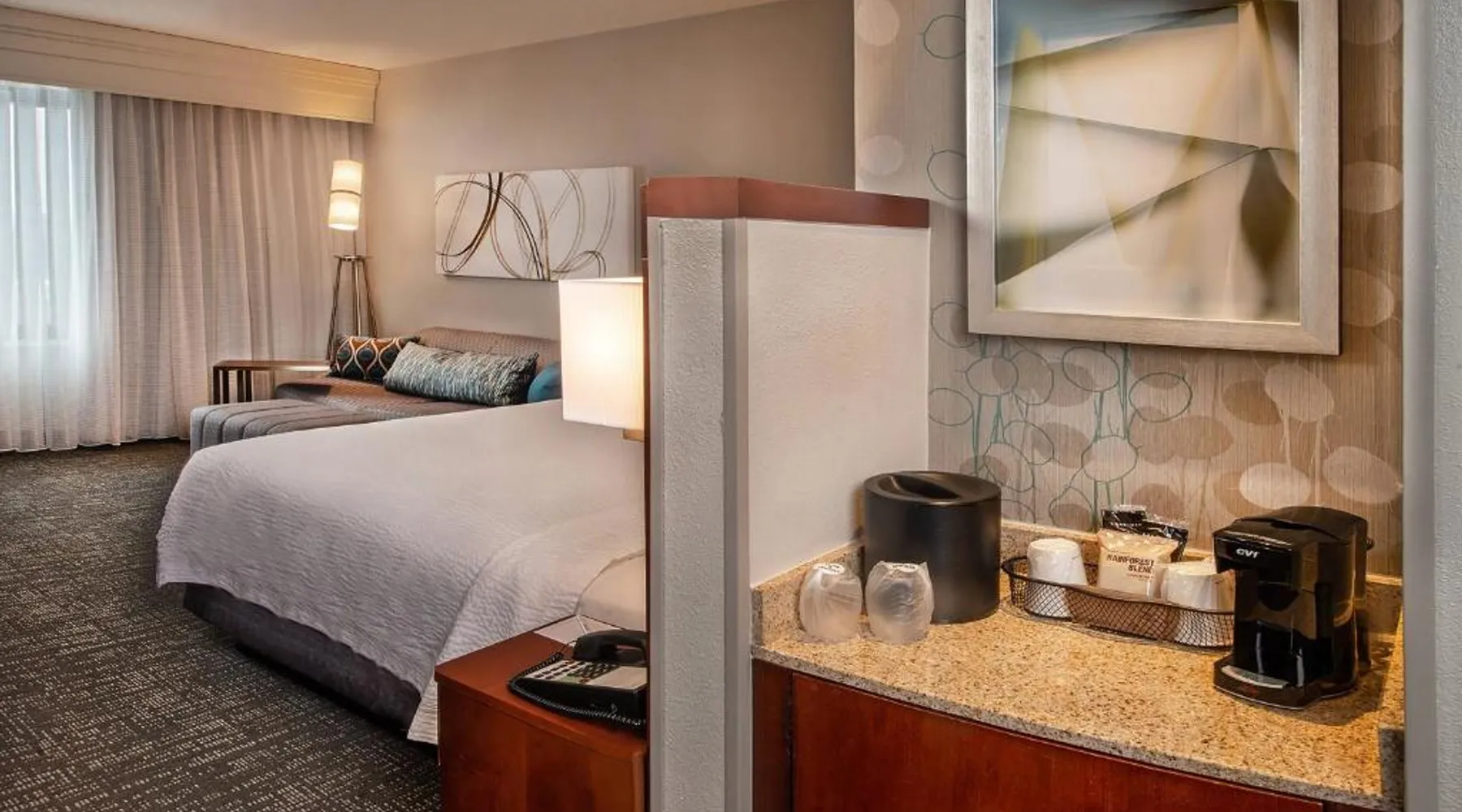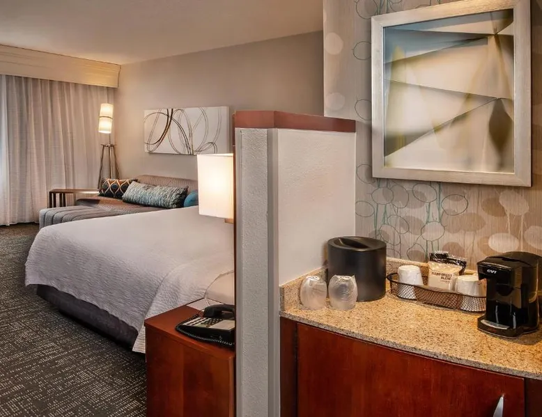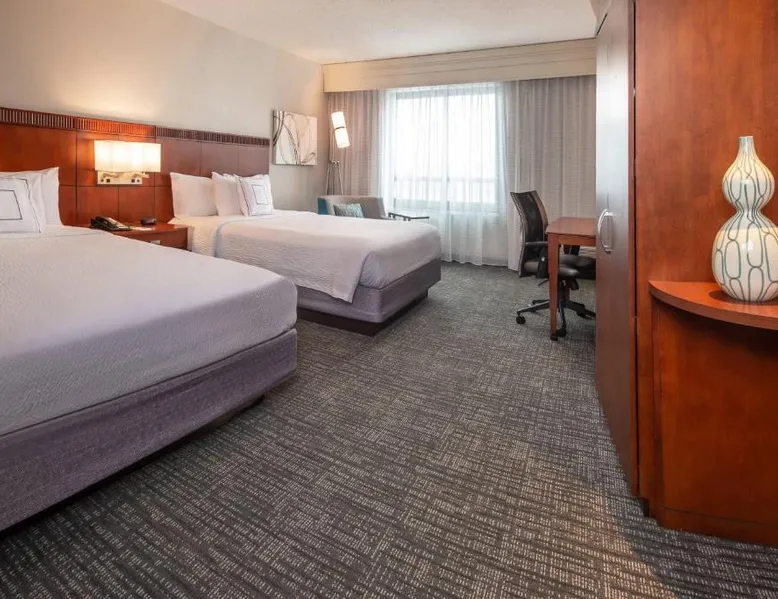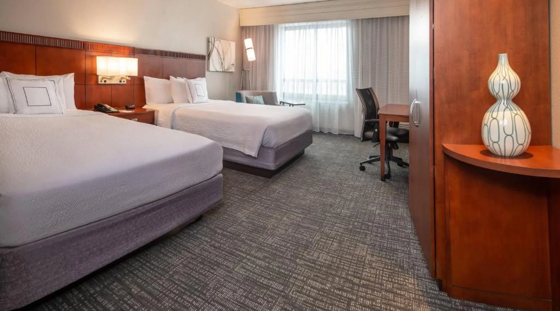 Courtyard Dunn Loring Fairfax is conveniently located just 1476 feet from Dunn Loring-Merrifield Metro Station. It provides spacious accommodations with cable TV and a mini-refrigerator. Each room is air conditioned and includes tea and coffee making facilities. Free Wi-Fi access is available in every room. Guests can enjoy a workout in the fitness center offered by Courtyard Dunn Loring Fairfax. On-site parking is provided by the hotel at a surcharge. Meeting facilities are also available on-site. The Bistro serves a breakfast each morning and American cuisine for dinner. In the evening the bar offers cocktail and specialty drinks, including Starbucks coffee. Offering free toiletries, this double room includes a private bathroom with a bath or a shower and a hairdryer. The spacious double room offers air conditioning, a tea and coffee maker, a seating area, a wardrobe and a flat-screen TV with cable channels. The unit has 2 beds.