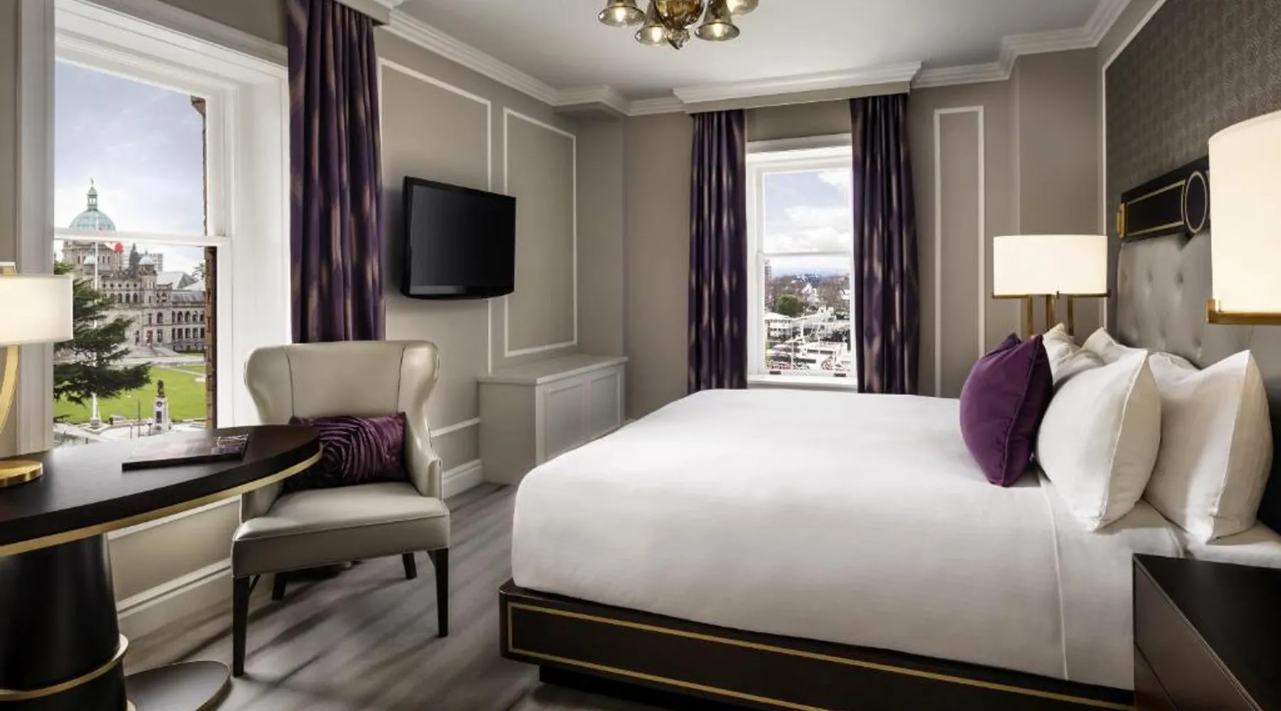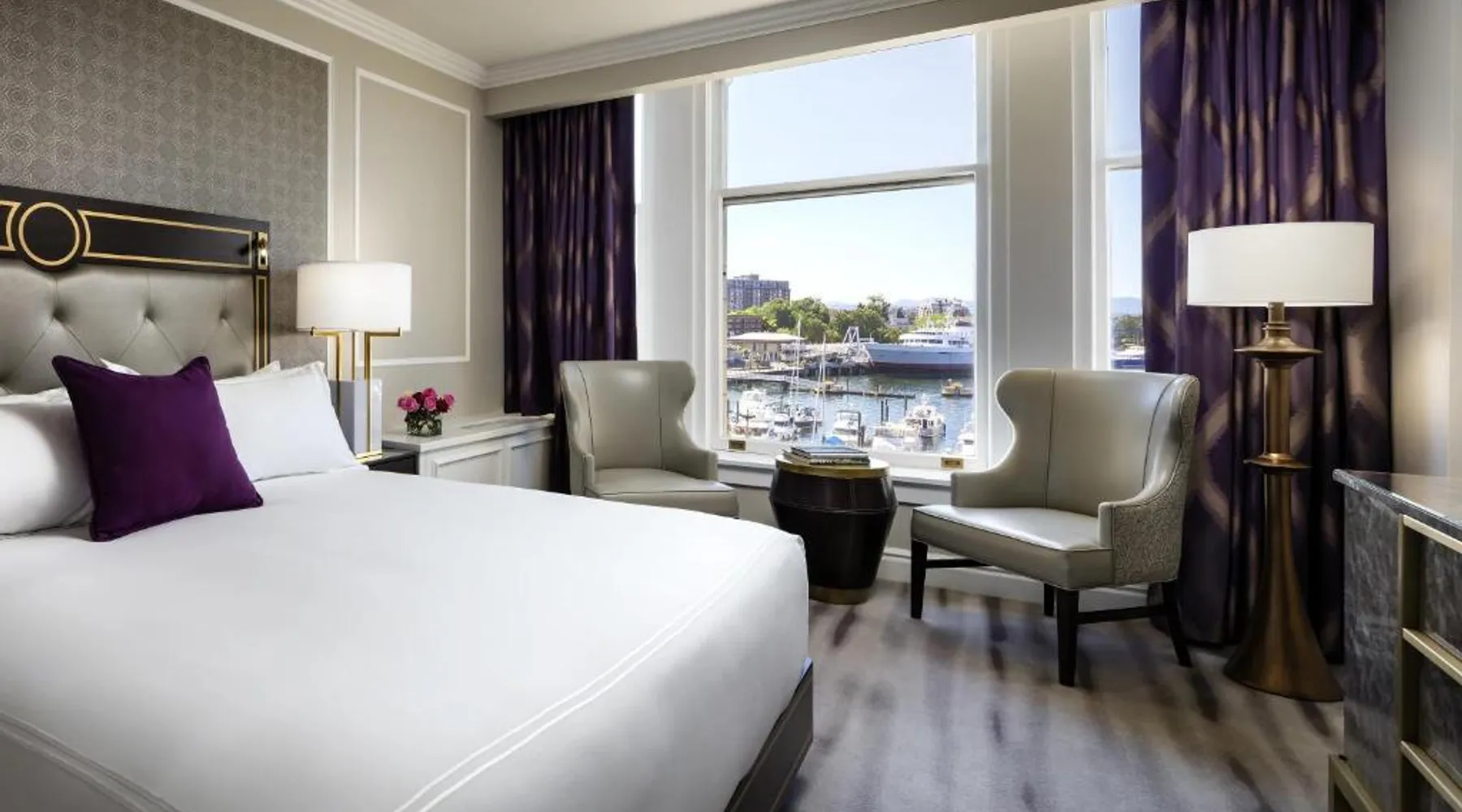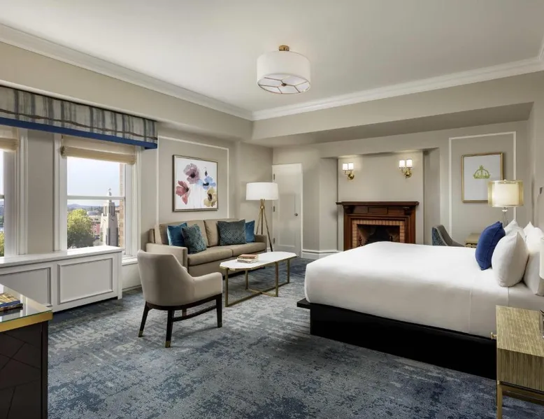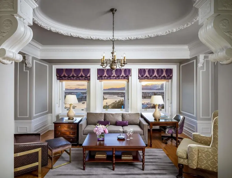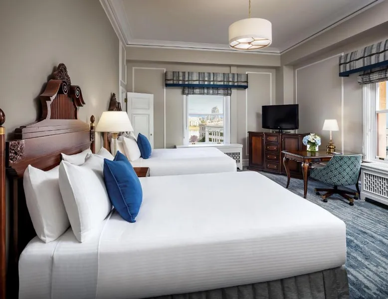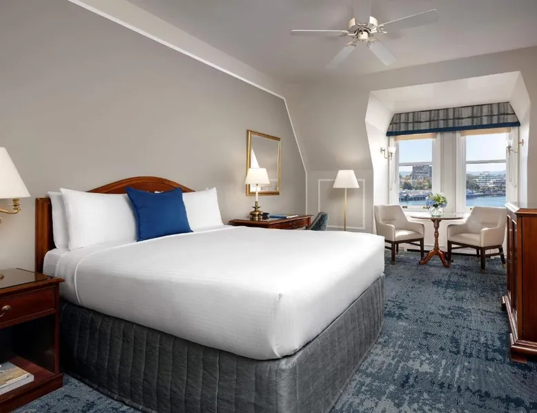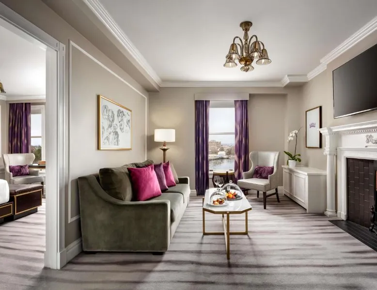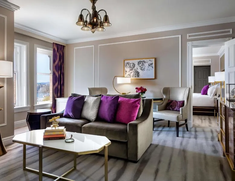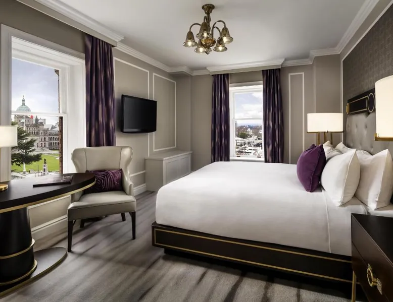Overlooking Victoria’s beautiful Inner Harbor, this historic hotel features extensive spa treatments and a selection of on-site restaurants. The Royal British Columbia Museum is 5 minutes' walk away. The Fairmont Empress Hotel’s elegantly decorated rooms offer a plush seating area and windows that open out. Each is equipped with cable TV and an in-room coffee maker. The Empress holds a traditional afternoon tea in a special lobby with views of the harbor. Guests can admire the Victorian architecture and stained glass ceiling of the lobby or swim in the indoor pool. Willow Stream Spa includes a sauna, hot tub and fitness center. The Empress Fairmont Hotel is a 4-minute walk from the Royal London Wax Museum. The Maritime Museum of BC is less than 0.6 mi away. Offering free toiletries and bathrobes, this quadruple room includes a private bathroom with a bath or a shower, a hairdryer and slippers. The air-conditioned quadruple room offers a flat-screen TV with cable channels, executive lounge access, a coffee machine, a seating area as well as city views. The unit has 3 beds.