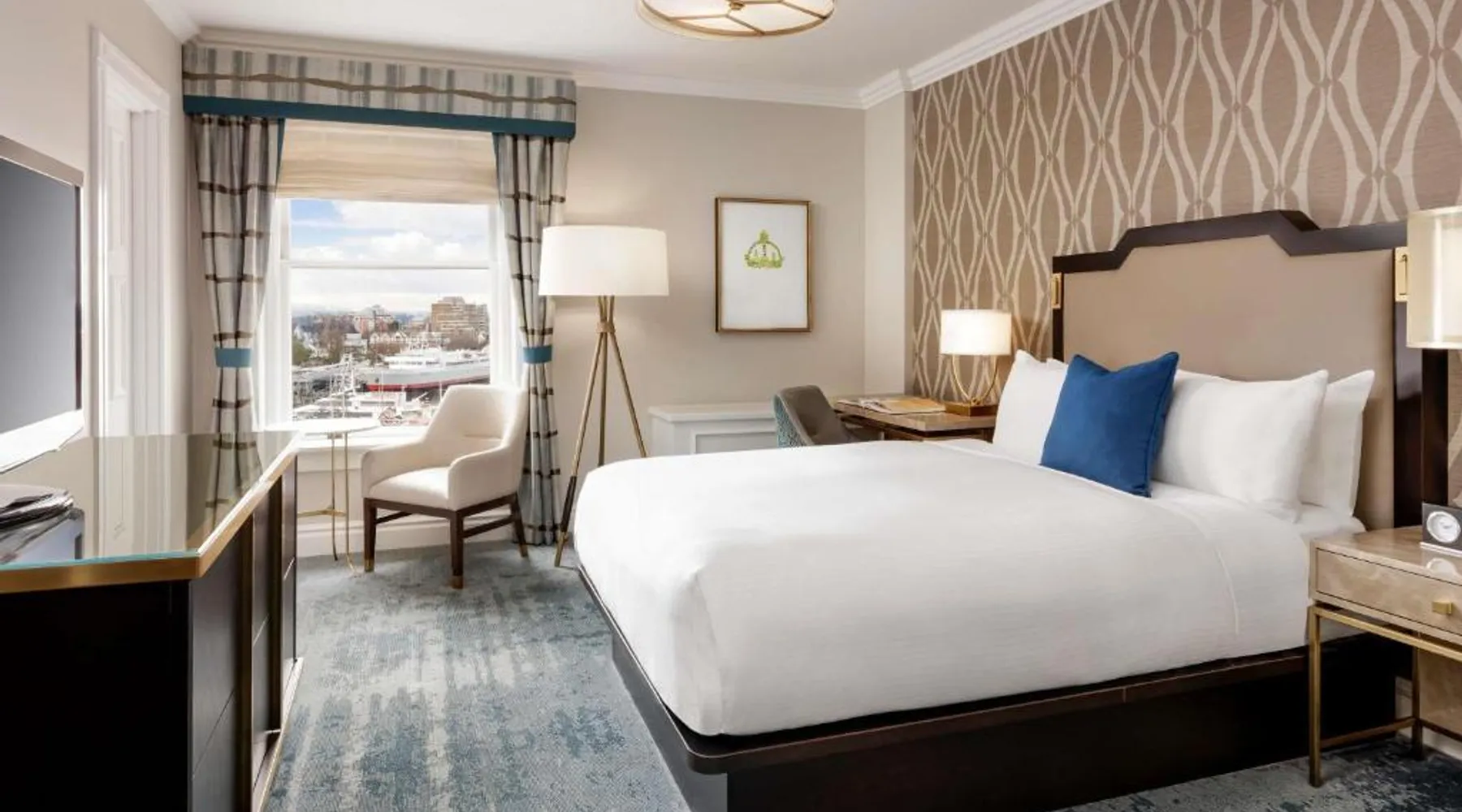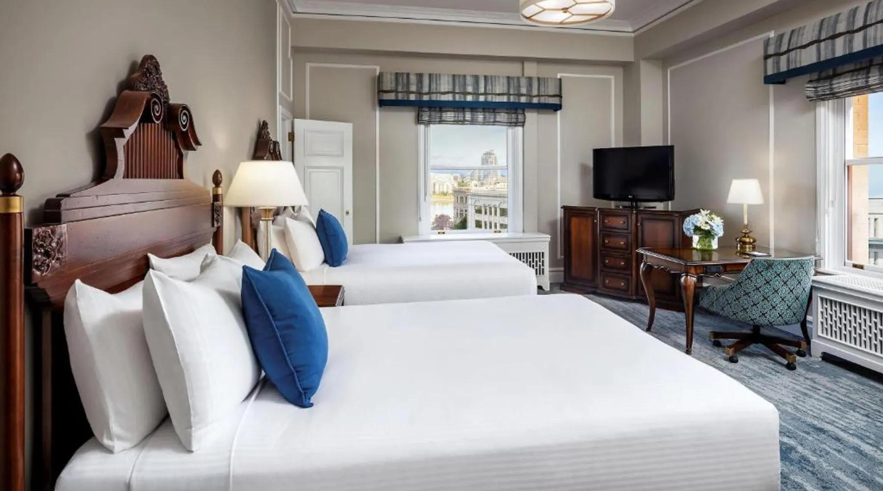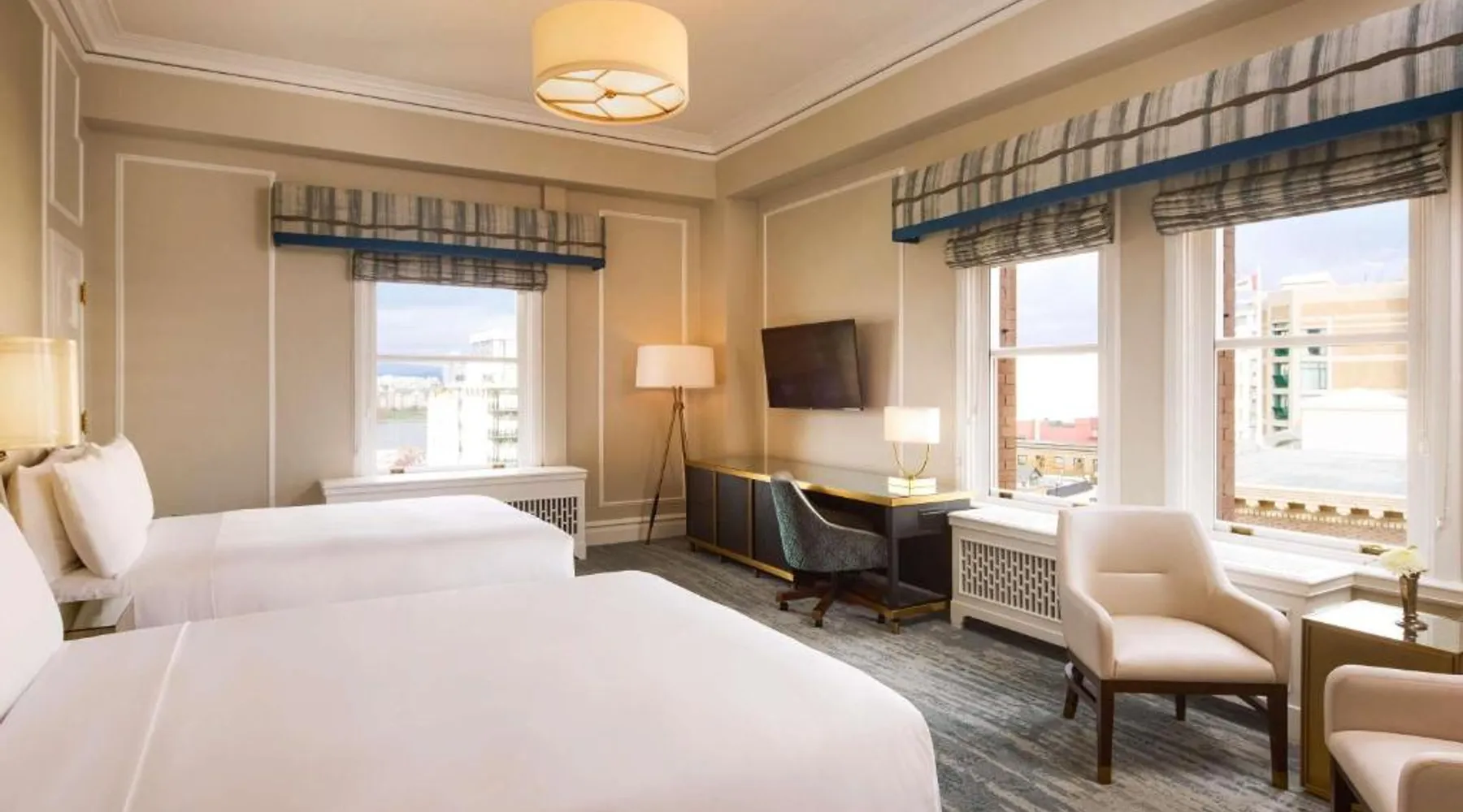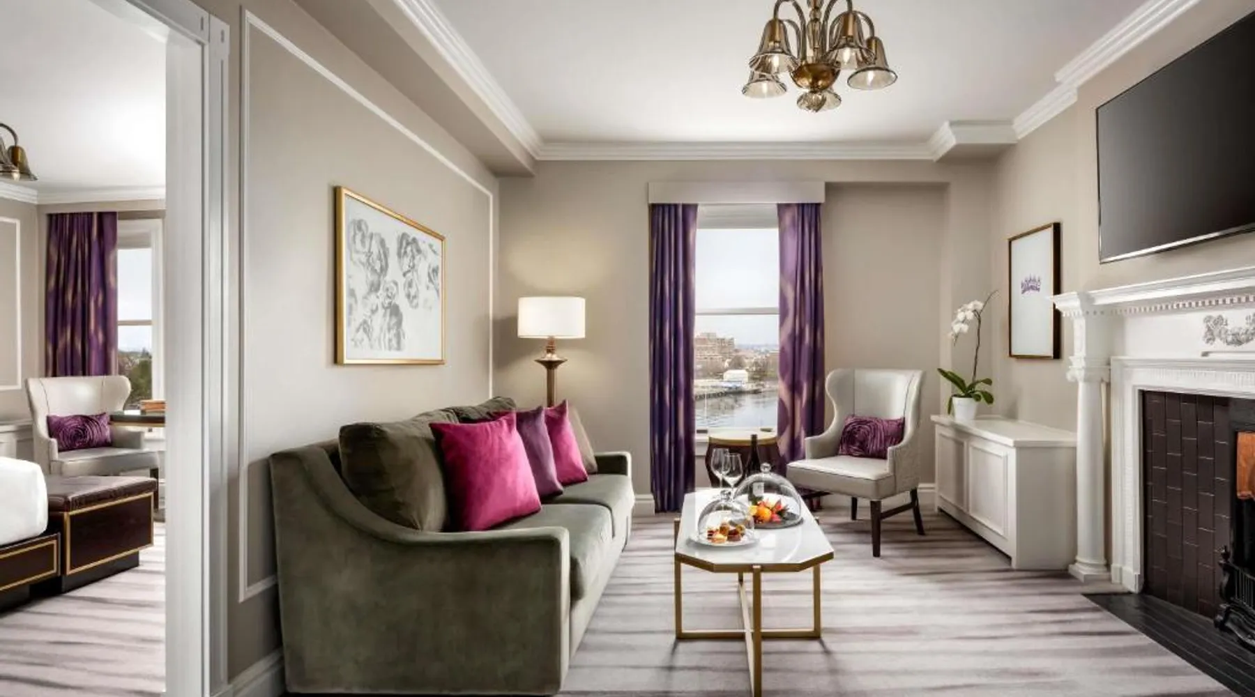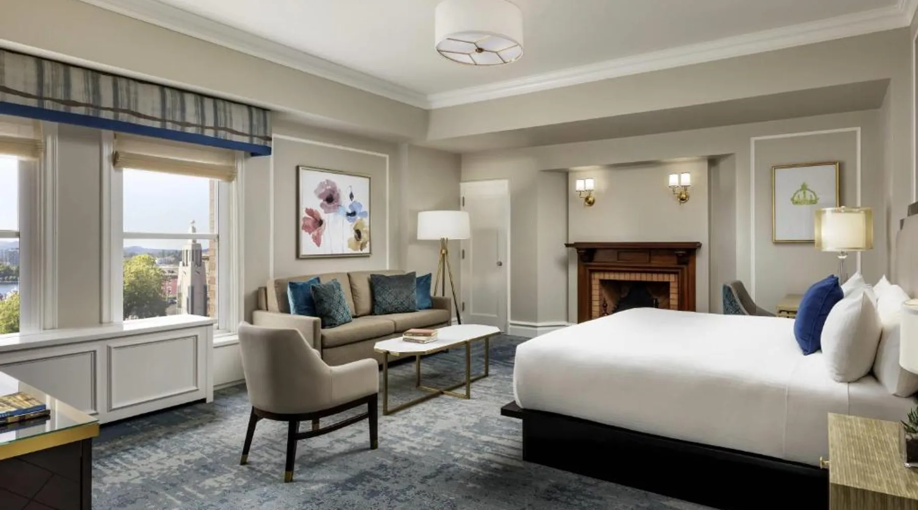 Overlooking Victoria’s beautiful Inner Harbor, this historic hotel features extensive spa treatments and a selection of on-site restaurants. The Royal British Columbia Museum is 5 minutes' walk away. The Fairmont Empress Hotel’s elegantly decorated rooms offer a plush seating area and windows that open out. Each is equipped with cable TV and an in-room coffee maker. The Empress holds a traditional afternoon tea in a special lobby with views of the harbor. Guests can admire the Victorian architecture and stained glass ceiling of the lobby or swim in the indoor pool. Willow Stream Spa includes a sauna, hot tub and fitness center. The Empress Fairmont Hotel is a 4-minute walk from the Royal London Wax Museum. The Maritime Museum of BC is less than 0.6 mi away. Offering free toiletries and bathrobes, this quadruple room includes a private bathroom with a bath or a shower, a hairdryer and slippers. The air-conditioned quadruple room offers a flat-screen TV with cable channels, executive lounge access, a coffee machine, a seating area as well as city views. The unit has 3 beds.