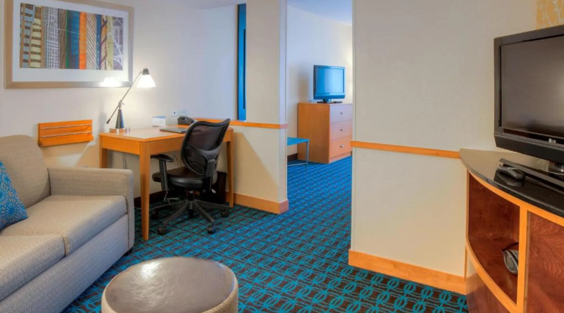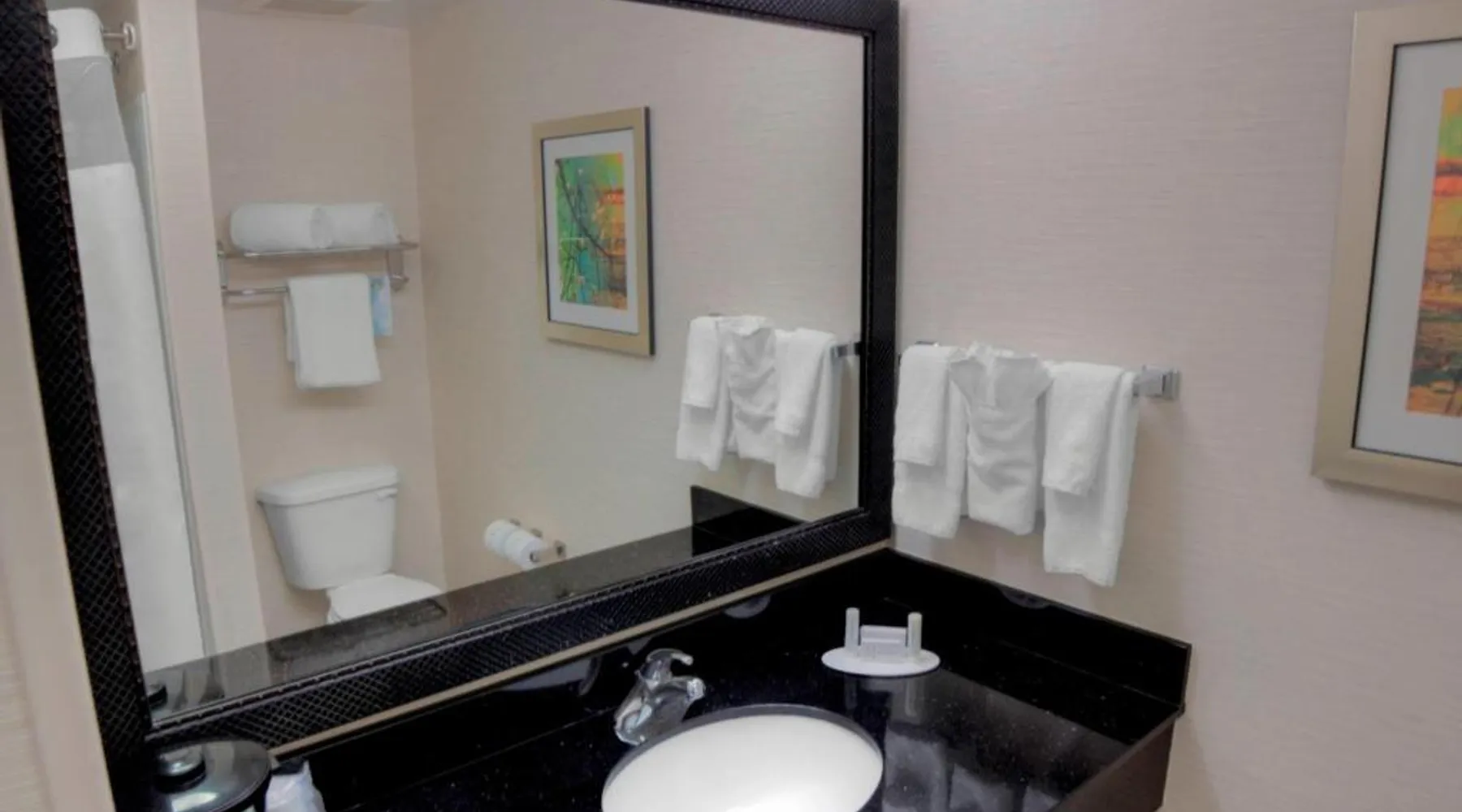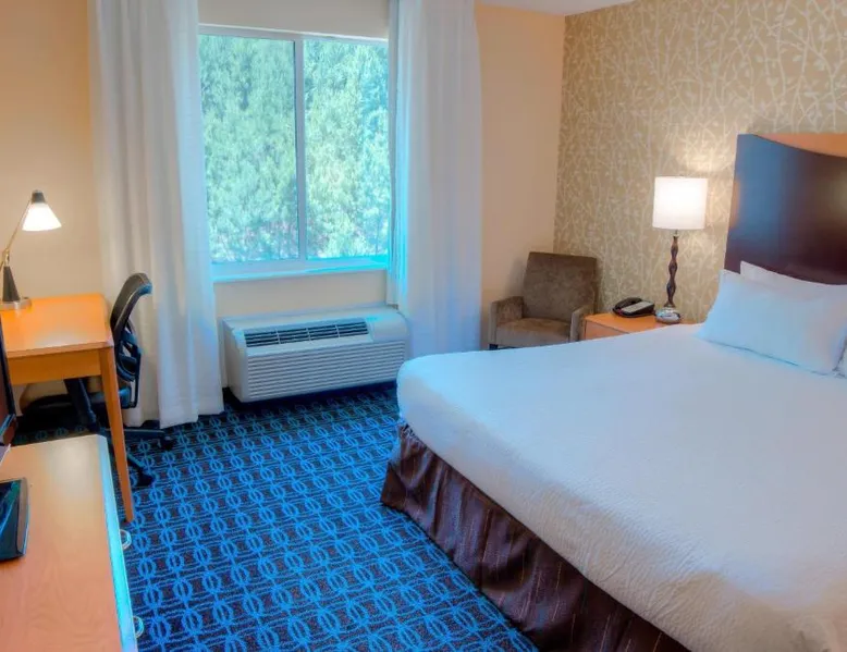 Comfortable Accommodations: Fairfield Inn & Suites by Marriott Mobile Daphne/Eastern Shore in Spanish Fort offers family rooms with air-conditioning, private bathrooms, and free WiFi. Each room includes a work desk, TV, and complimentary toiletries. Exceptional Facilities: Guests can enjoy a fitness center, indoor swimming pool, and free use of bicycles. Additional amenities include a hot tub, lounge, and outdoor seating area. The property also features a minimarket, business area, and electric vehicle charging station. Convenient Location: Located 22 mi from Mobile Regional Airport, the hotel is near attractions such as USS Alabama Battleship Memorial Park (8.1 mi) and Mobile Civic Center (9.9 mi). Free on-site parking is available. Guest Services: The hotel provides a 24-hour front desk, express check-in and check-out, and a continental breakfast. Guests appreciate the attentive staff and excellent service support. The spacious double room offers air conditioning, a coffee machine, as well as a private bathroom boasting a bath or a shower and a hairdryer. The double room features a wardrobe, a carpeted floor, heating and a flat-screen TV with cable channels. The unit has 1 bed.