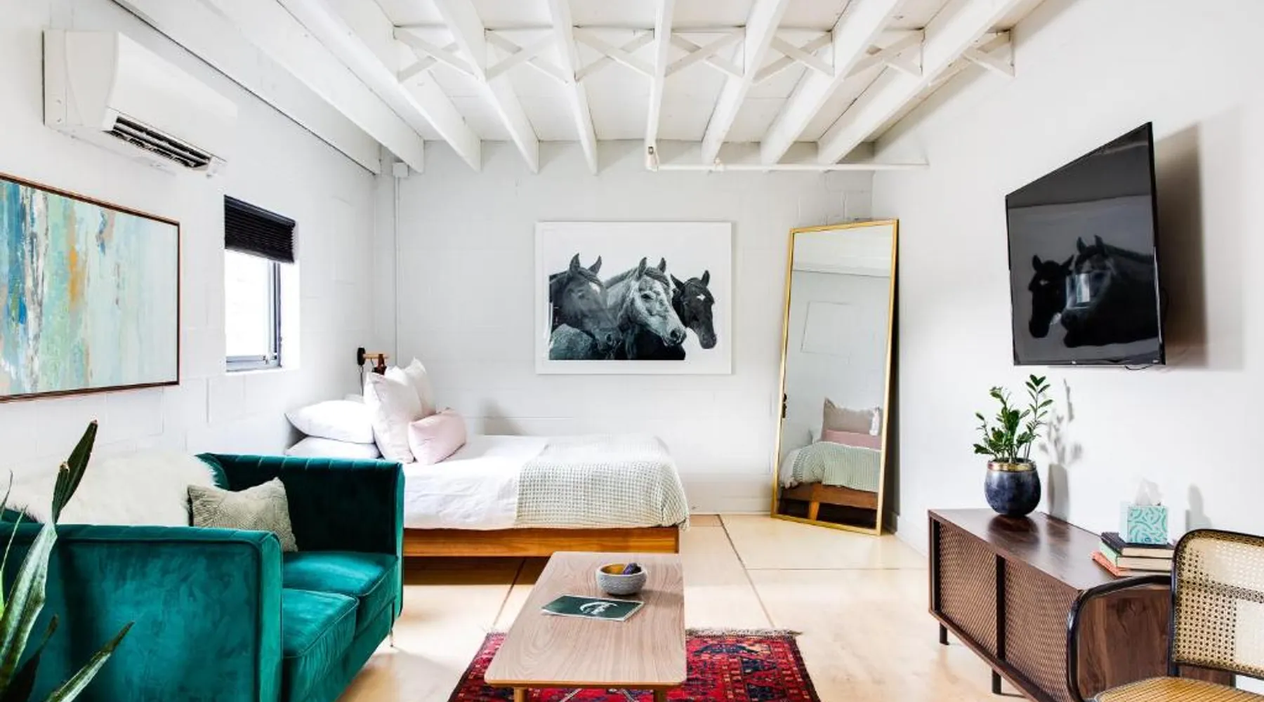 Prime Location: Stellar Suites in Louisville offers a central position with Louisville Slugger Field less than 0.6 mi away and the Kentucky International Convention Center 1.2 mi nearby. The Louisville International Airport is 6.2 mi from the hotel. Comfortable Accommodations: Rooms feature air-conditioning, kitchenettes, private bathrooms, and modern amenities such as streaming services and free WiFi. Family rooms and ground-floor units provide additional comfort. Convenient Facilities: Guests can enjoy free bicycles, a lounge, full-day security, and luggage storage. Additional amenities include a washing machine, mini-bar, and work desk. Nearby Attractions: Explore the Louisville Slugger Museum Factory, Muhammad Ali Center, and Speed Art Museum within 3.7 mi. The hotel is highly rated for its convenient location and nearby dining options. This suite consists of 1 living room, 1 separate bedroom and 1 bathroom with a walk-in shower and free toiletries. The well-equipped kitchenette features a refrigerator, kitchenware, an oven and a microwave. The air-conditioned suite provides a flat-screen TV with streaming services, a washing machine, a mini-bar, a tea and coffee maker as well as city views. The unit offers 1 bed.