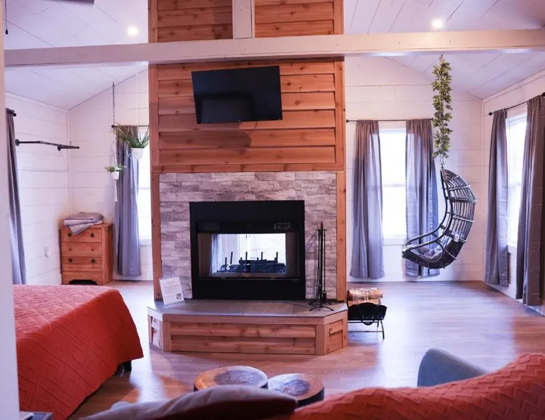 Comfortable Accommodations: Avenwood Cabins in New Straitsville offers apartment-style accommodations with free WiFi, air-conditioning, and a private bathroom. Each unit features a kitchenette, balcony, and parquet floors, ensuring a pleasant stay. Relaxing Facilities: Guests can unwind in the hot tub or enjoy the spa bath. The property provides express check-in and check-out services, along with free on-site private parking. Pets are welcome, making it ideal for travelers with animals. Convenient Location: Located 55 mi from Rickenbacker International Airport, Avenwood Cabins is 8.1 mi from Brass Ring Golf Club. The surrounding area offers various attractions, enhancing the guest experience. This holiday home's special features are the hot tub and the fireplace. Featuring a private entrance, this air-conditioned holiday home consists of 1 living room, 1 separate bedroom and 1 bathroom with a bath or a shower. The well-fitted kitchen has a stovetop, a refrigerator, kitchenware and an oven. This holiday home features a tea and coffee maker, a seating area, a flat-screen TV with streaming services and a patio. The unit offers 1 bed.