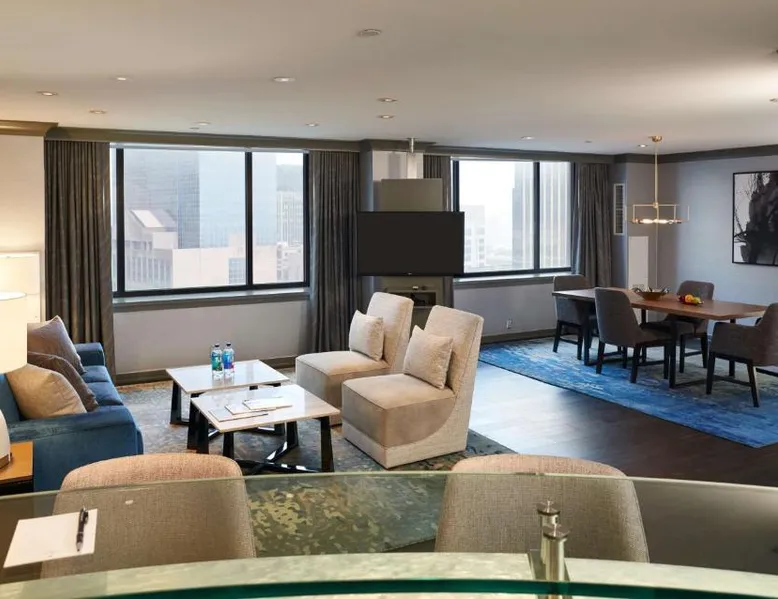 Located in the center of downtown Minneapolis, within steps of Nicollet Mall and Target Center, this hotel offers elegant accommodations with free WiFi access and and chic on-site dining options. Each guestroom at the The Lofton Hotel is equipped with a wall mounted flat-screen TV and a fully stocked mini-bar. Guests can stay connected with beside electrical outlets and reading lamps. Bathrooms have limestone counters and stylish glass basins. The Lofton Hotel also has 12,000 square feet of functional space with modern technology for corporate or special events. Small plates and unique drink options like a build your own old fashioned are served at the Apothecary Bar & Lounge. The Lofton Hotel places guests moments from many popular points of interest. The Target Field sports venue is 10 minutes' walk from the hotel. Guests are only 10 minutes' drive from St. Anthony Falls and Boom Island Park. Providing free toiletries and bathrobes, this quadruple room includes a private bathroom with a hairdryer. The air-conditioned quadruple room provides a TV with satellite channels, soundproof walls, a tea and coffee maker and a safe deposit box. The unit offers 2 beds.