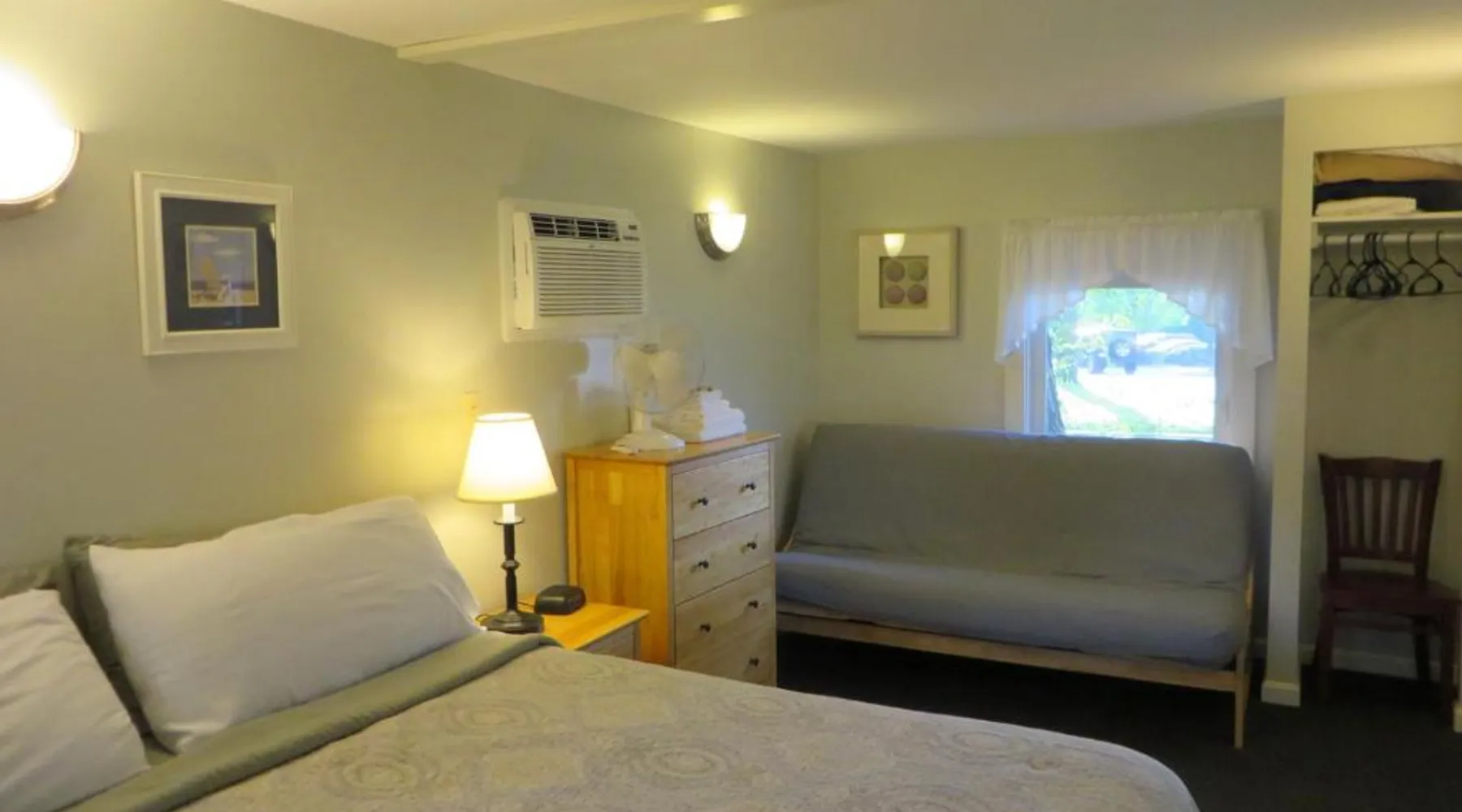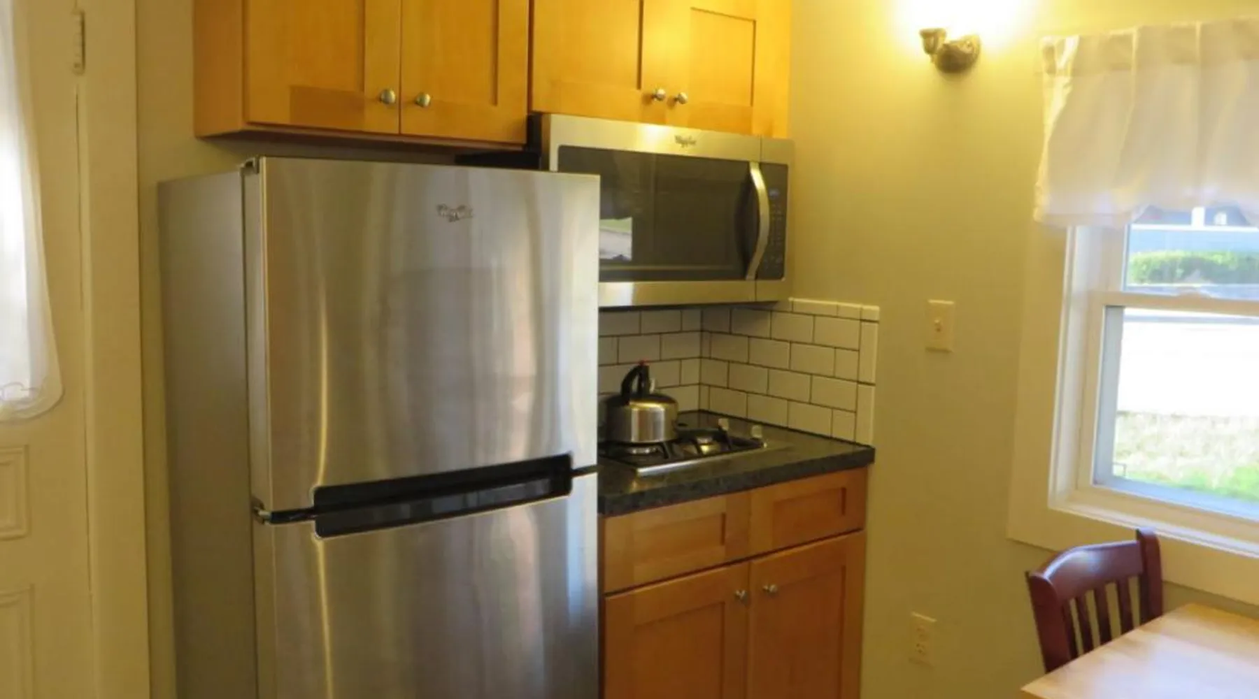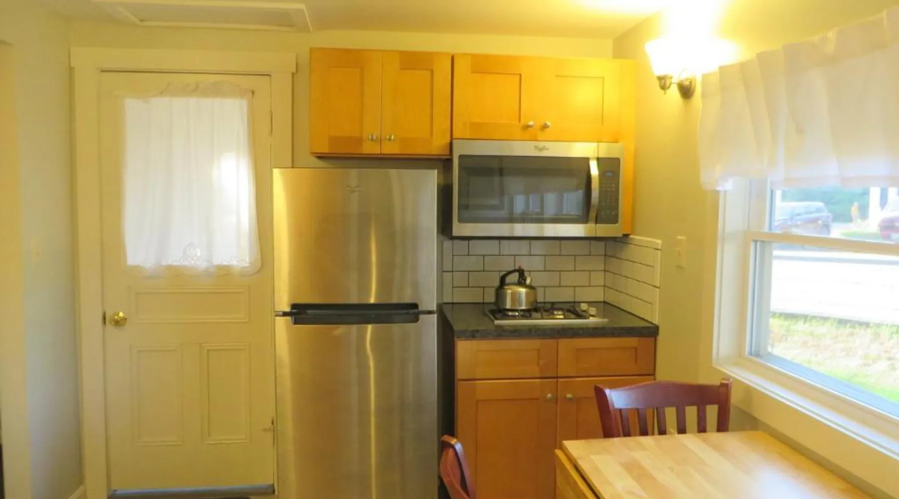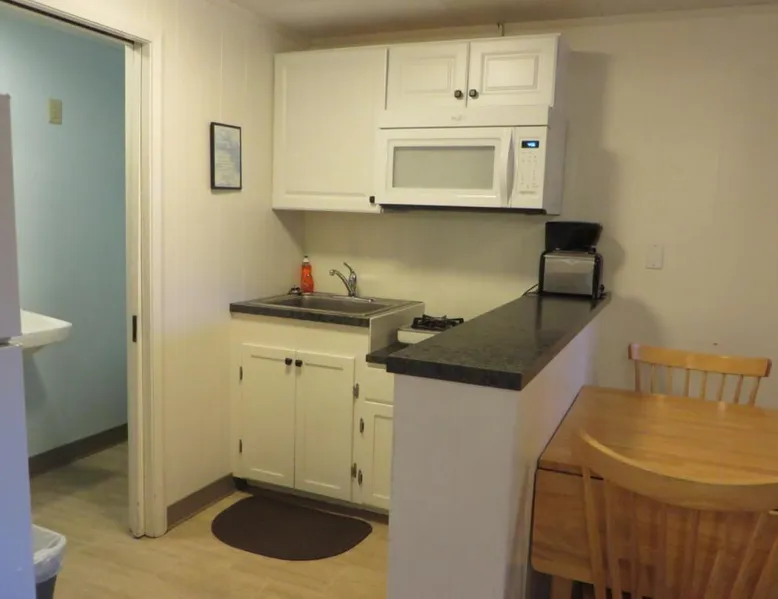 Comfortable Accommodations: Elmwood Motor Court in Old Orchard Beach offers family rooms with air-conditioning, private bathrooms, and kitchenettes. Each room includes a dining table, sofa bed, and free WiFi. Leisure Facilities: Guests can enjoy a seasonal outdoor swimming pool, lush garden, and outdoor fireplace. Additional amenities include a games room, children's playground, and barbecue facilities. Convenient Location: Located 14 mi from Portland International Jetport, the hotel is near attractions such as Old Orchard Beach (1.9 mi), Pirate's Cove (1.2 mi), and Aquaboggan Water Park (4.3 mi). Free on-site private parking is available. Guest Satisfaction: Highly rated for family-friendliness, room cleanliness, and child-friendliness, Elmwood Motor Court ensures a pleasant stay for all visitors. Featuring a private entrance, this air-conditioned suite consists of a kitchenette, 1 bedroom and 1 bathroom with a shower and a hairdryer. In the well-equipped kitchenette, guests will find a stovetop, a refrigerator, kitchenware and a microwave. Boasting an outdoor dining area, this suite also provides a coffee machine, heating and a flat-screen TV with cable channels. The unit offers 1 bed.
